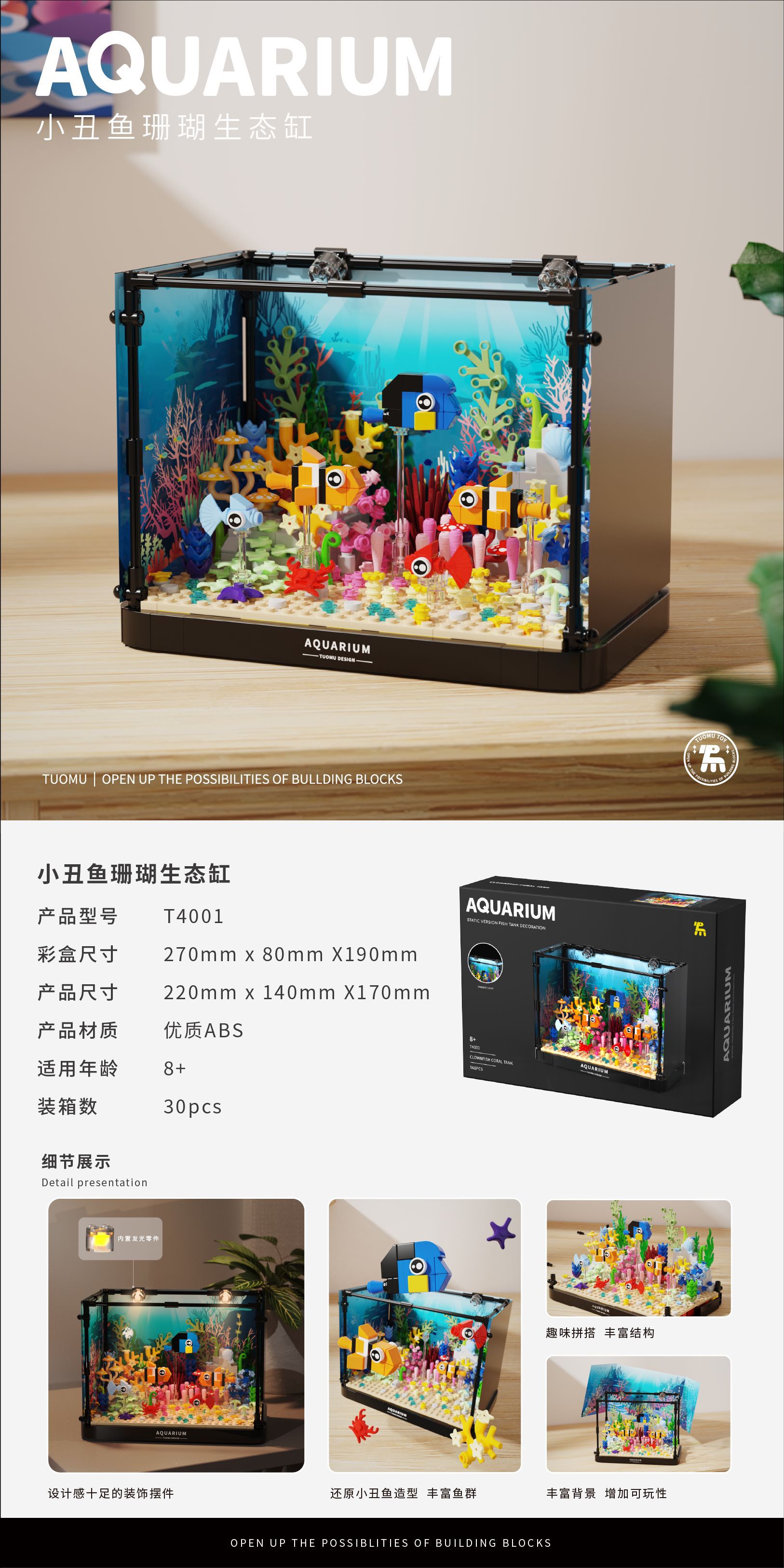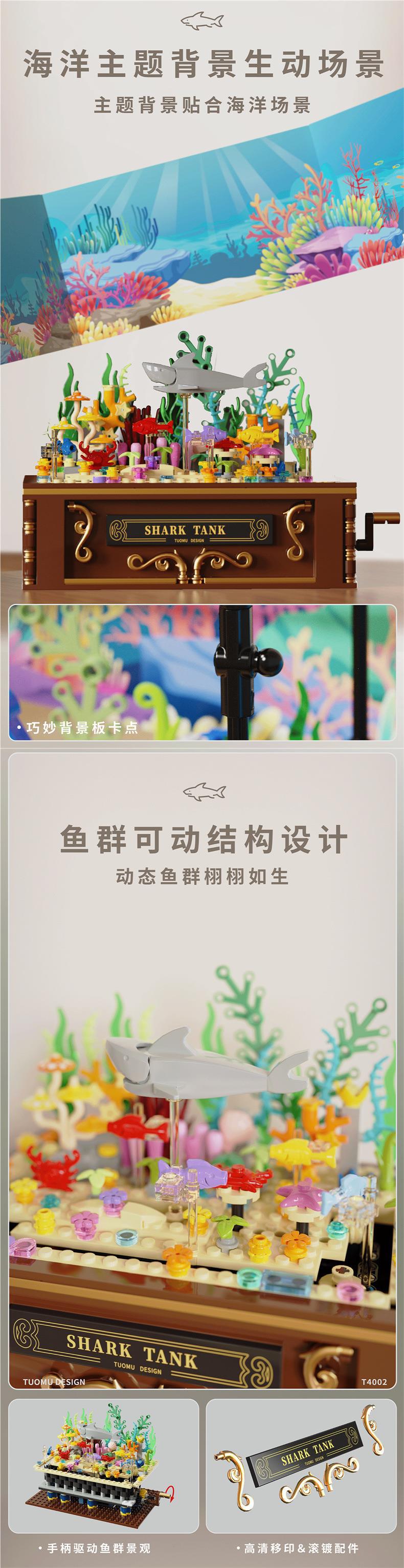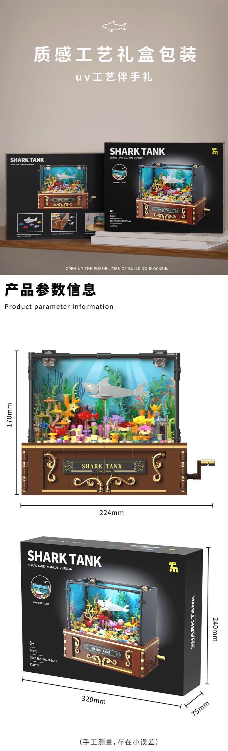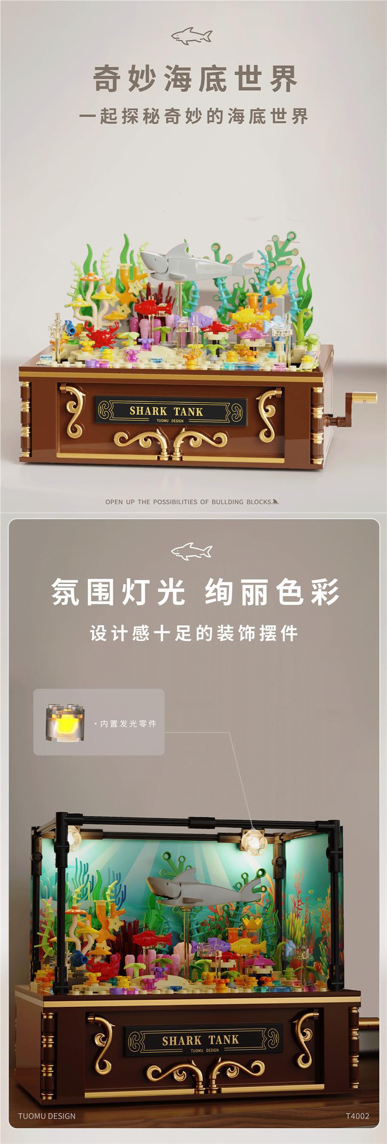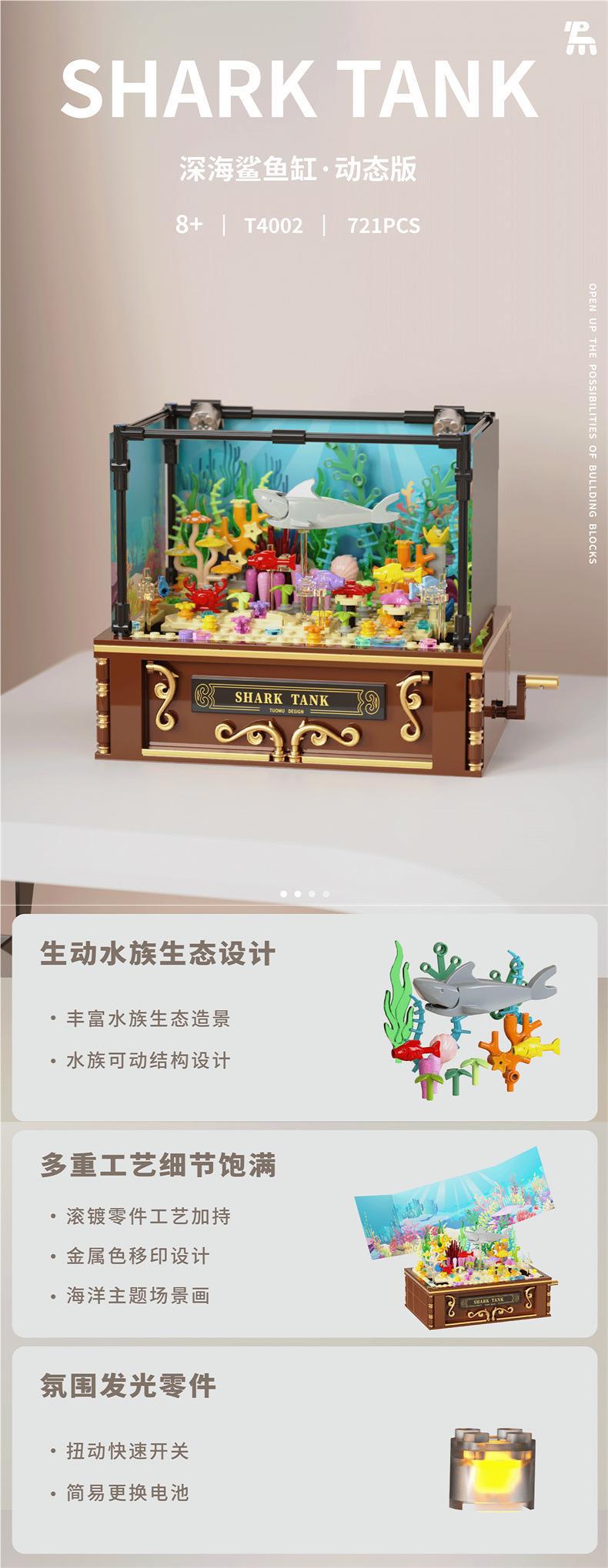 Tuomu T4002 심해 상어 탱크 동적 버전 모조 생태 해양 데스크탑 크리 에이 티브 장식품 어린이 조립 빌딩 블록스토어 가기