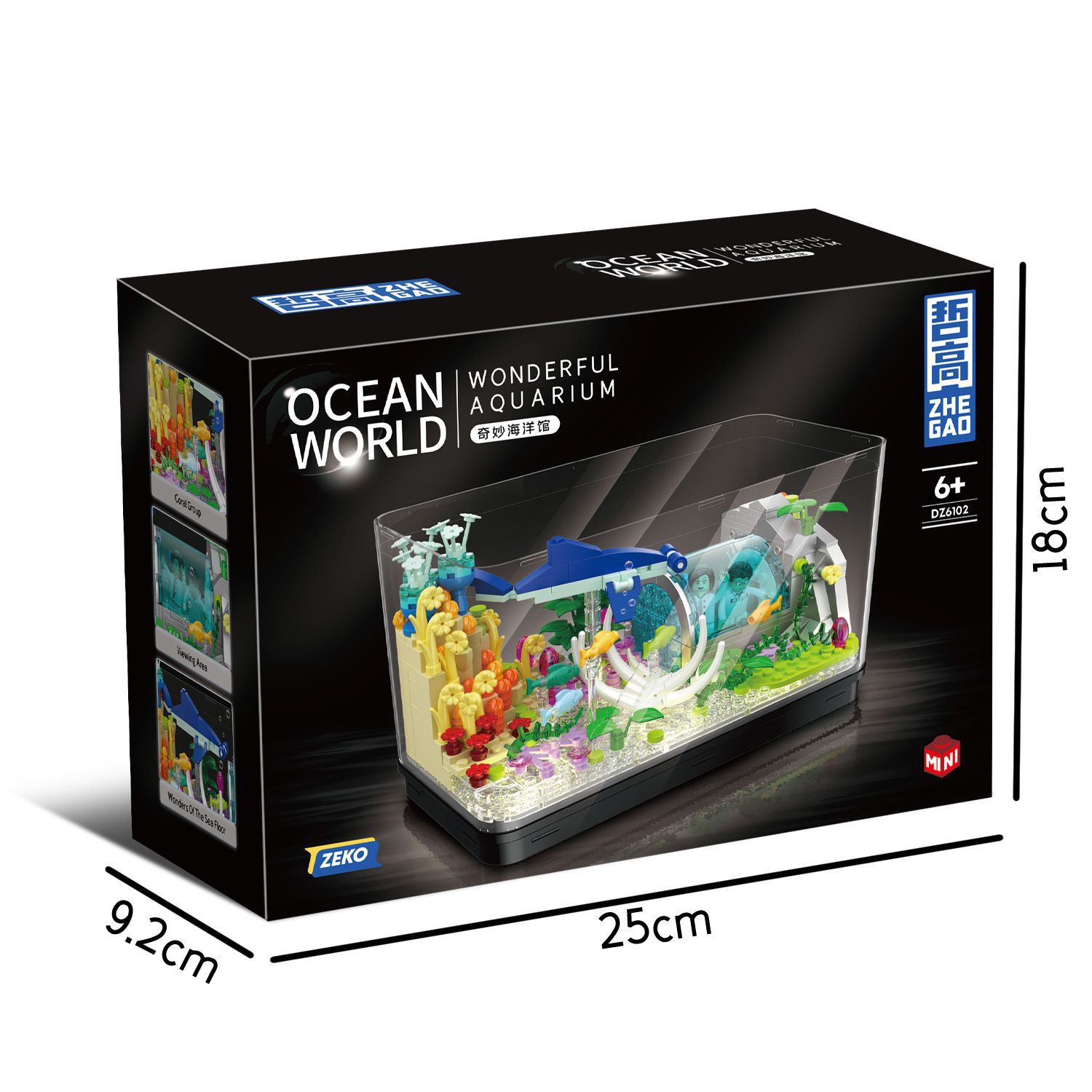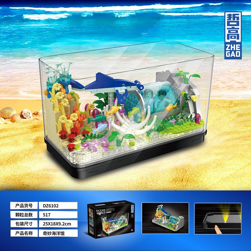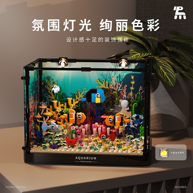 Tuomu T4002 심해 상어 탱크 동적 버전 모조 생태 해양 데스크탑 크리 에이 티브 장식품 어린이 조립 빌딩 블록