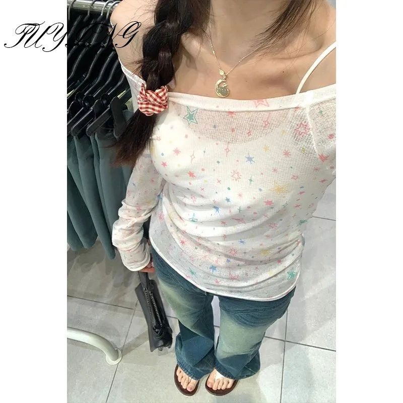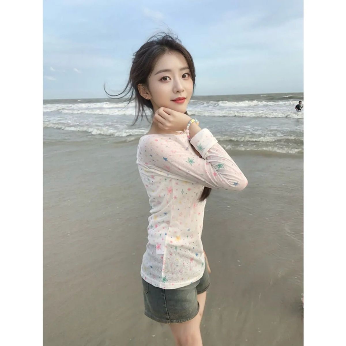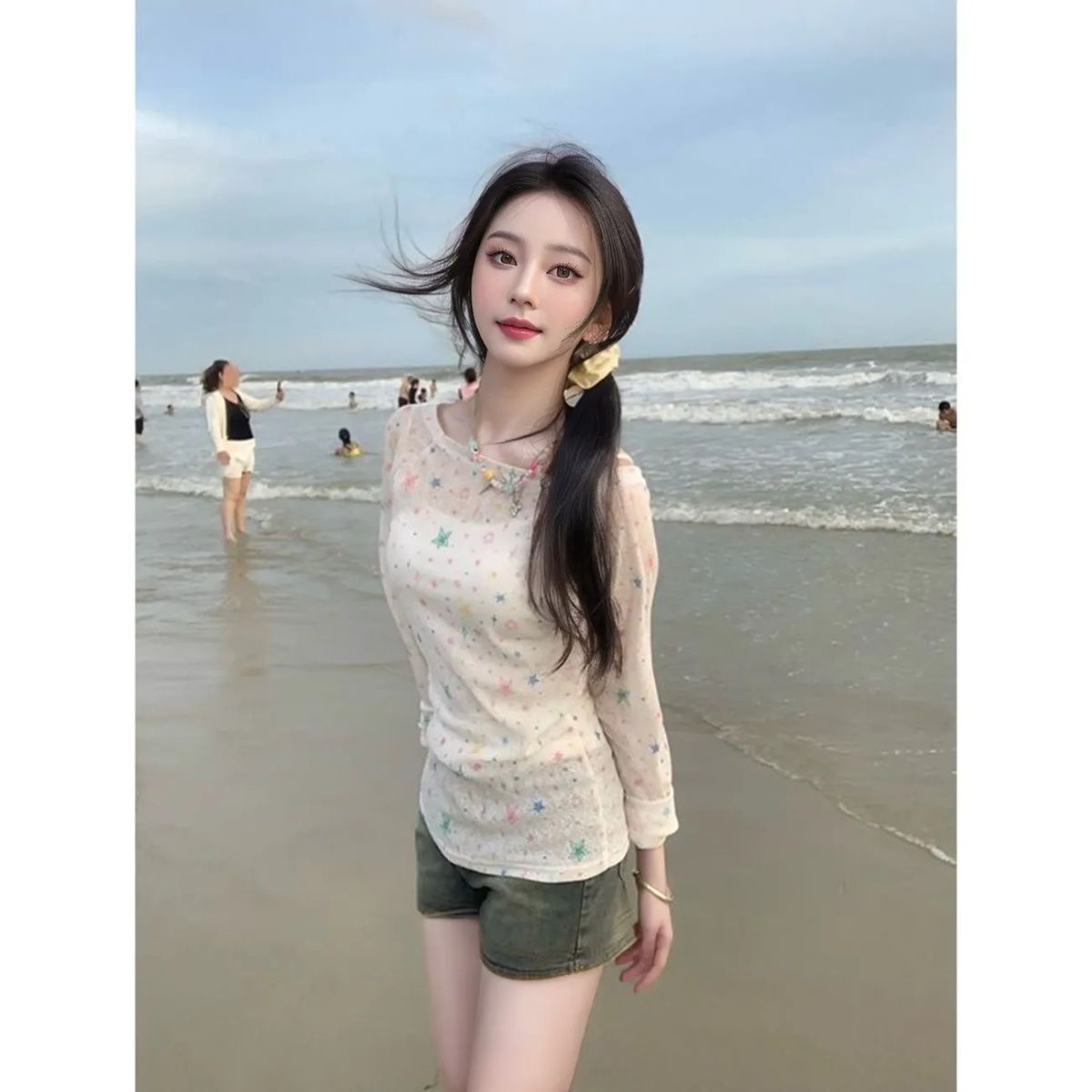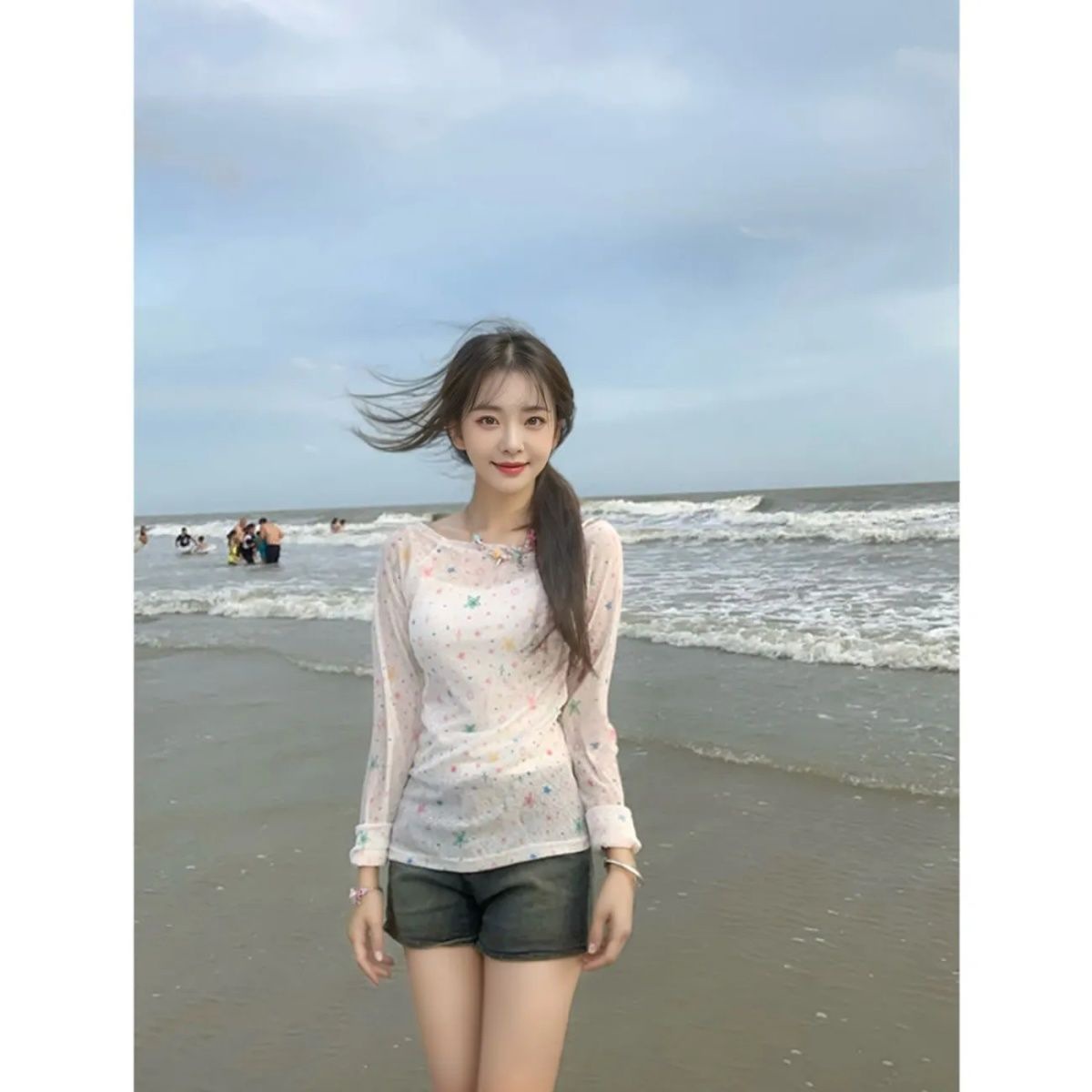 스타 자외선 차단 블라우스 여성 투피스 슈트 여름 아메리칸 핫걸 슬림 섹시 긴팔 티셔츠 Pure Desire Top
