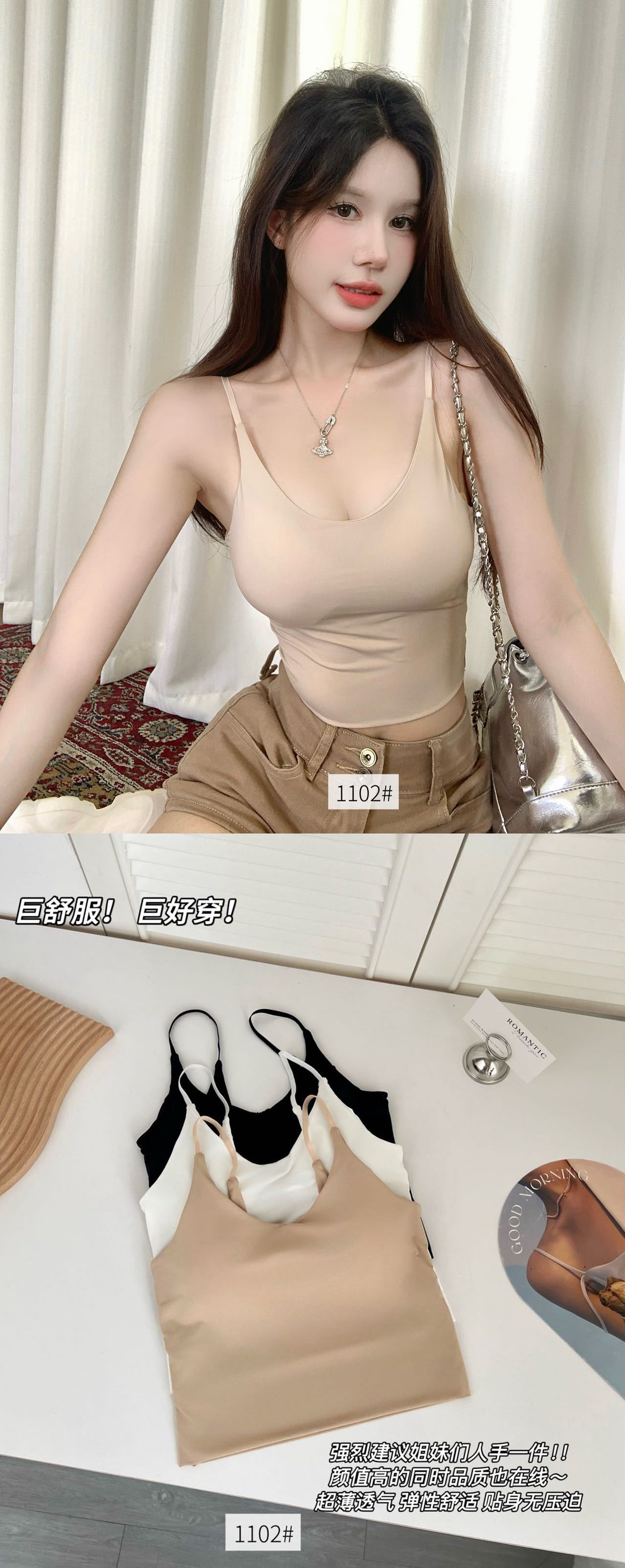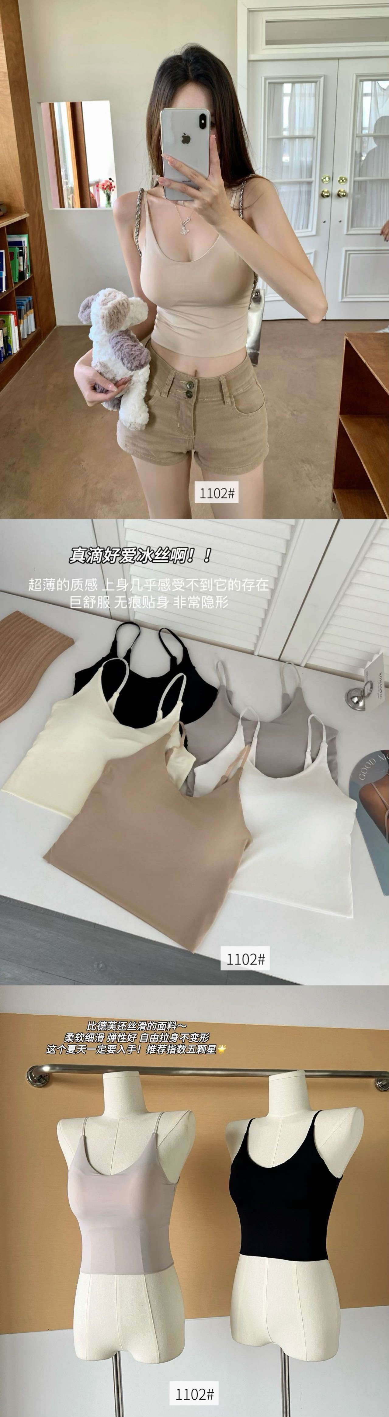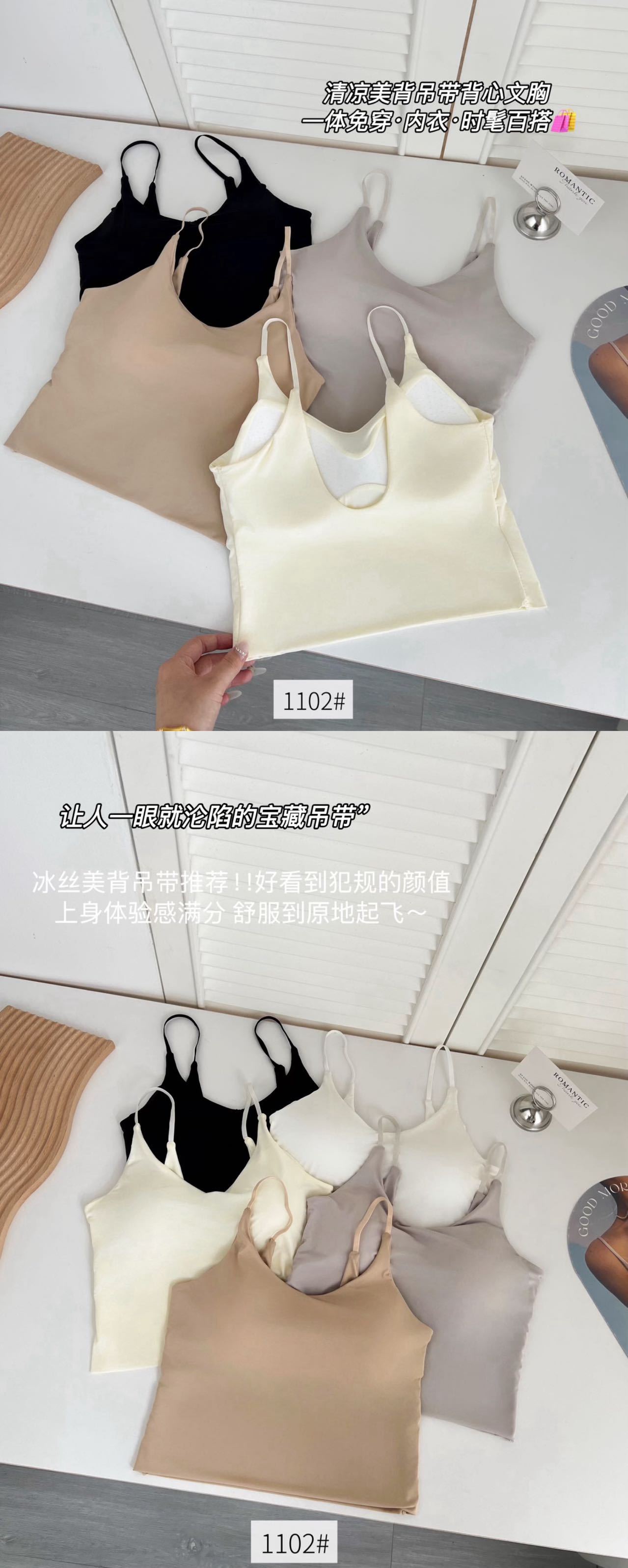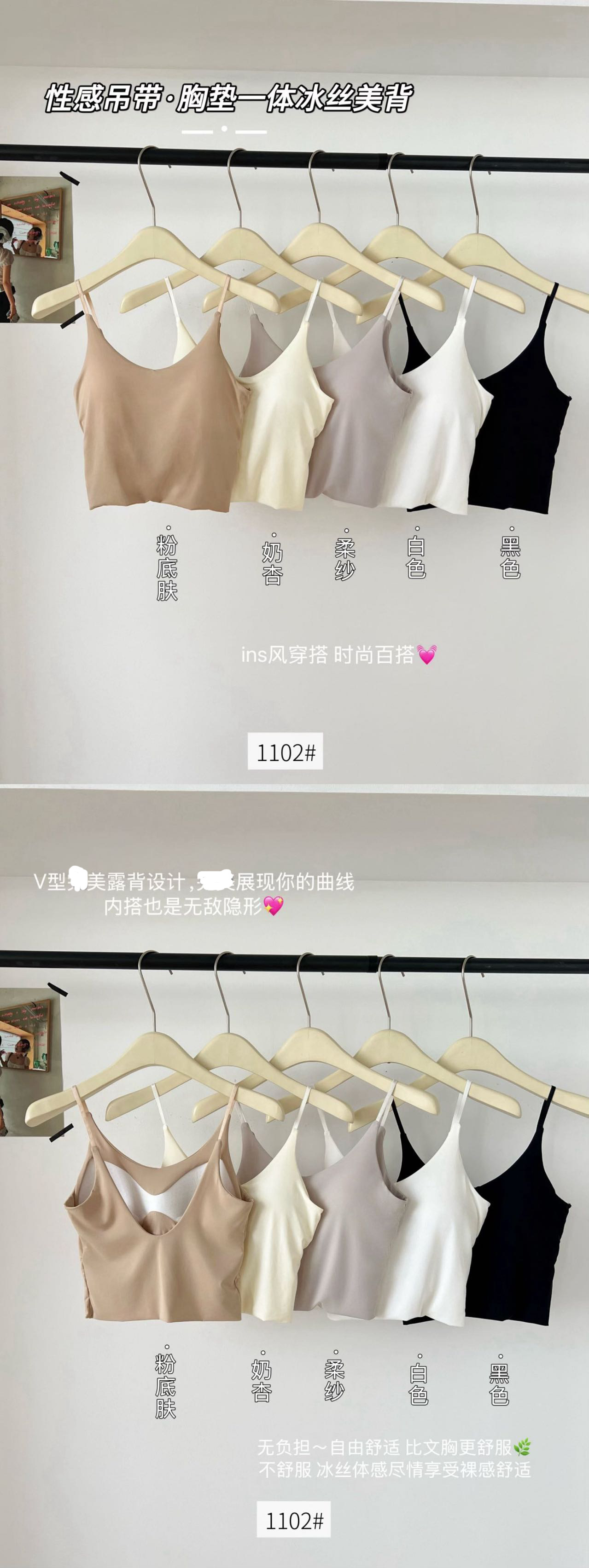 品名:一体式无痕冰丝V型美背吊带
