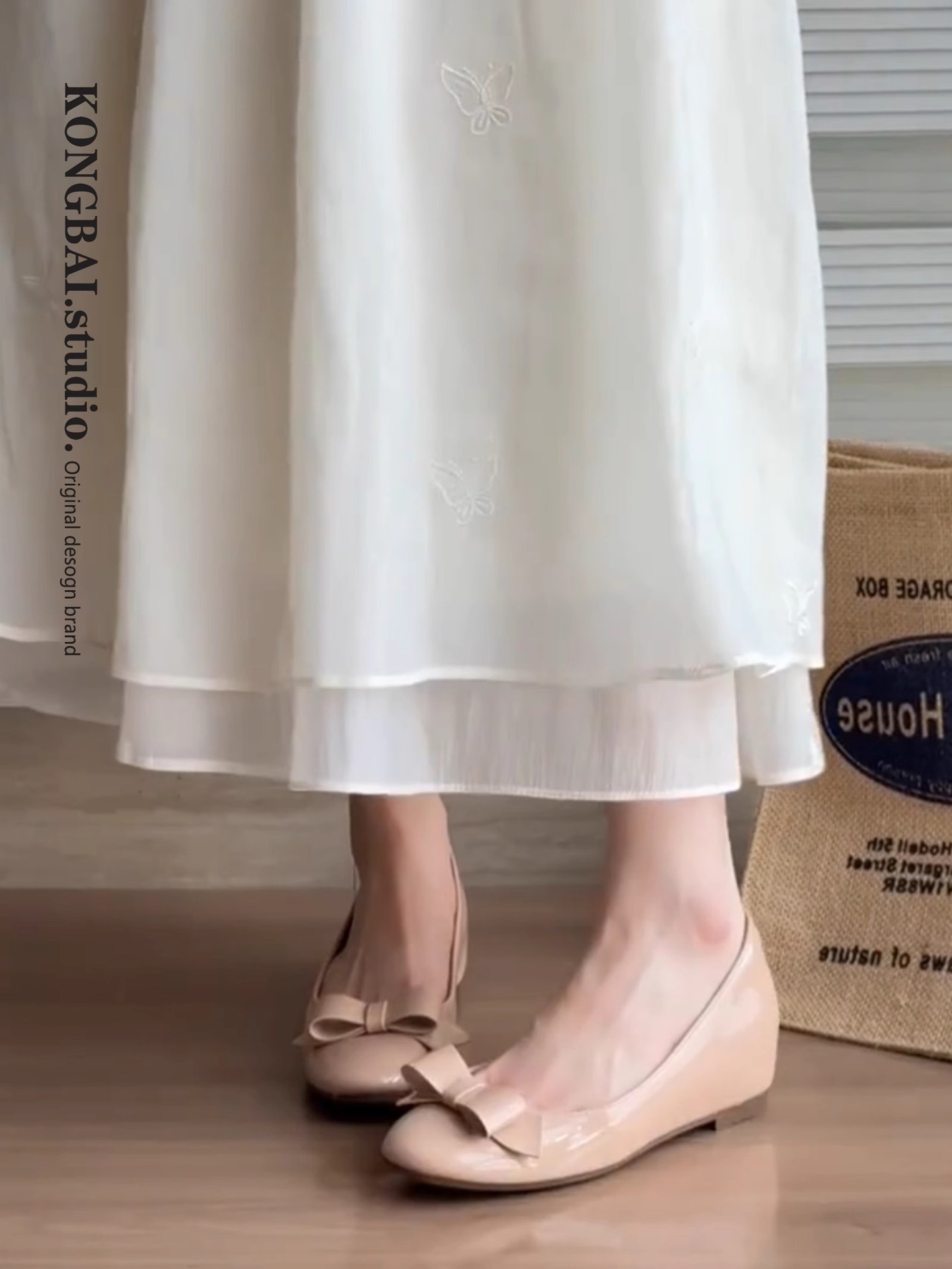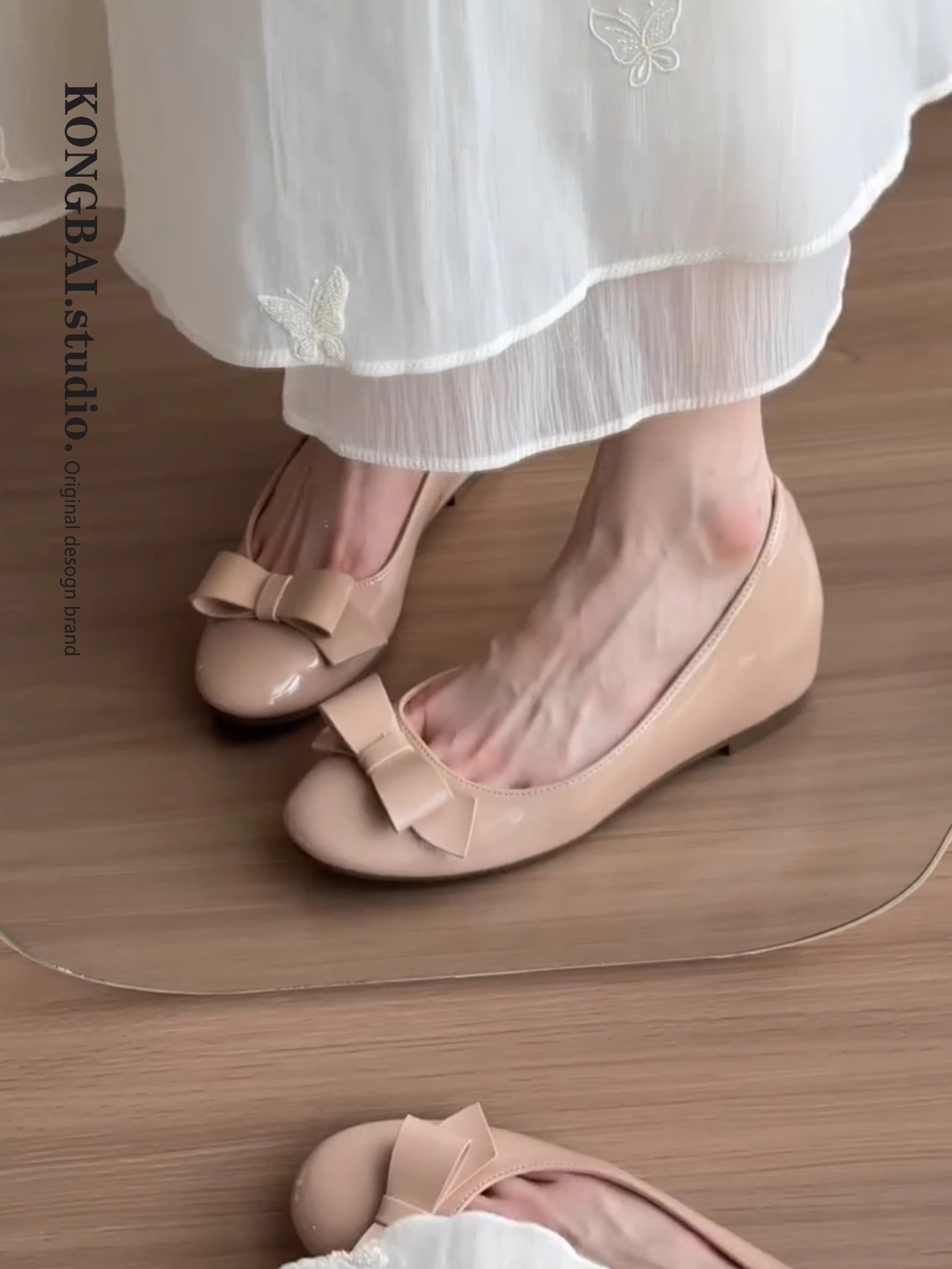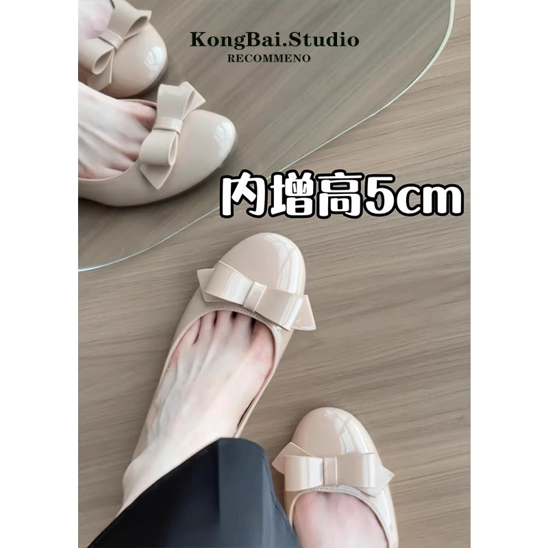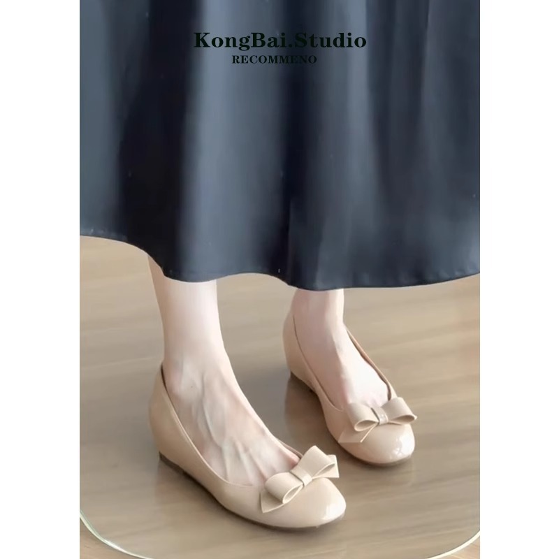 키 작은 여성을 위한 키높이 누드 컬러 싱글 슈즈, 2026년 봄 여름 신상, 리본 장식, 출퇴근용, 다용도 플랫 발레 슈즈스토어 가기