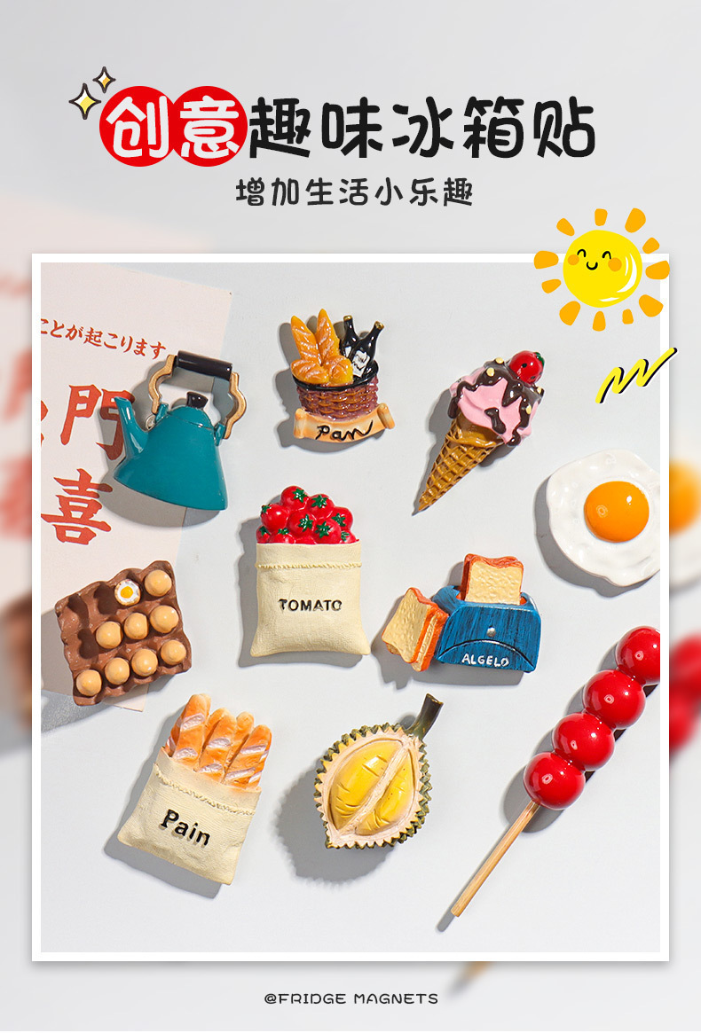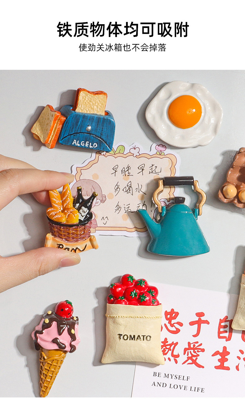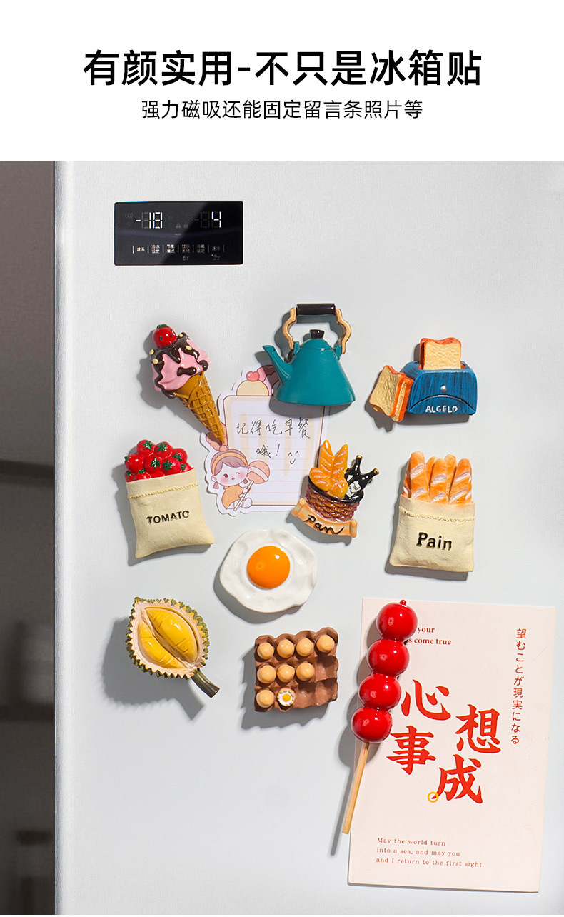 크리 에이 티브 3D 냉장고 자석 ins 고가치 자기 자석 시뮬레이션 당일과 식품 장난감 도매 북유럽 ins 장식스토어 가기