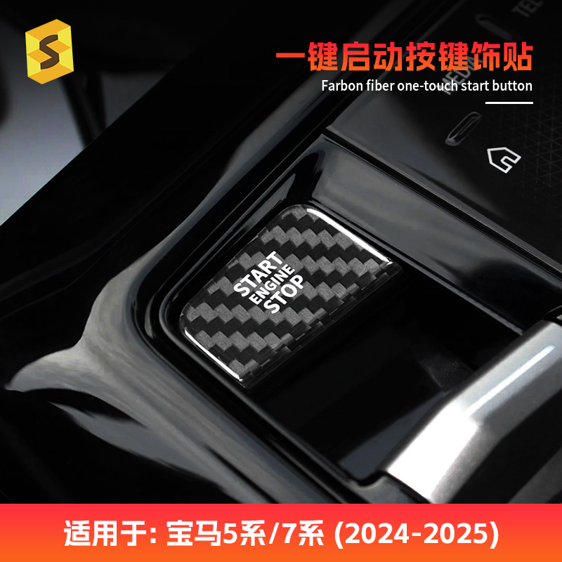 BMW 5 시리즈 7 시리즈 실제 탄소 섬유 인테리어 점화 원 클릭 시작 수정 패치 장식 스티커에 적합한 국경 간스토어 가기