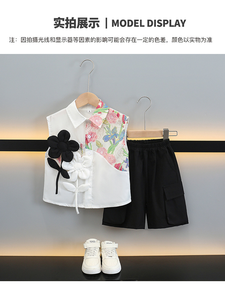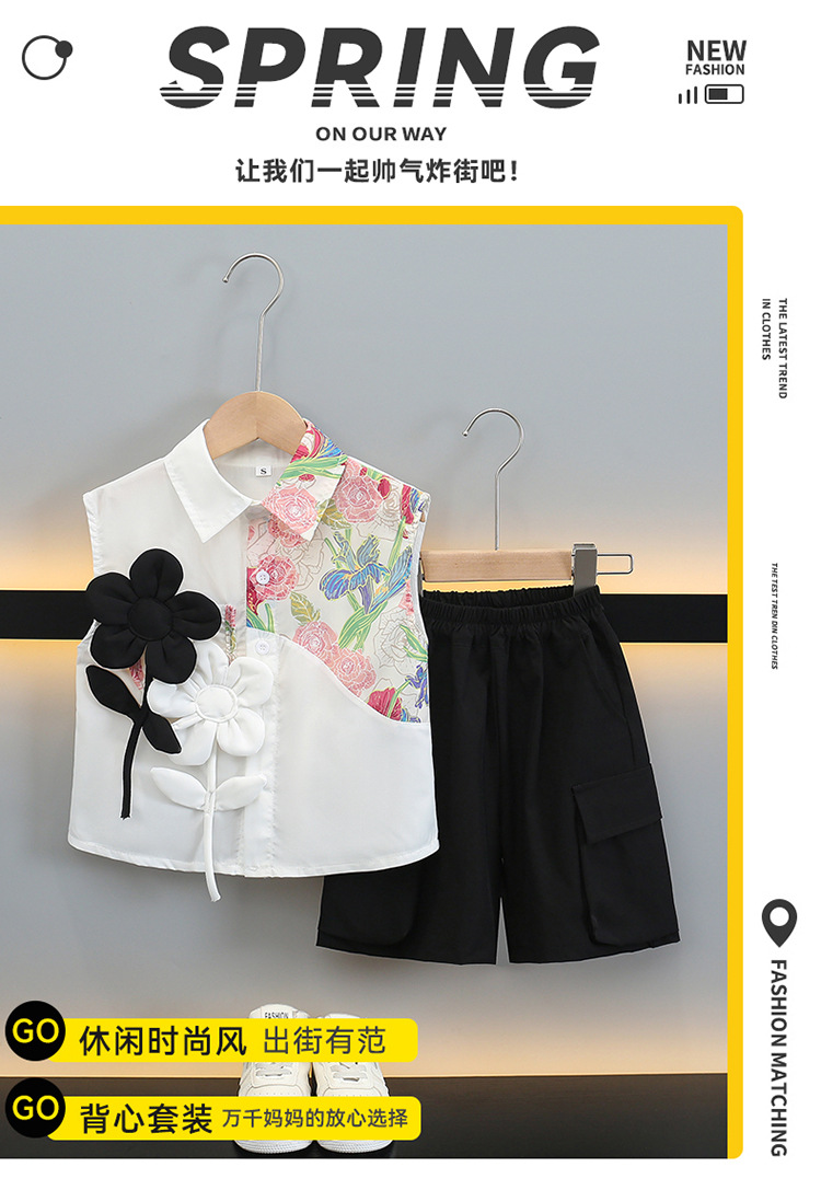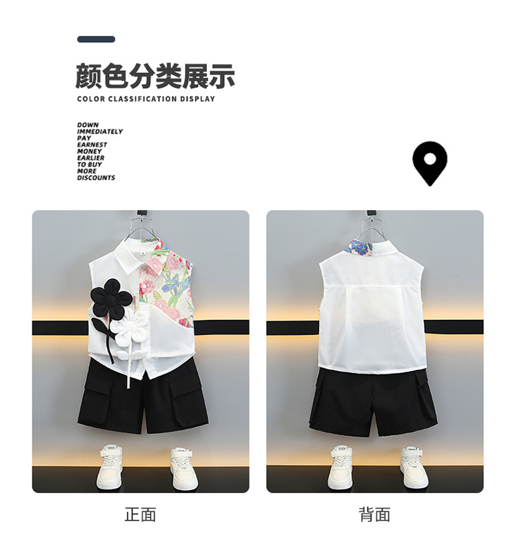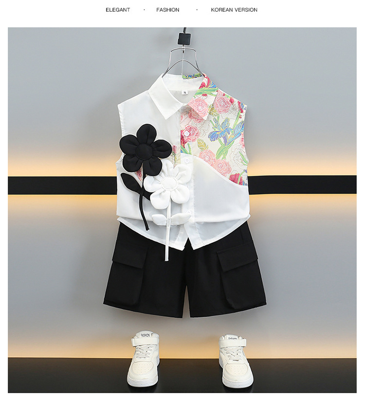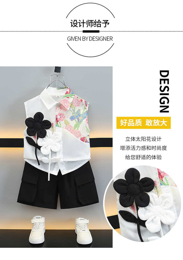 소년 민소매 셔츠 정장 여름 2025 새로운 스타일 어린이 베이비 캐주얼 꽃 셔츠 투피스 여름 세트스토어 가기