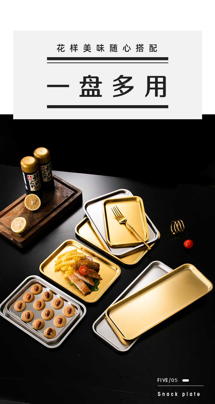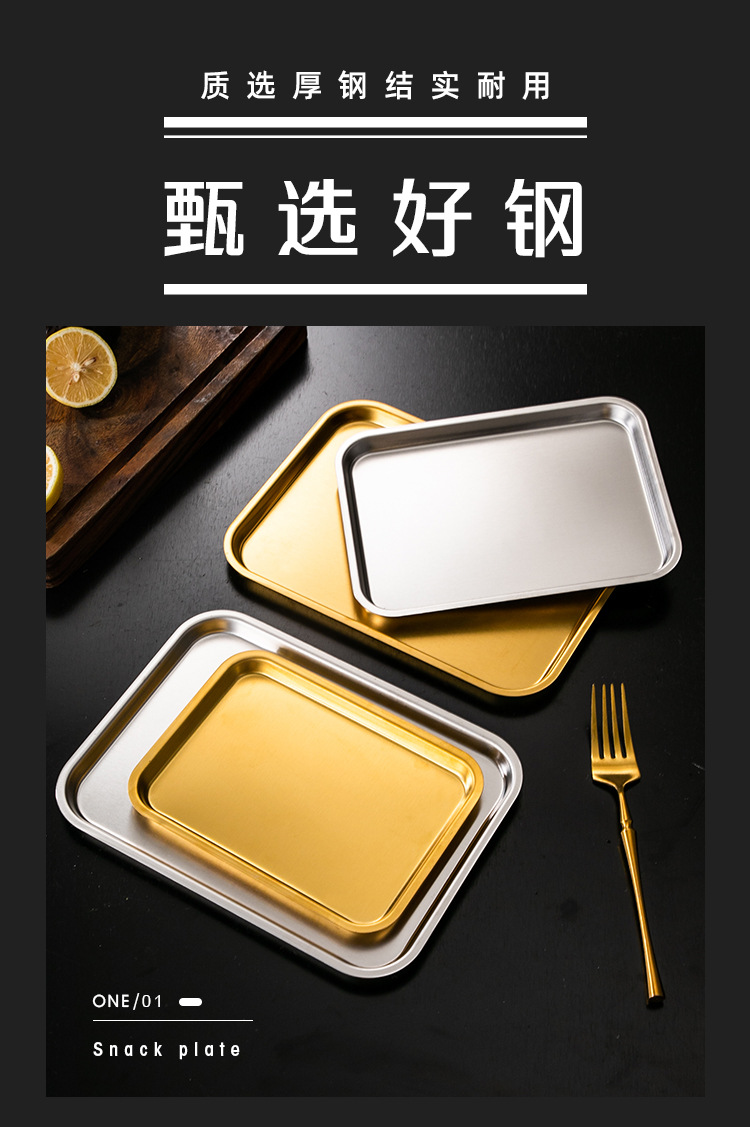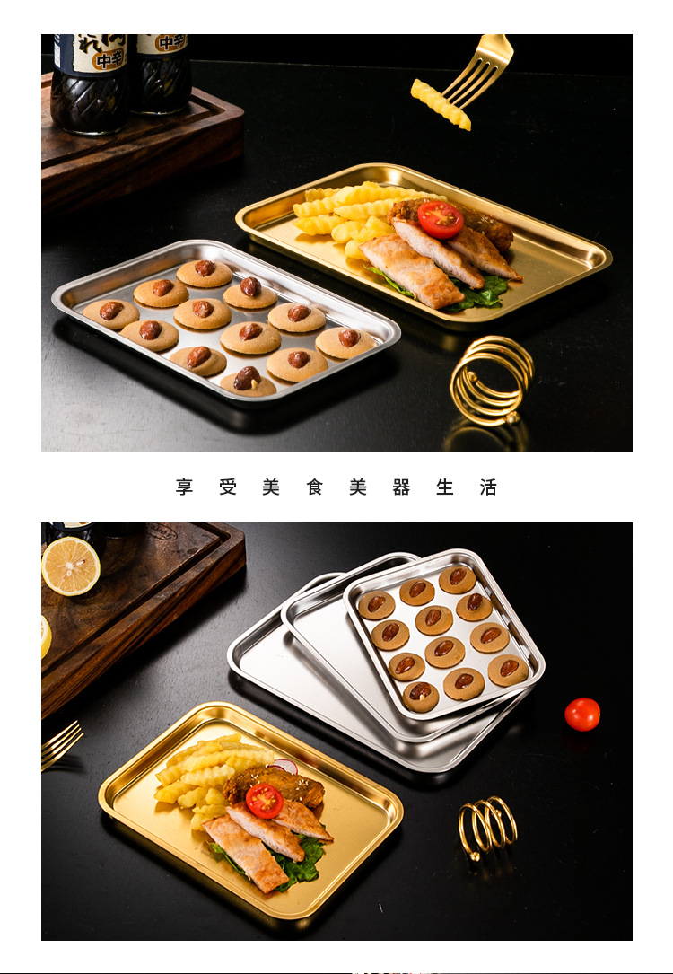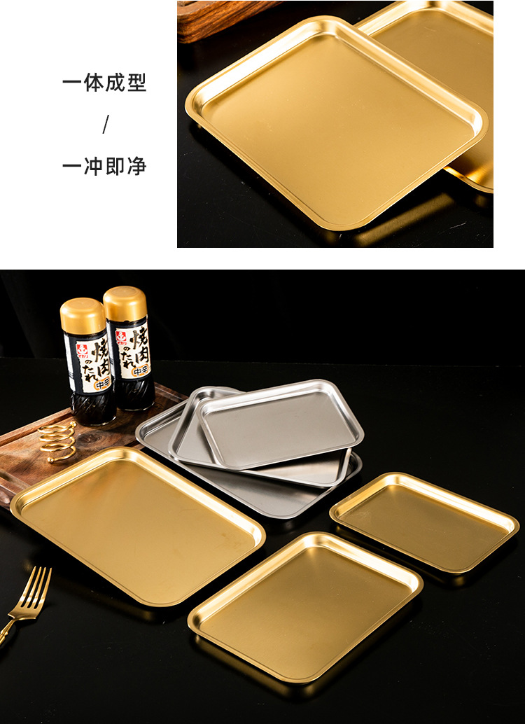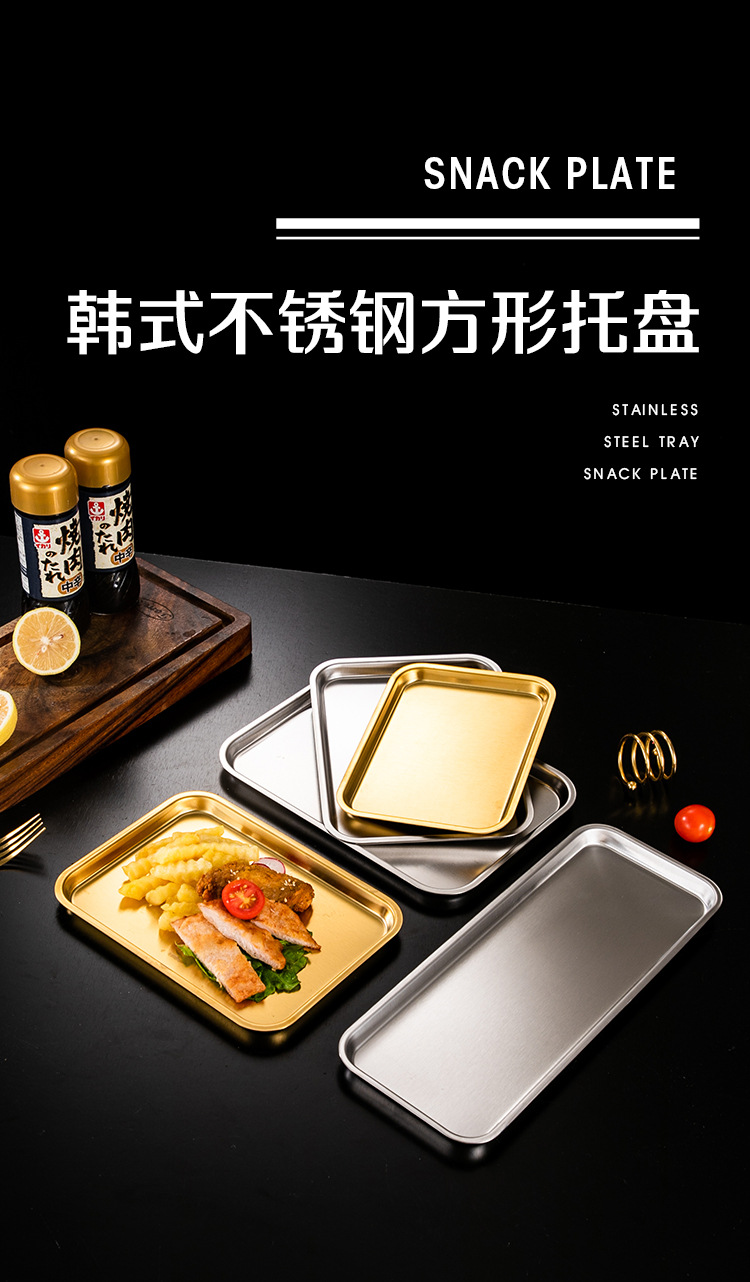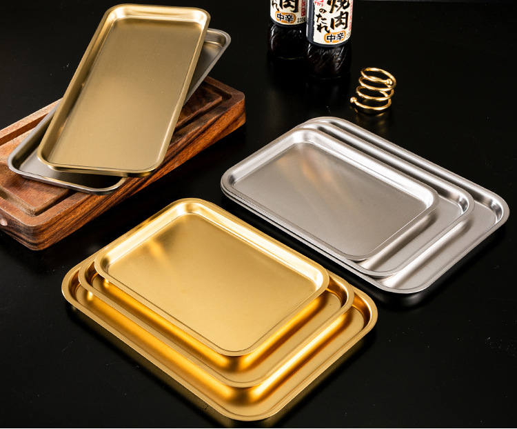 한국 스테인레스 스틸 바베큐 접시 직사각형 냄비 얕은 접시 바베큐 접시 플랫 트레이 디저트 케이크 접시