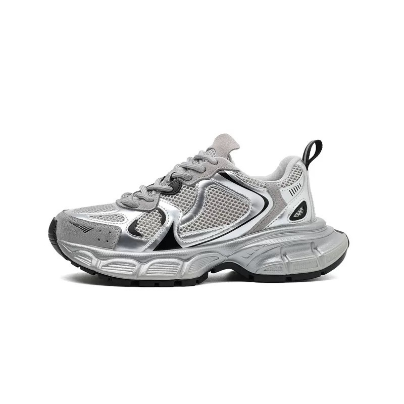 여성을 위한 내마모성이 높은 아빠 신발 2025 여름 새로운 실버 통기성 다용도 경량 스포츠 및 캐주얼 신발