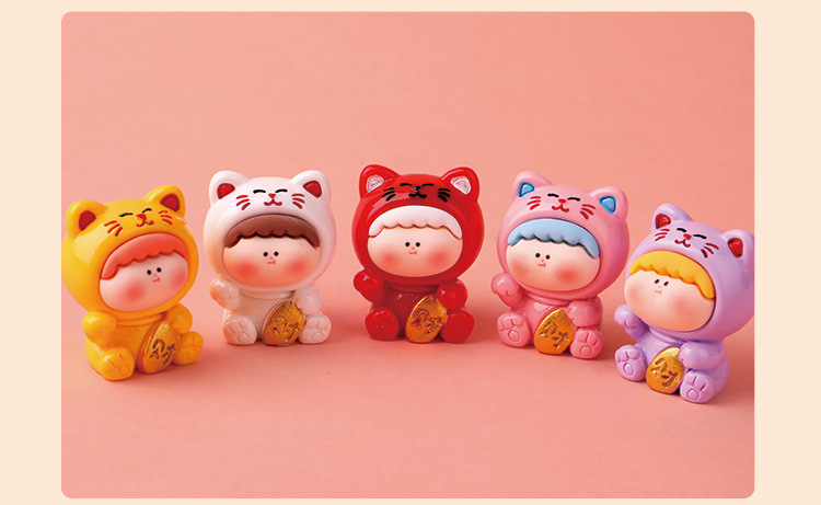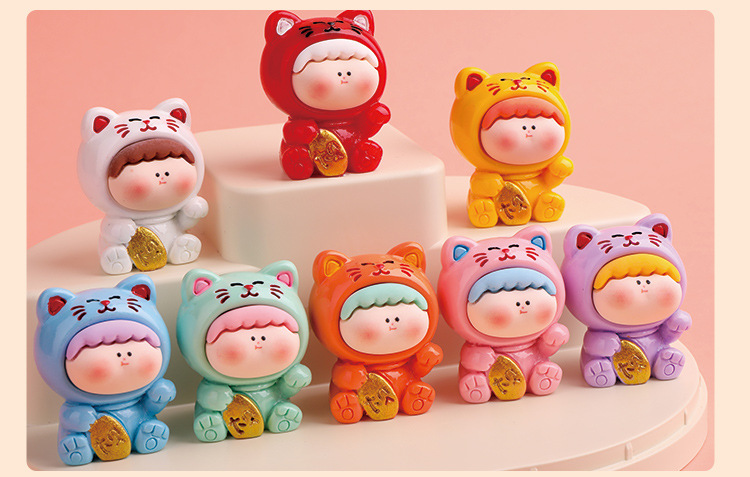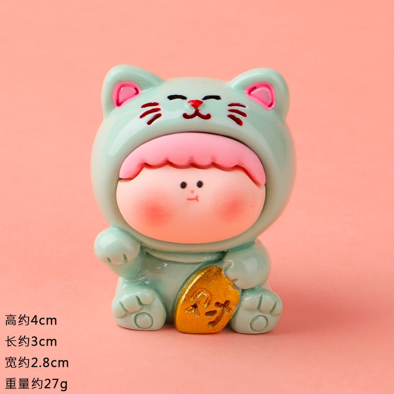 행운의 고양이 릴리스 귀여운 인형 장식품 수지 공예품 감압 치유 사무실 책상 자동차 장식품