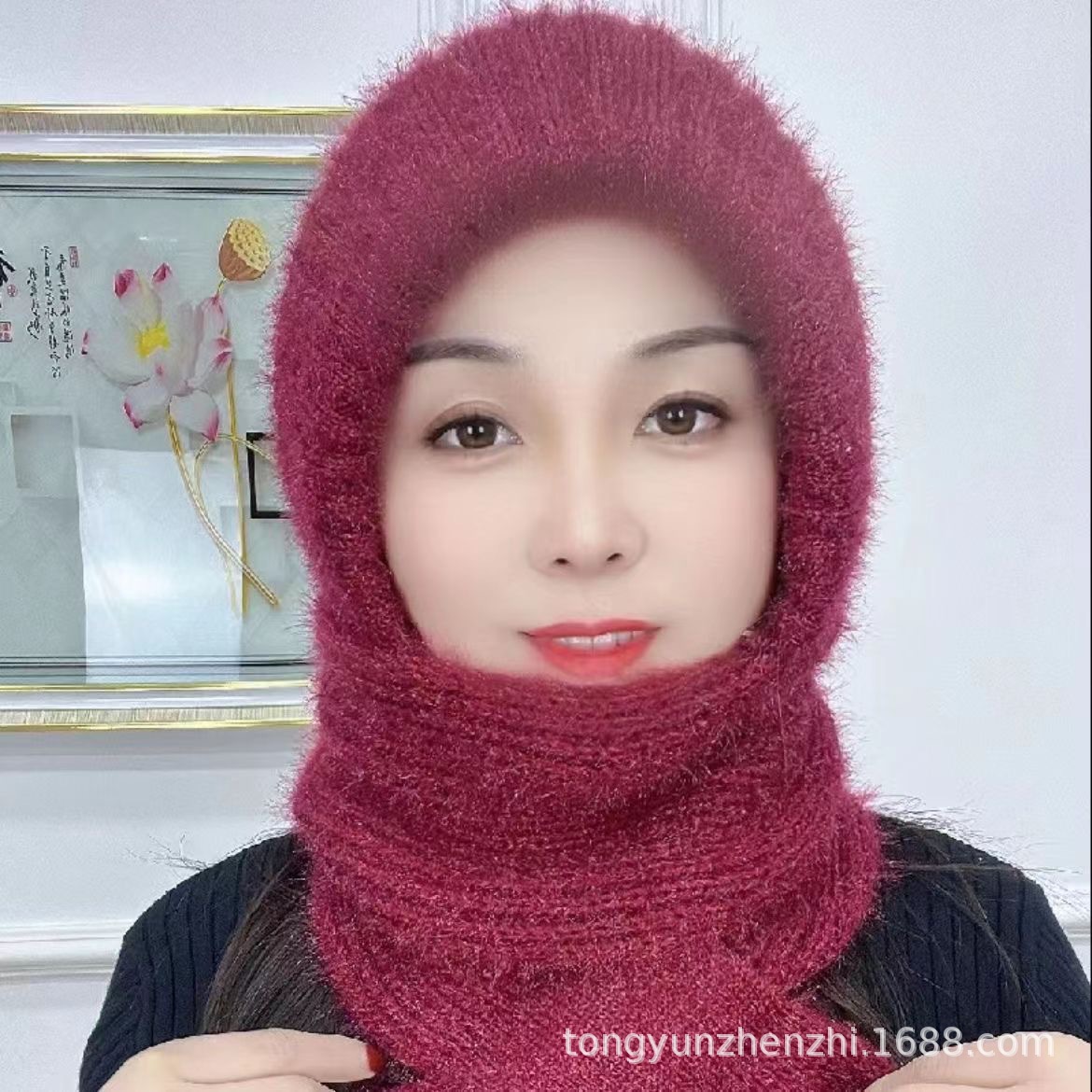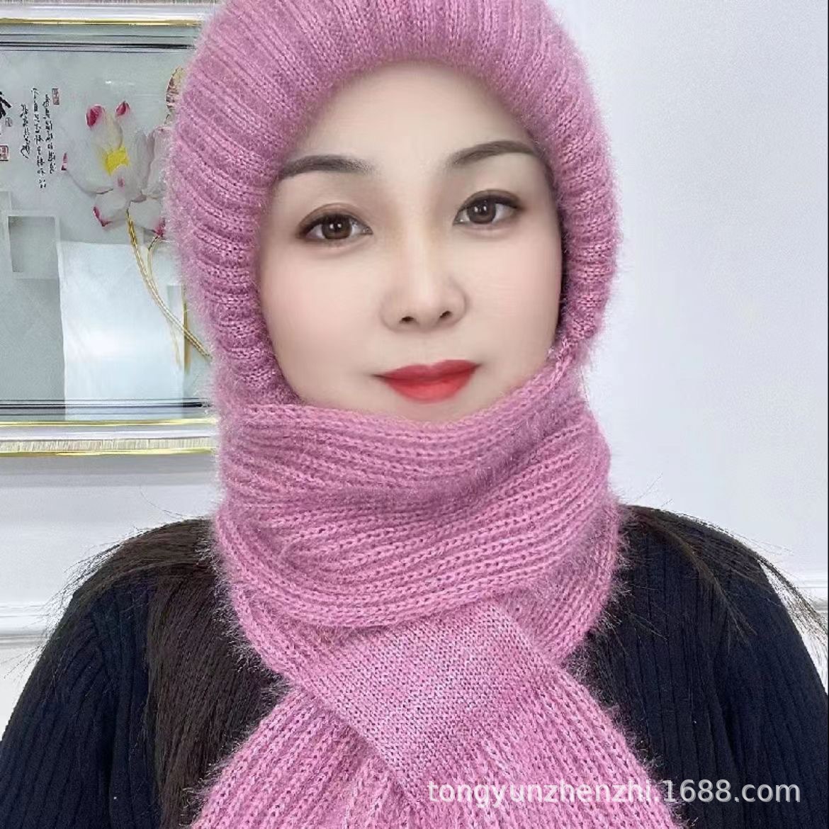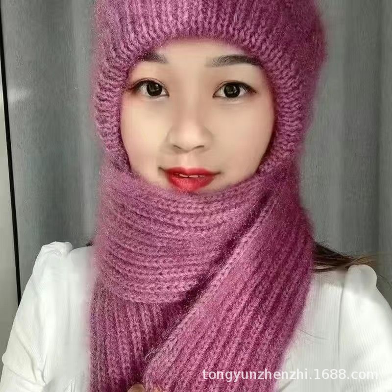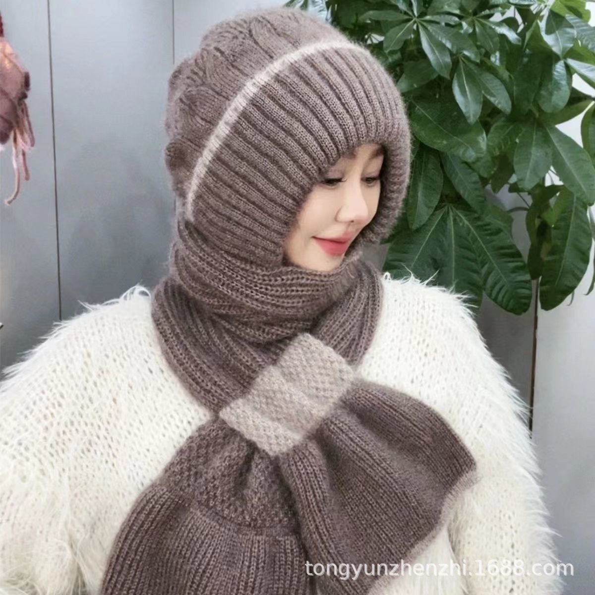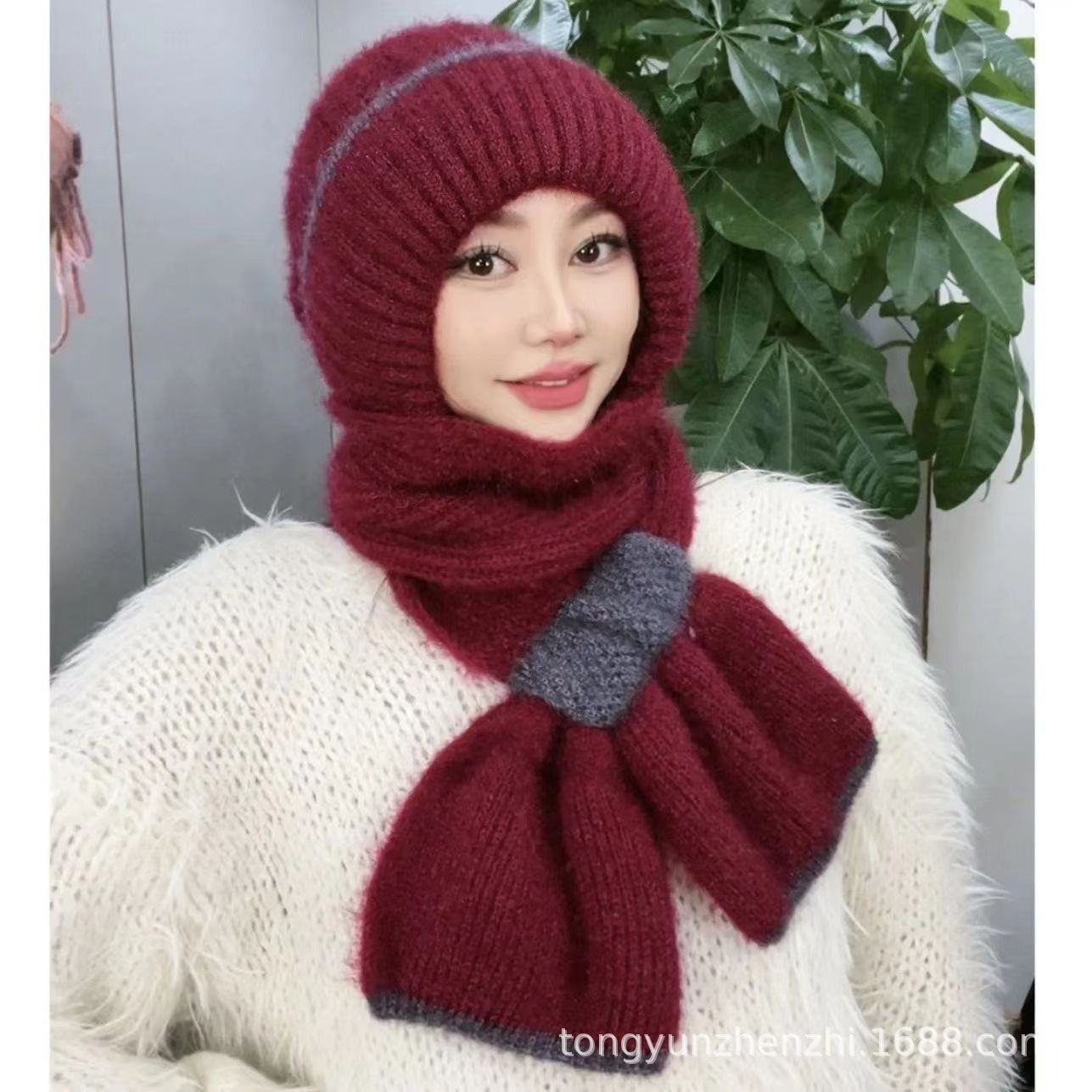 겨울 신상 플러시 니트 모자와 스카프 일체형 따뜻하고 방풍 플러스 벨벳 스카프와 토캡으로 추위와 눈을 막아줍니다.