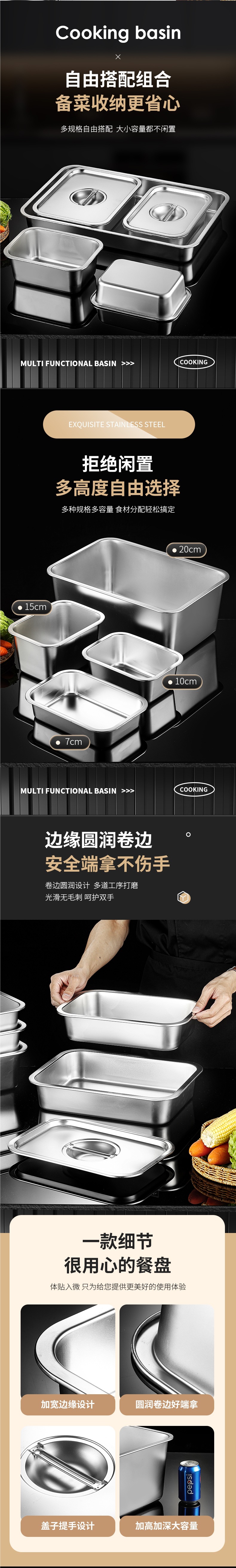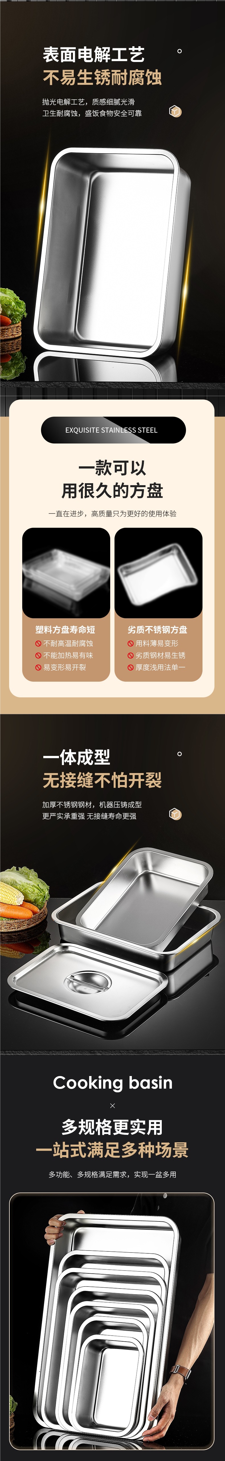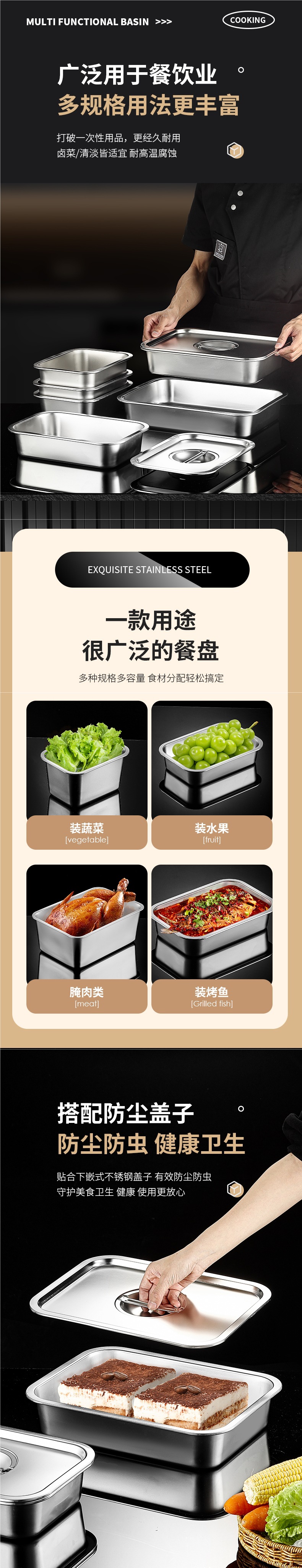 304 스테인레스 스틸 직사각형 뚜껑이 있는 사각형 접시 캔틴 식사 상자 뚜껑이 있는 플랫 바닥 트레이 패스트 푸드 사각형 뚜껑이 있는 냄비스토어 가기