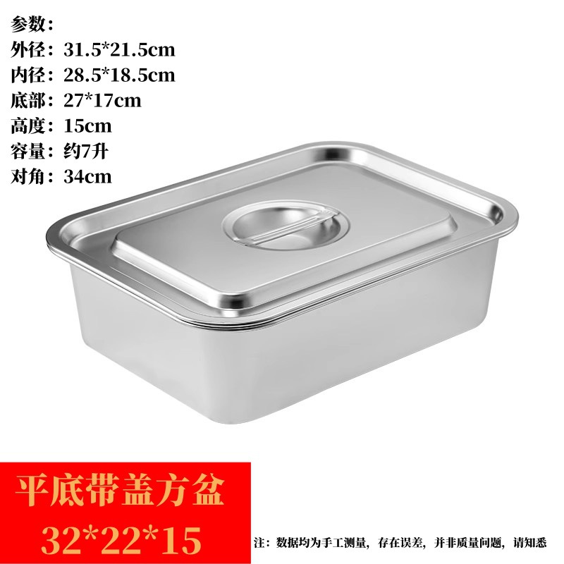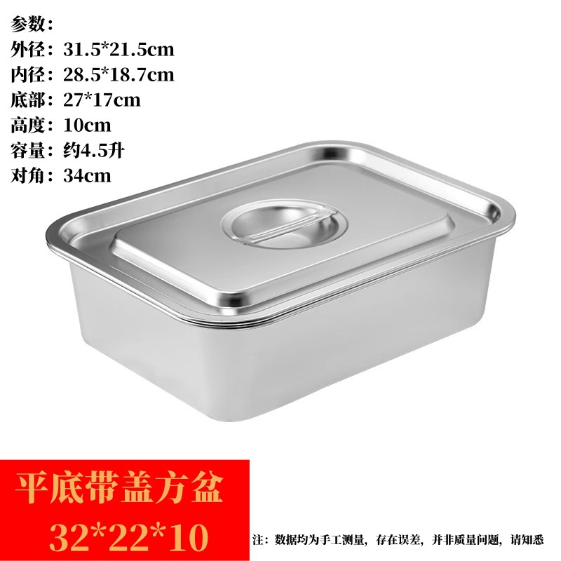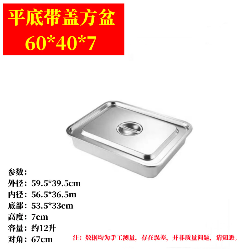 304 스테인레스 스틸 직사각형 뚜껑이 있는 사각형 접시 캔틴 식사 상자 뚜껑이 있는 플랫 바닥 트레이 패스트 푸드 사각형 뚜껑이 있는 냄비
