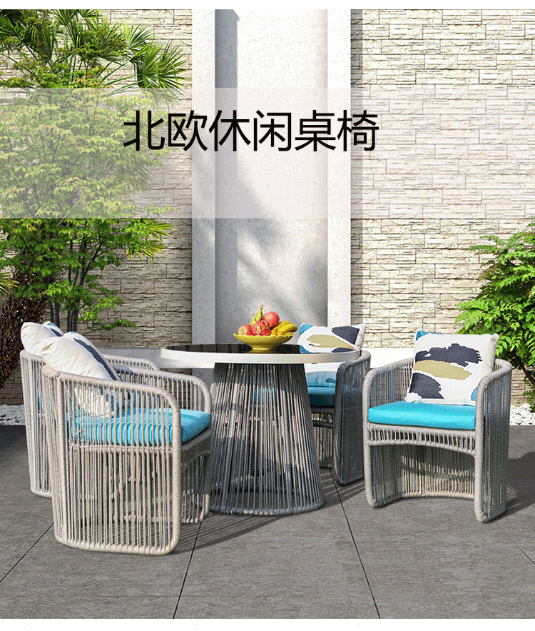 야외 테이블과 의자, 발코니 등나무 의자 조합, 안뜰 정원 로프, 북유럽 레저 야외 등나무, 인터넷 연예인 안뜰 가구