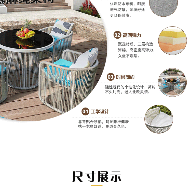 야외 테이블과 의자, 발코니 등나무 의자 조합, 안뜰 정원 로프, 북유럽 레저 야외 등나무, 인터넷 연예인 안뜰 가구스토어 가기