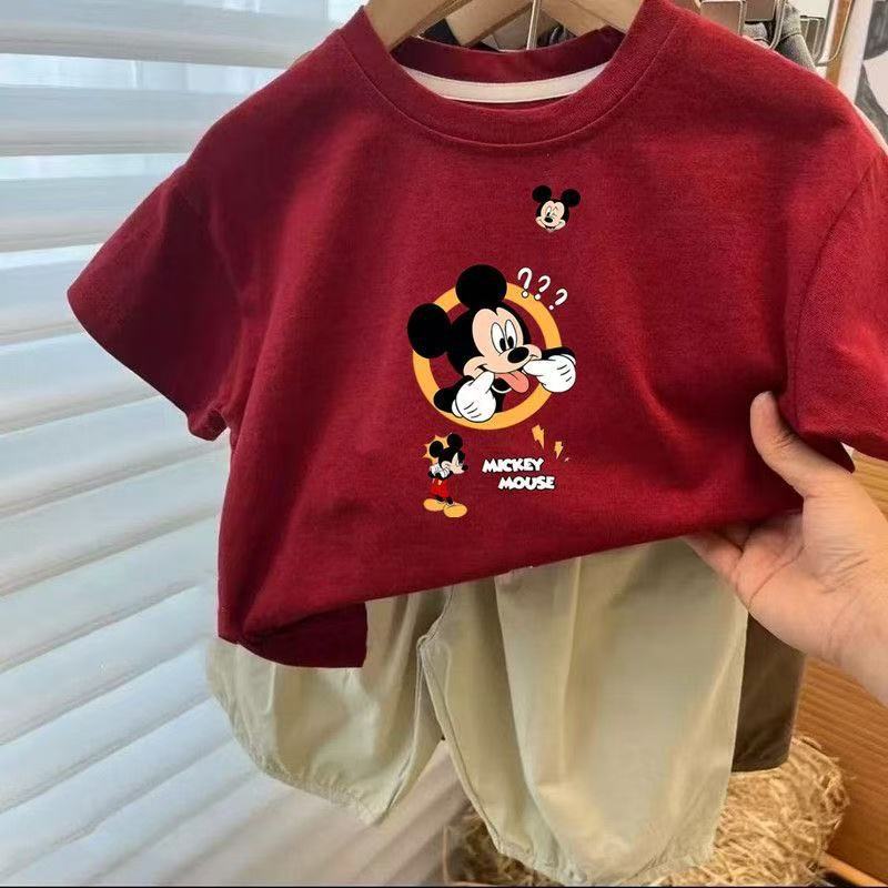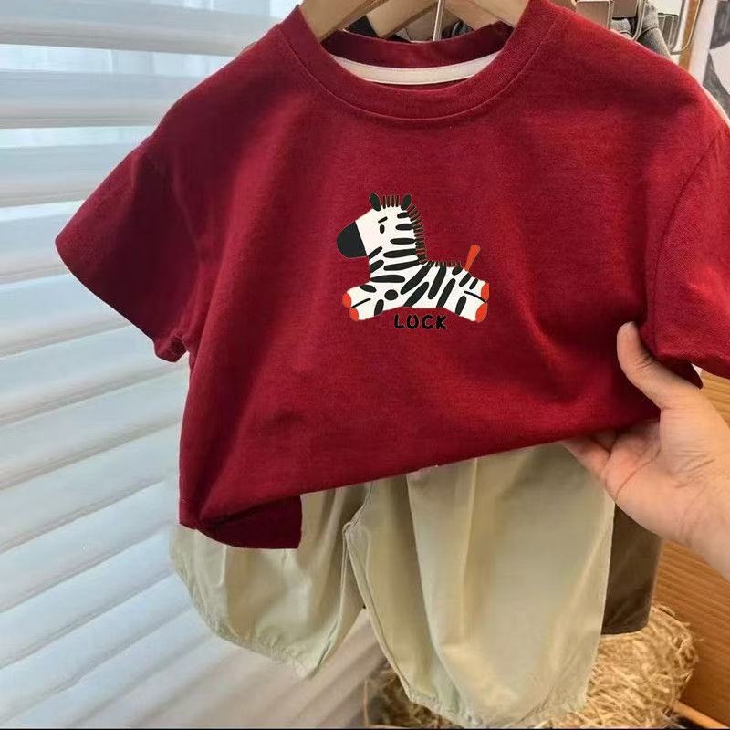 어린이 신작 소년 소녀 순면 반팔 티셔츠 여름 신작 한국식 루즈하고 다재다능한 레드 탑