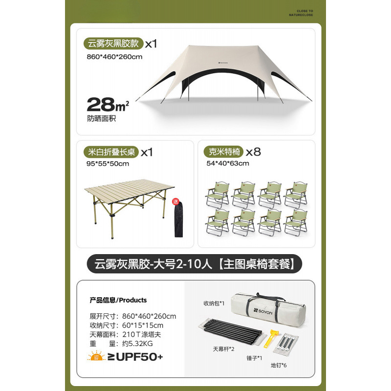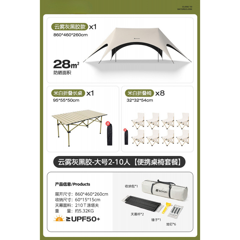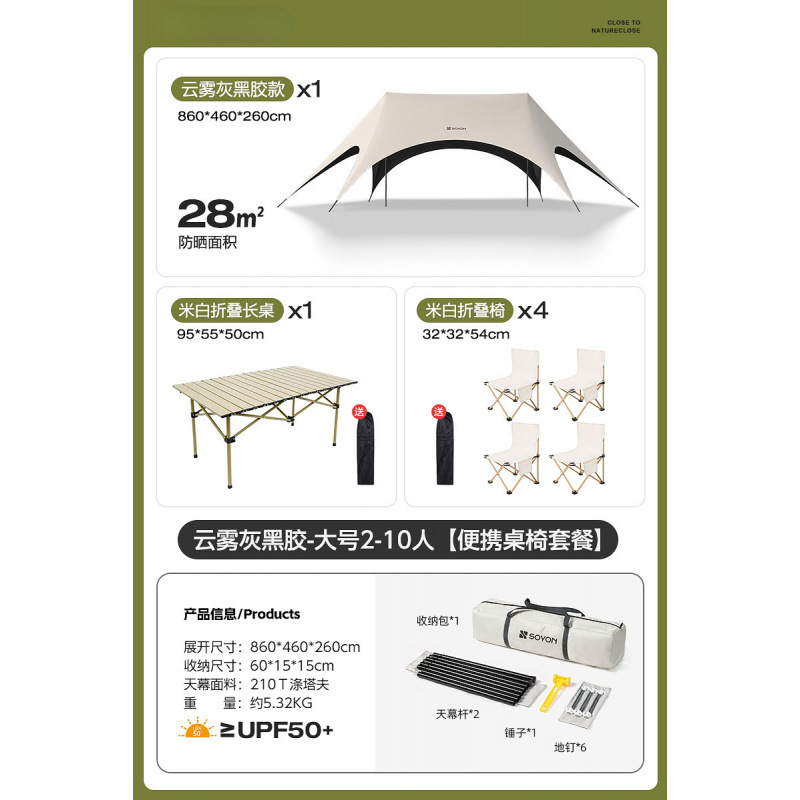 야외용 텐트, 차양, 테이블 및 의자, 게으른 사람들을 위한 차양, 캠핑용 6개 세트 무료 제공스토어 가기