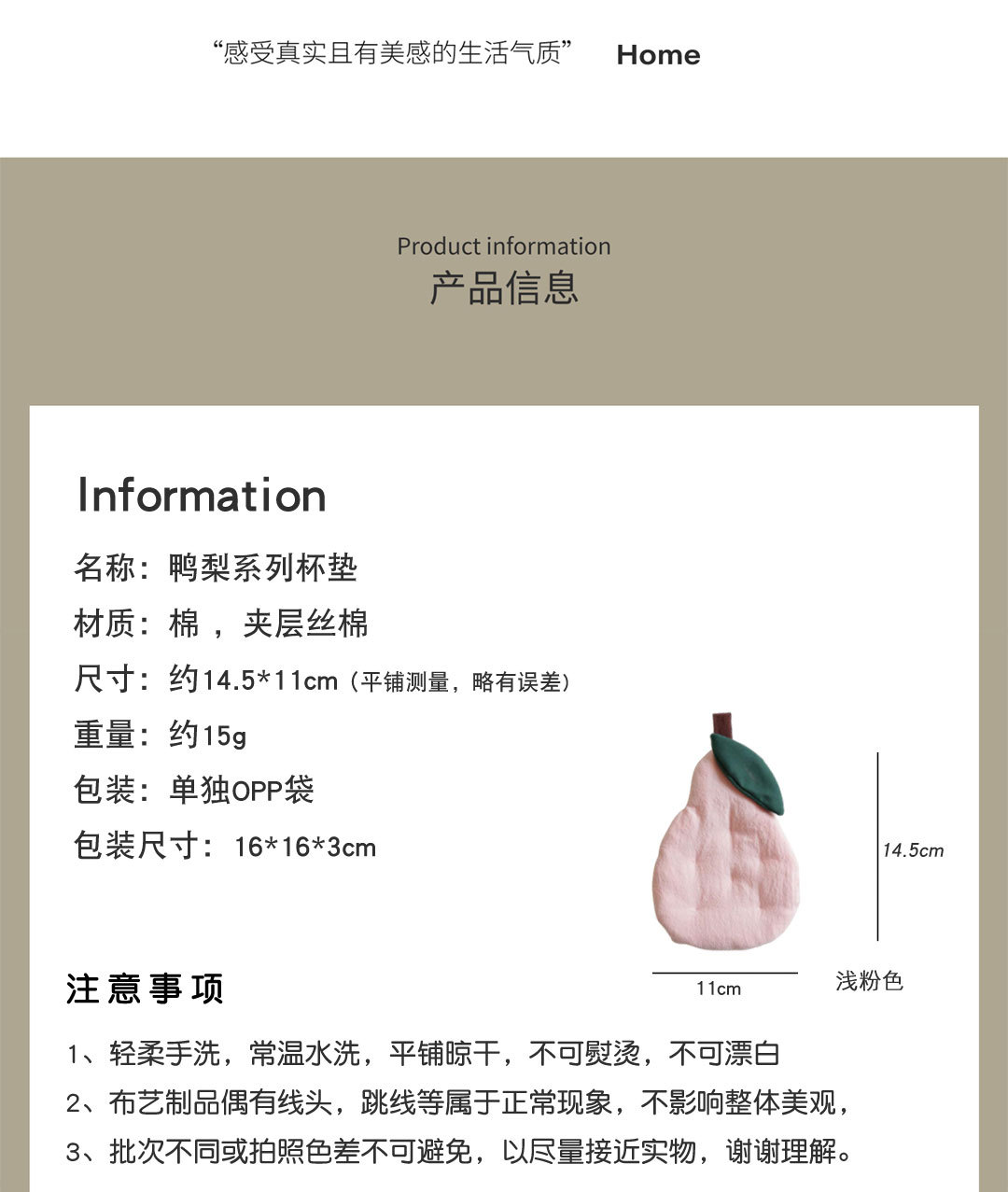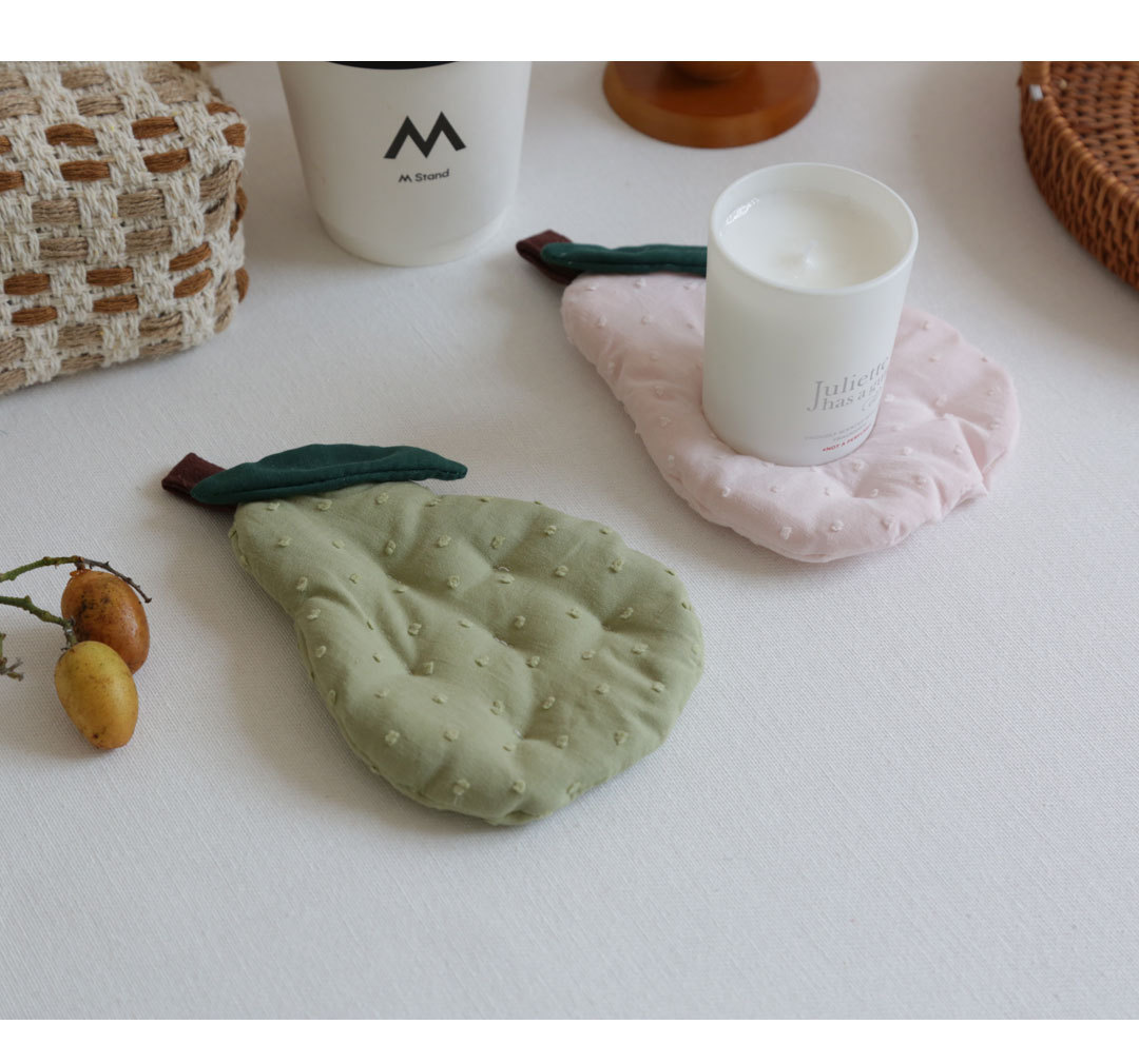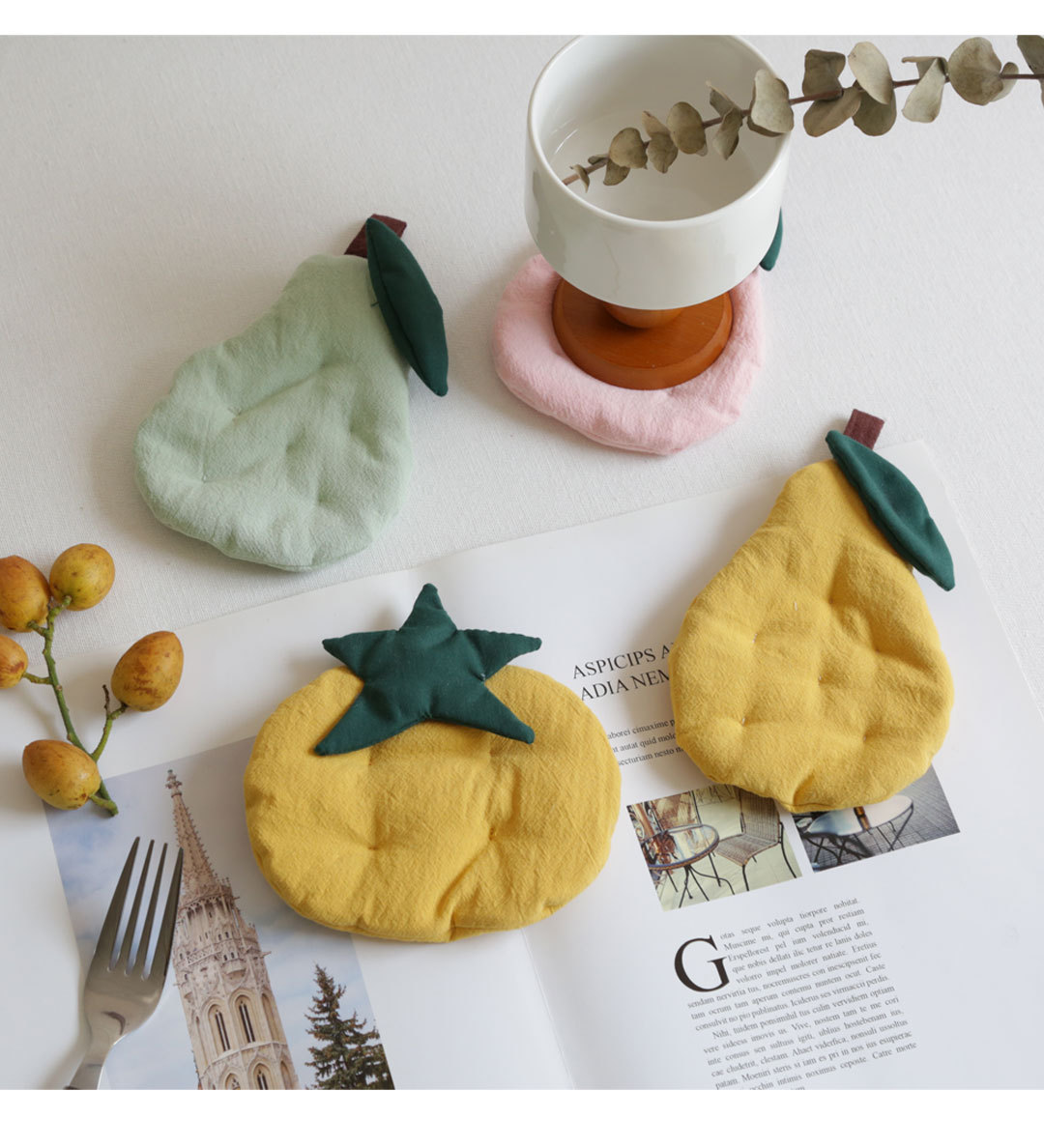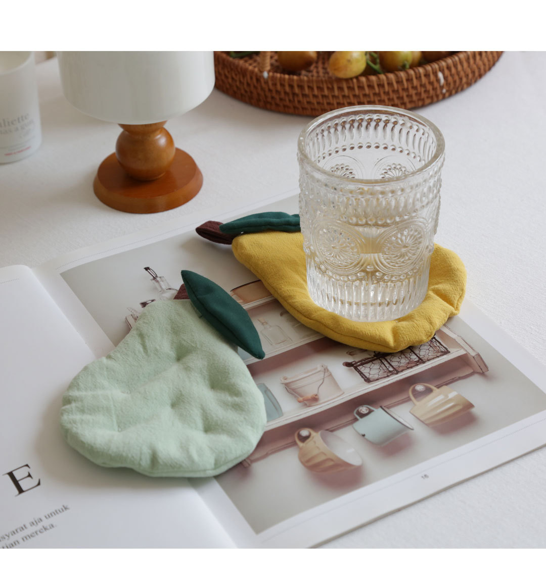 Meizuo 요소 한국어 스타일 귀여운 배 모양 코스터 쥬얼리 패드 패브릭 티 컵 단열 매트 공장스토어 가기