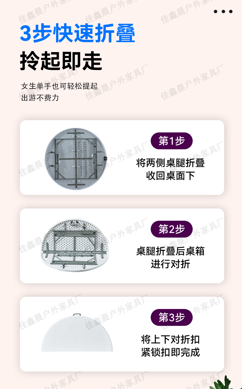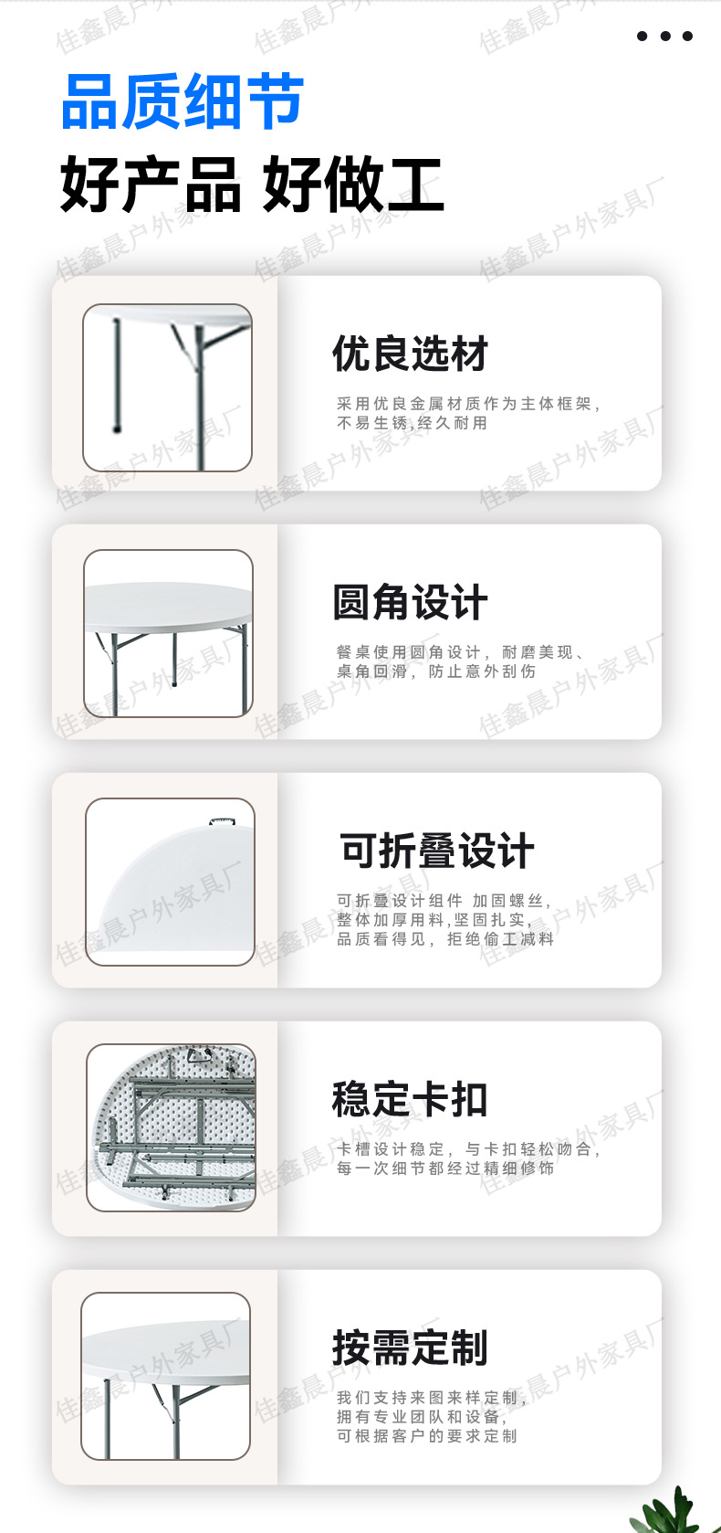 대외 무역 도매 접이식 테이블 간단하고 세련된 플라스틱 접이식 대형 원형 테이블 거실 레스토랑 호텔 야외 접이식 식탁