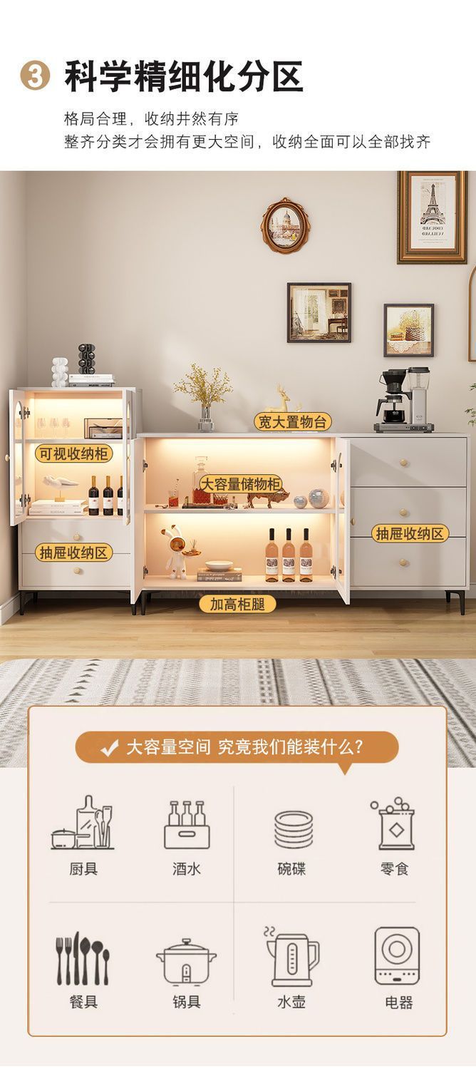 찬장, 벽걸이 수납장, 가벼운 고급 주방 캐비닛, 차 수납장, 모던 심플 크림 스타일 원목