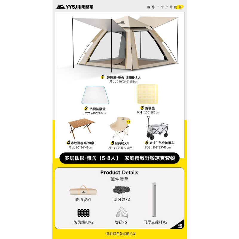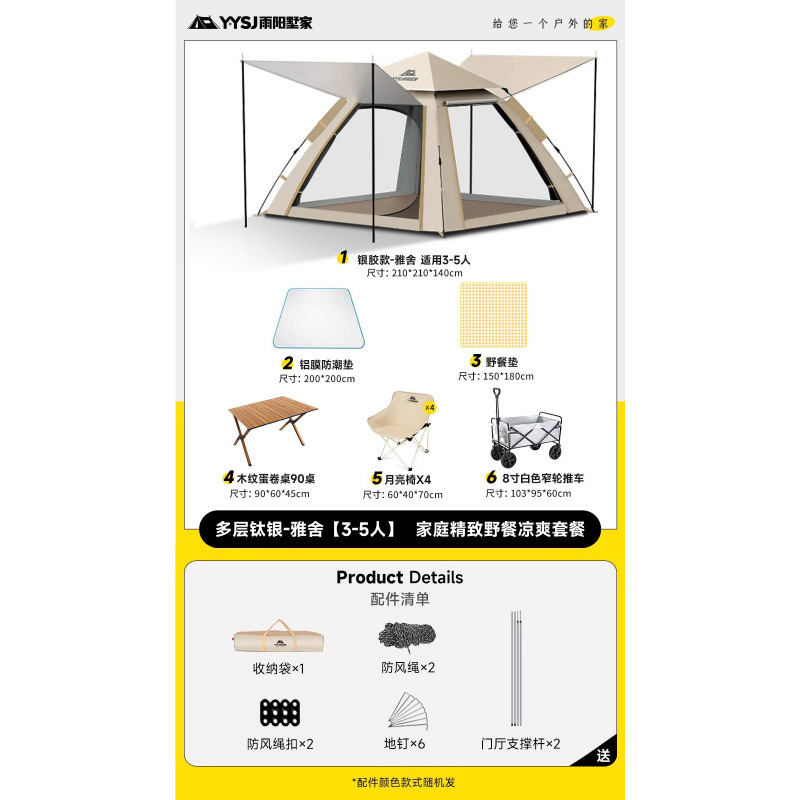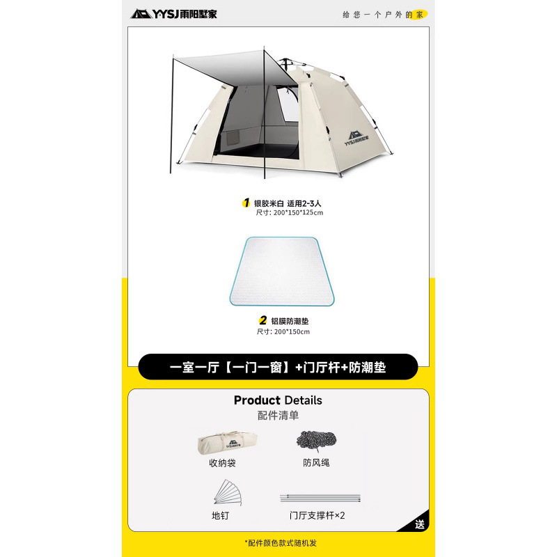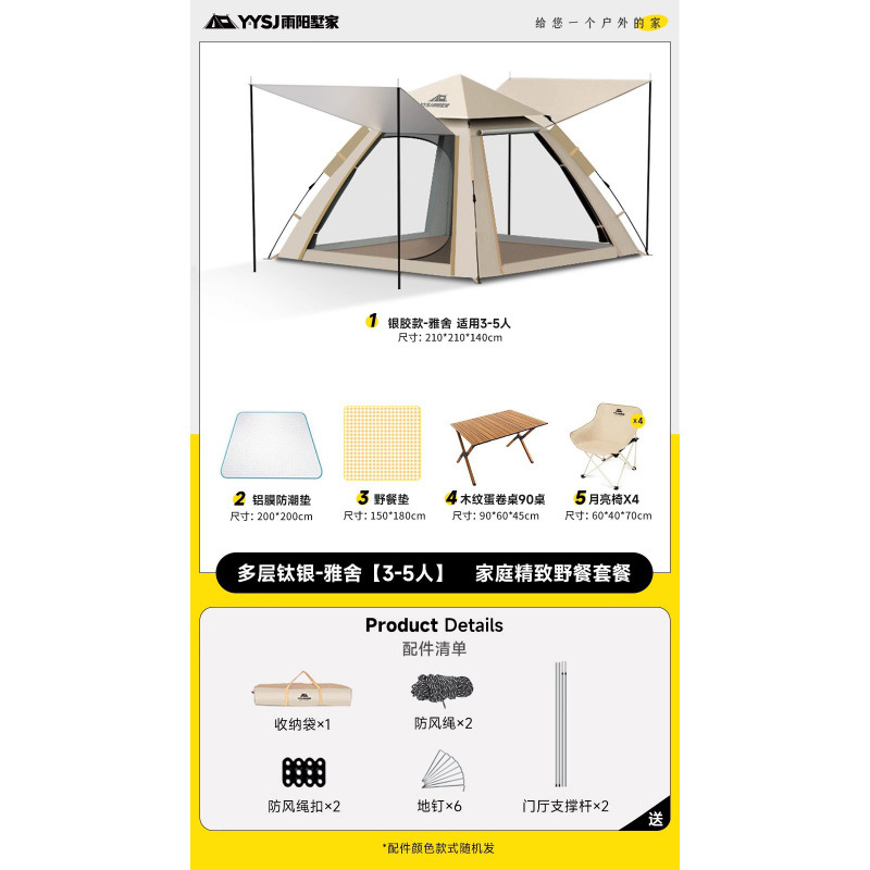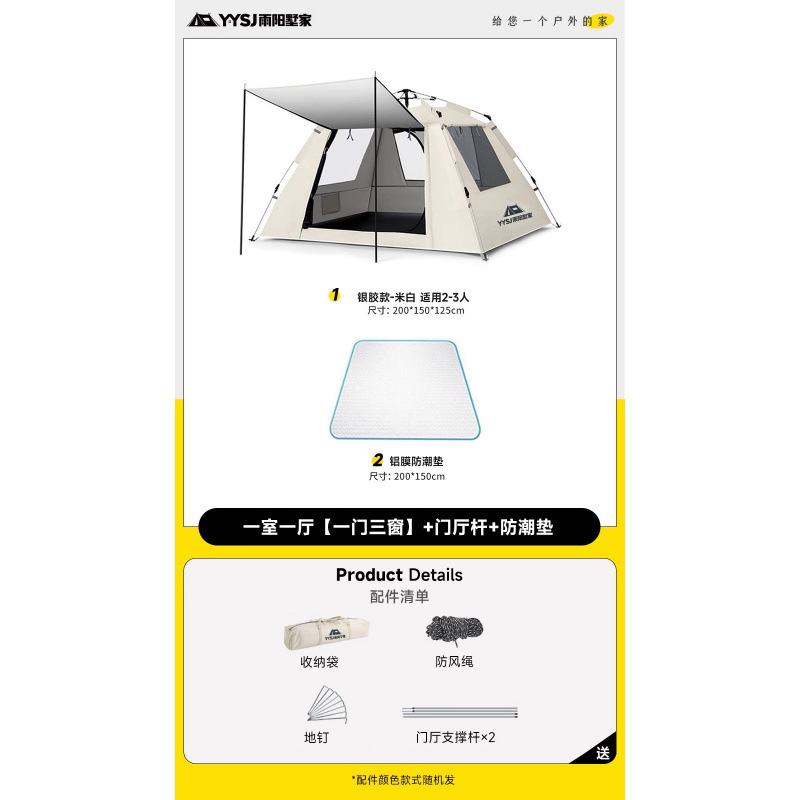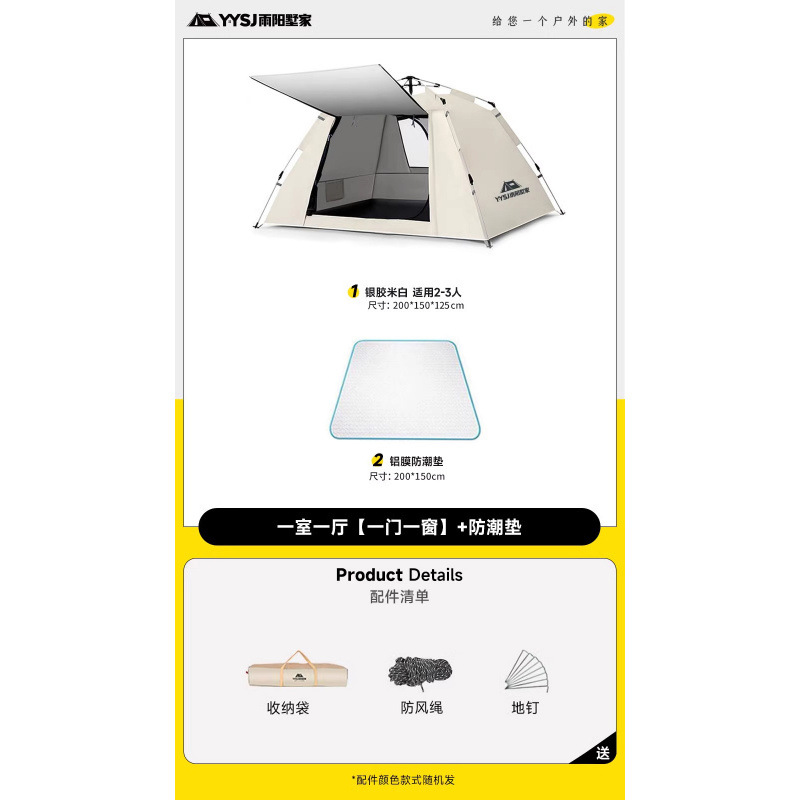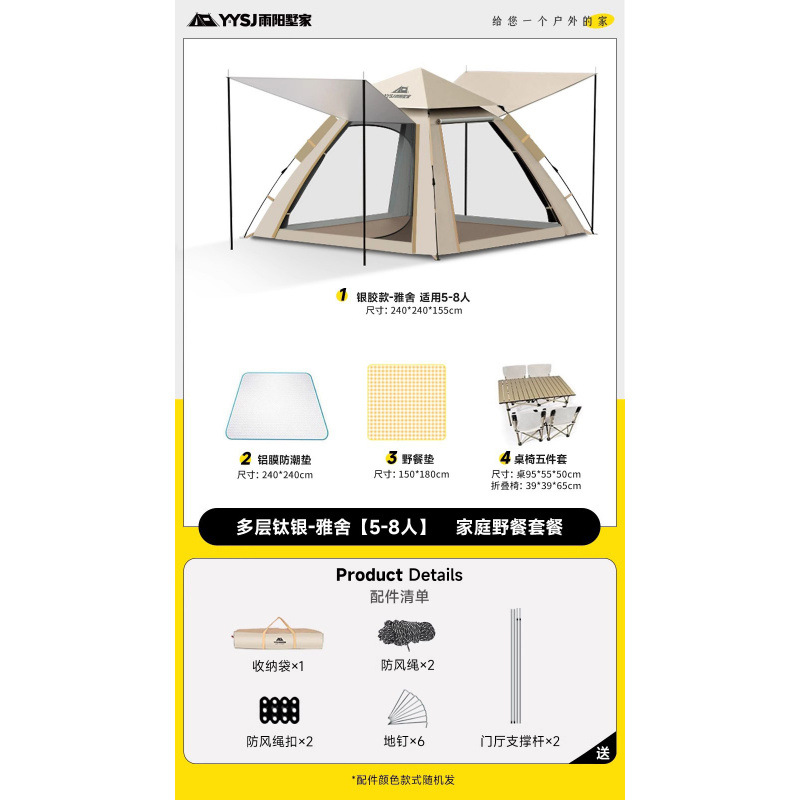 • 특대형 사이즈 [문 2개, 창문 2개, 두꺼운 자외선 차단] + 방습 매트 + 피크닉 매트 + 더블 테이블과 의자