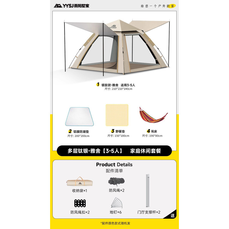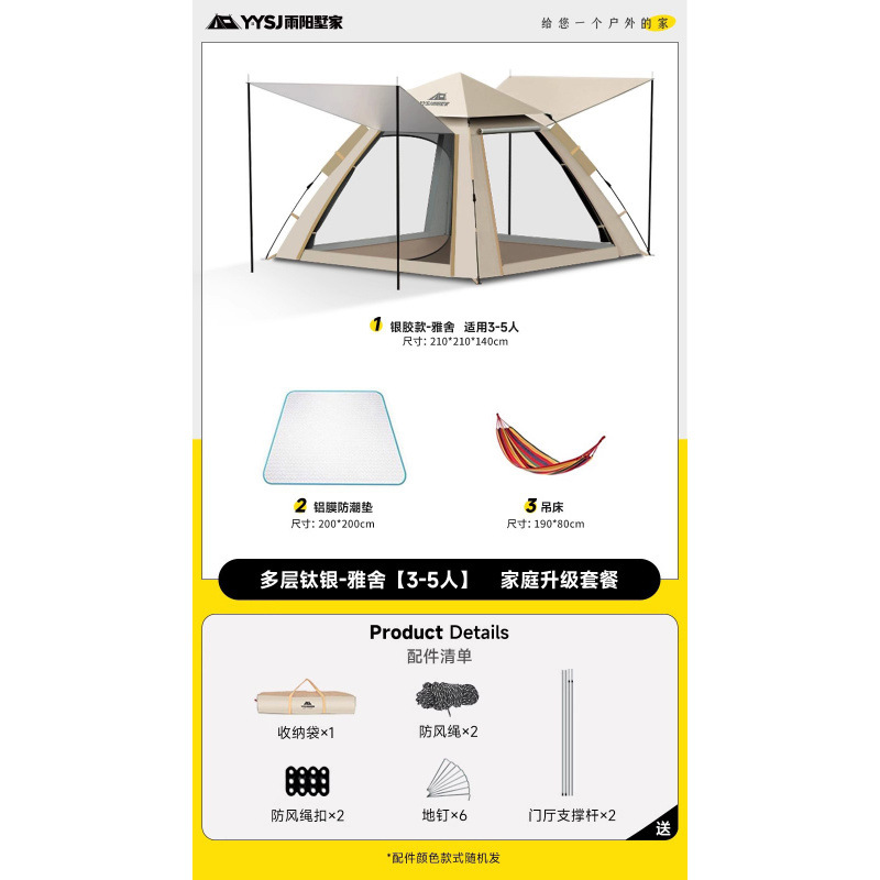 • [문 2개, 창문 2개, 자외선 차단 기능 강화] + 방습 매트 + 피크닉 매트 + 해먹