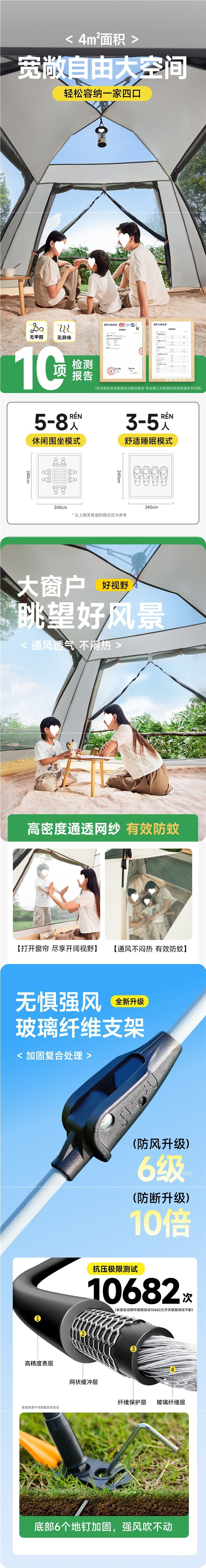 • 초대형 사이즈 [문 2개, 창문 2개, 두꺼운 자외선 차단] + 자동 팽창식 매트리스