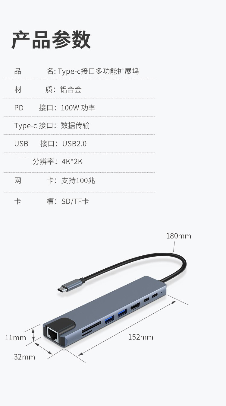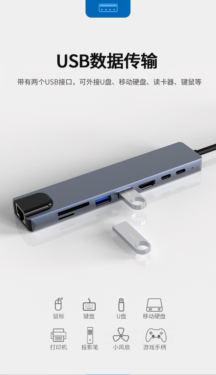 크로스보더 Magelei 8-in-1 타입-C 확장 도크 노트북 USB3.0 확장기 PD 고속 충전 분배기스토어 가기