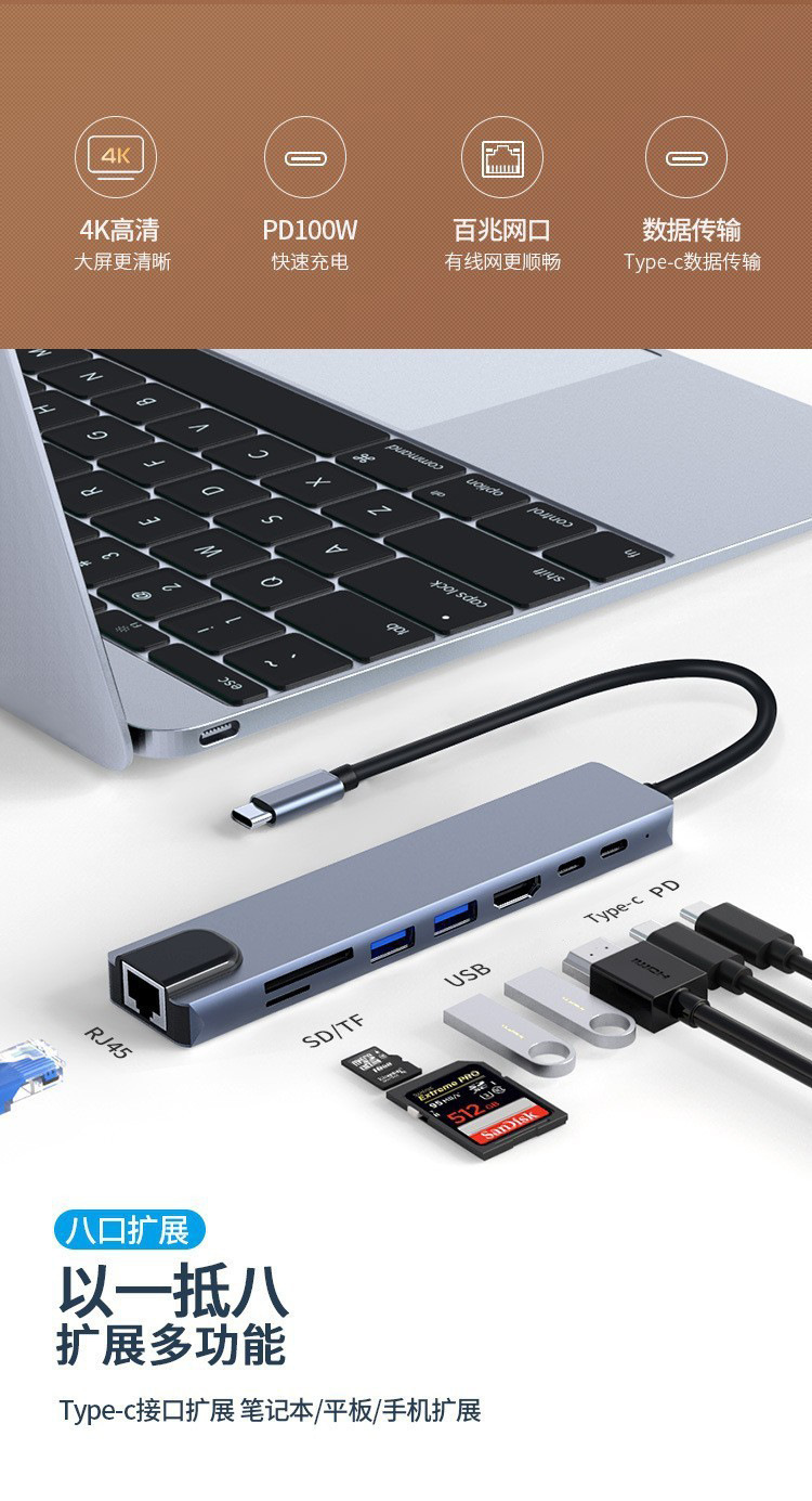 크로스보더 Magelei 8-in-1 타입-C 확장 도크 노트북 USB3.0 확장기 PD 고속 충전 분배기