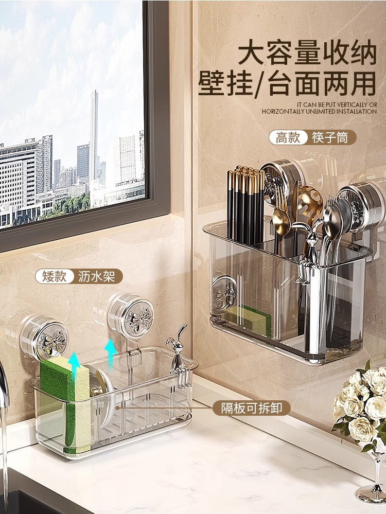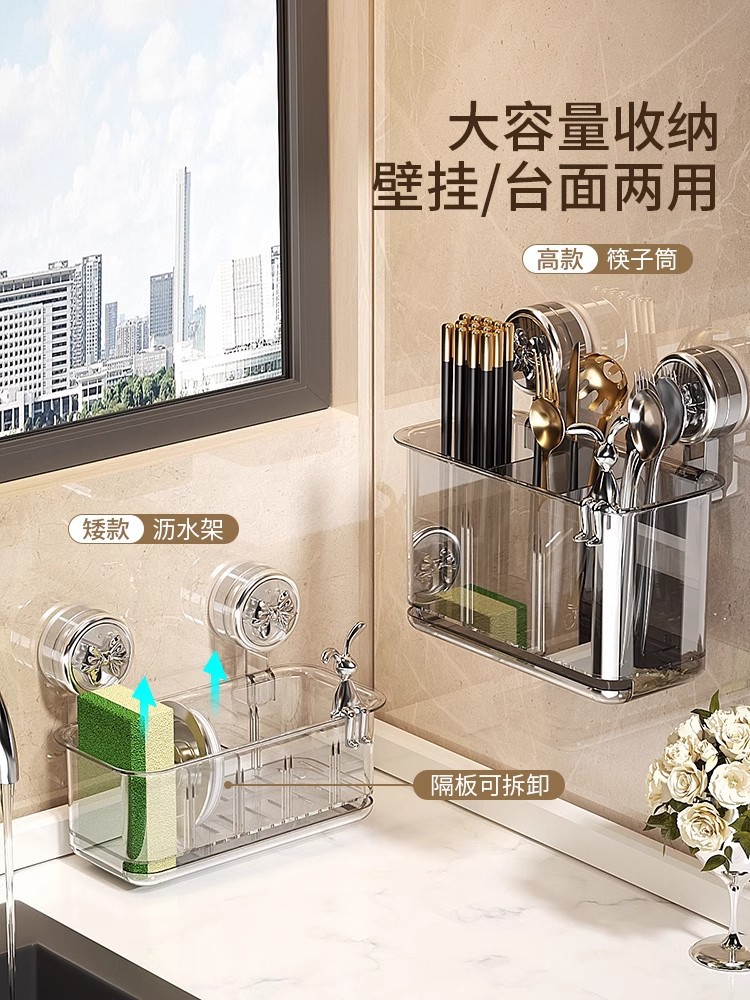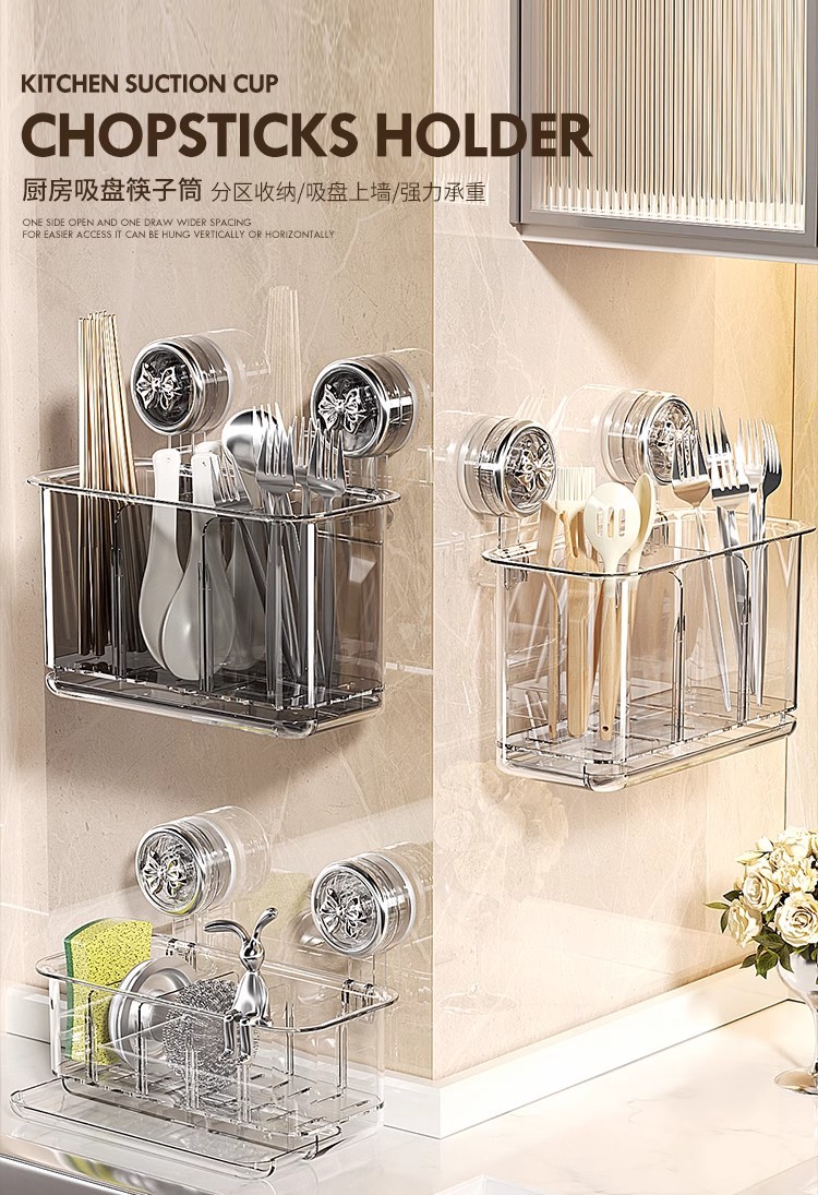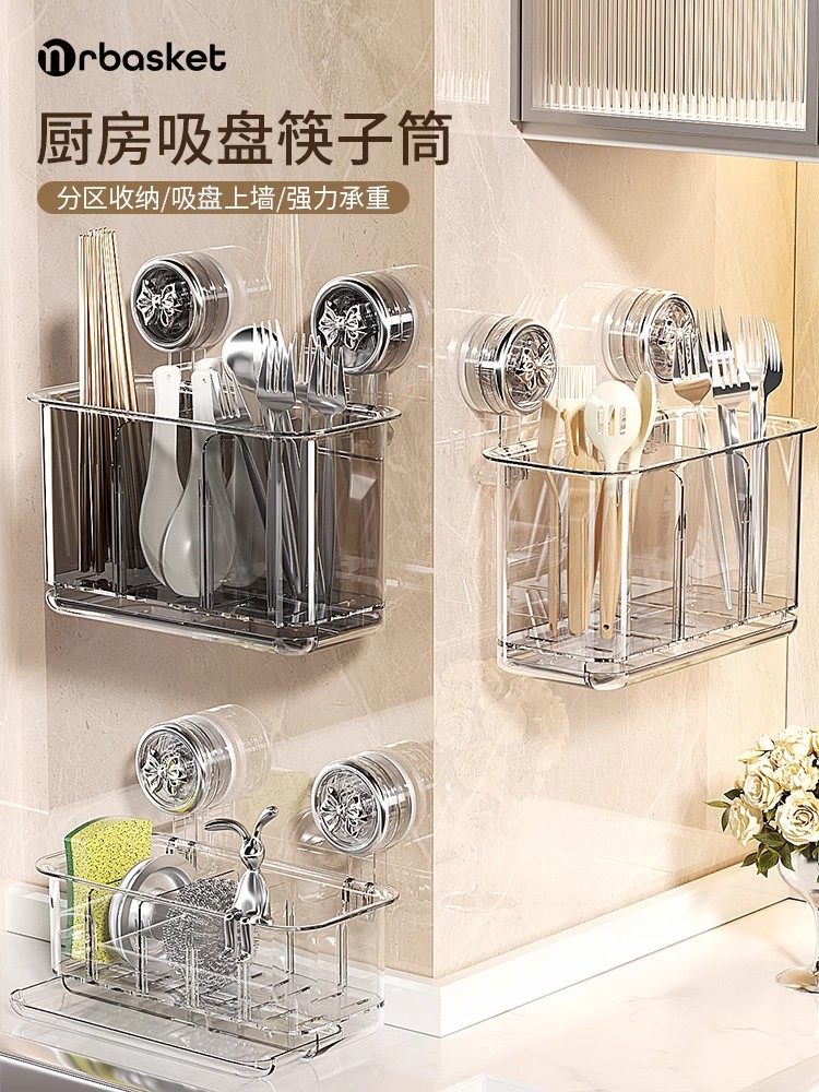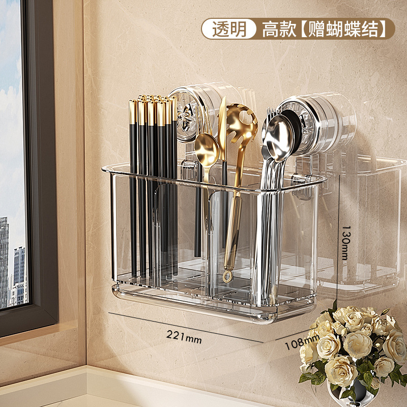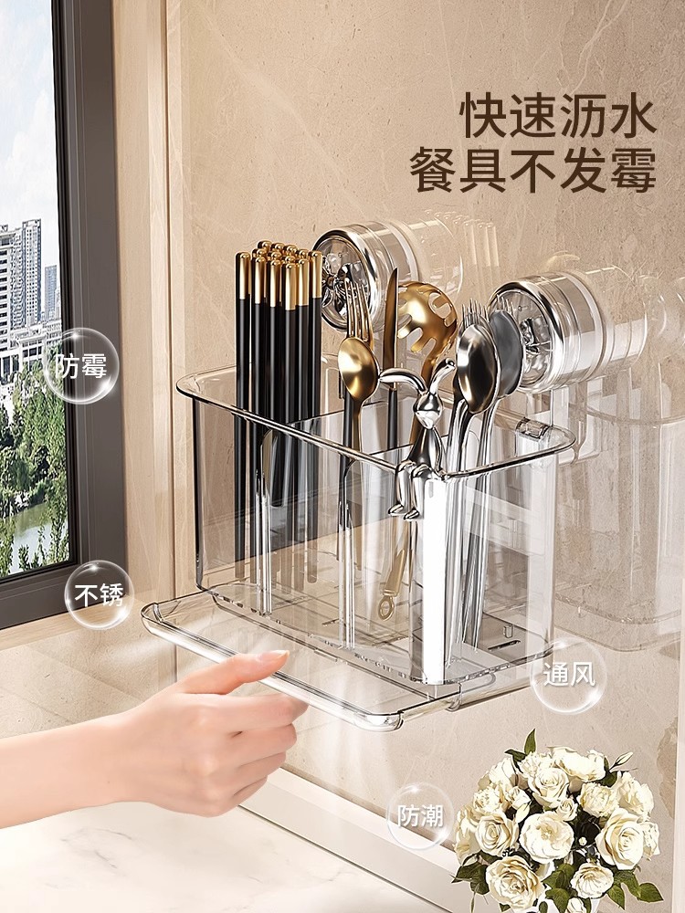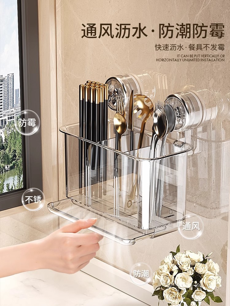 ✅ 흡입 컵 주방 젓가락통 보관함 가정용 펀치없는 젓가락 케이지 벽걸이 형 젓가락 스푼 보관함 배수 랙스토어 가기