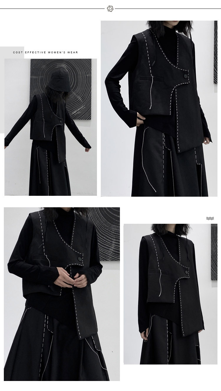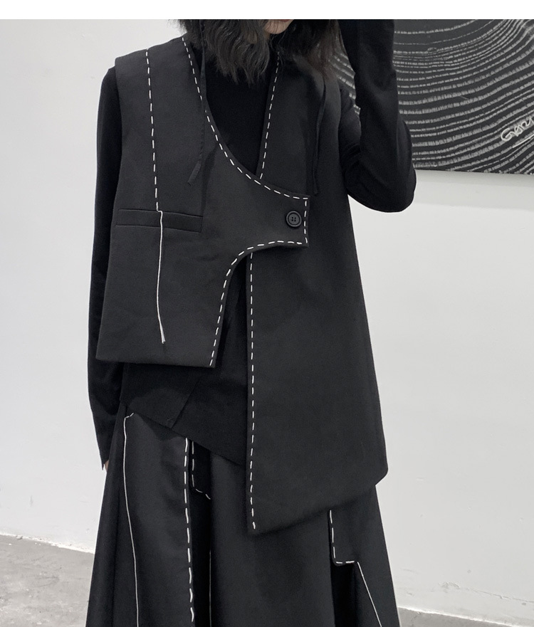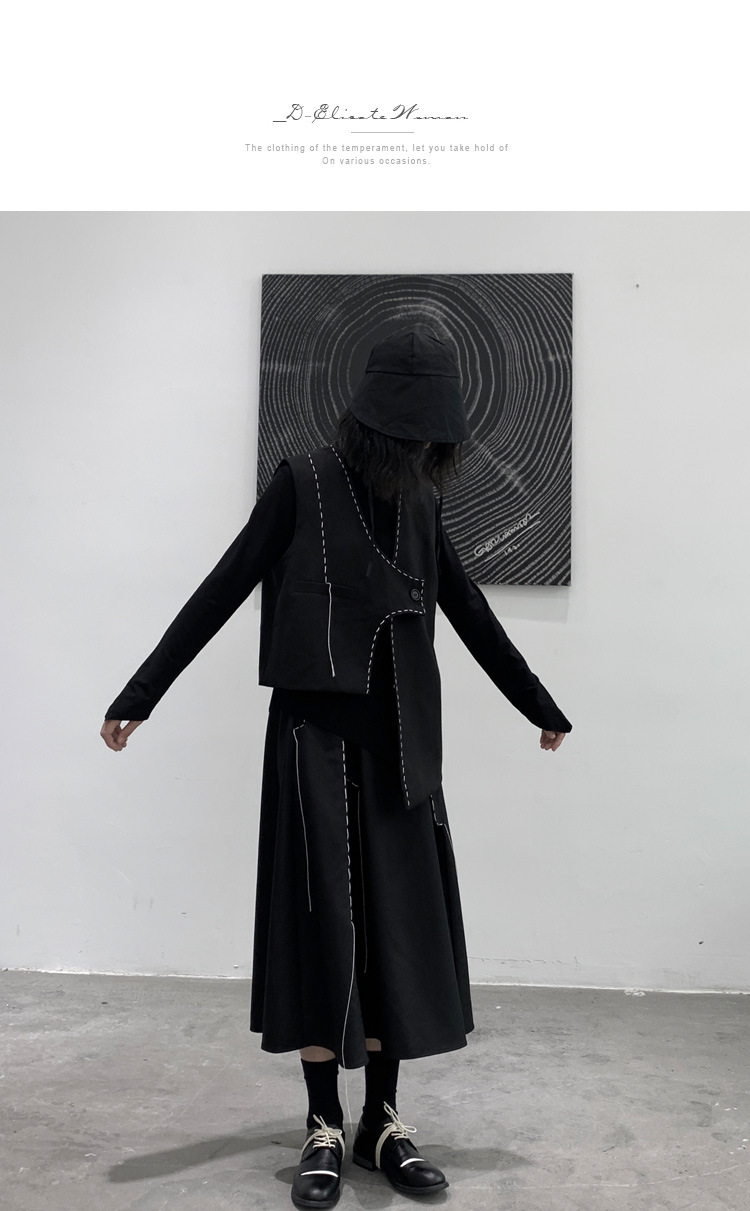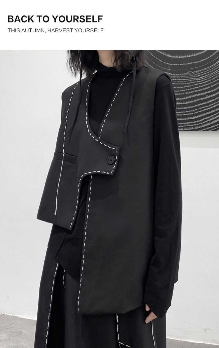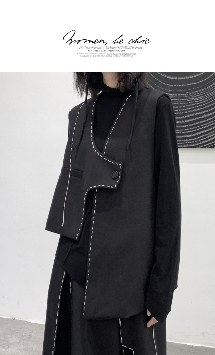 디자인 니치 야마모토 다크 스타일 오픈 라인 조끼 여성 봄 신작 중공업 햅번 스타일 게으른 개성 조끼