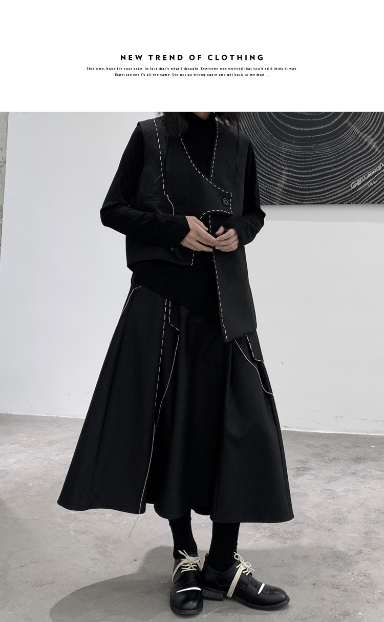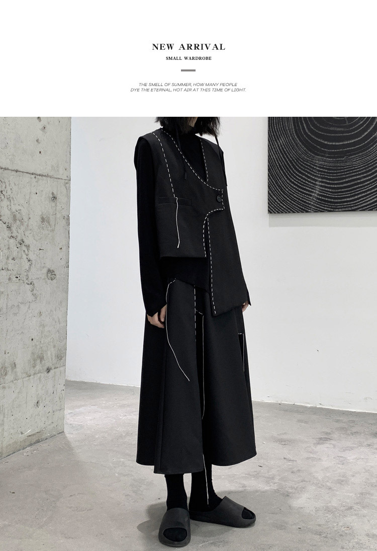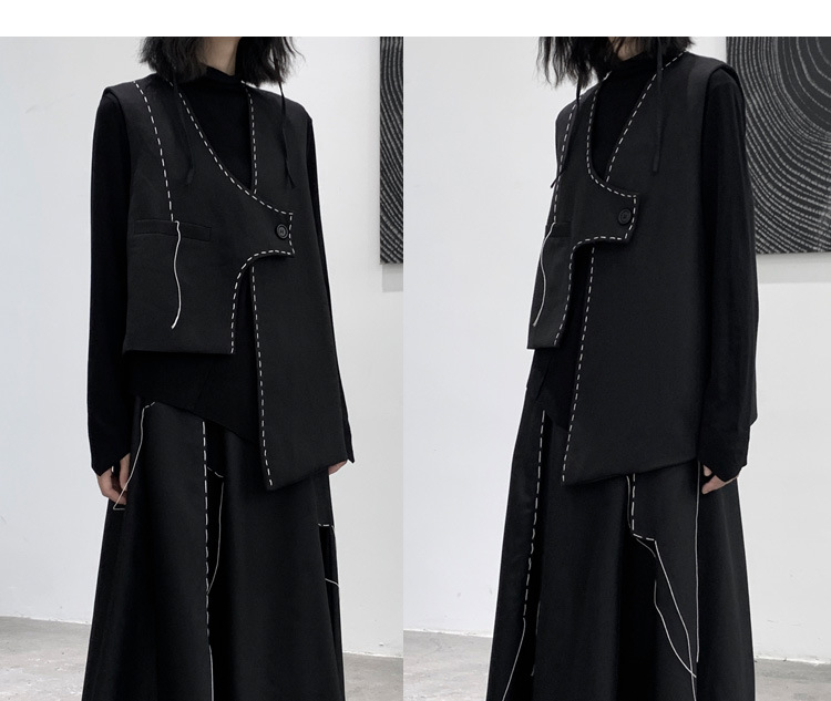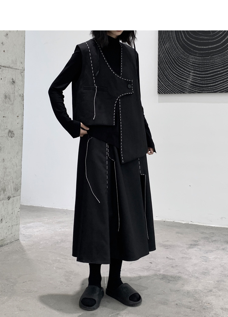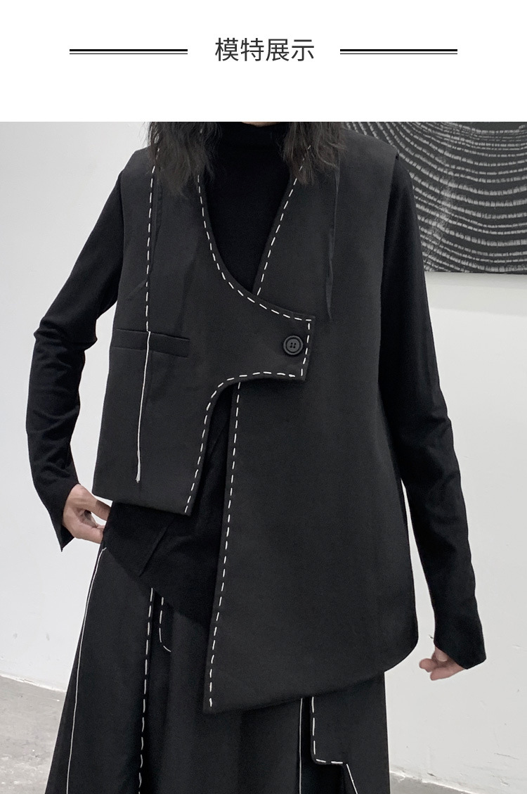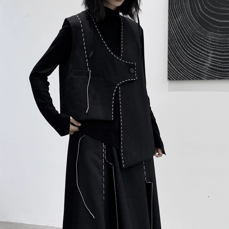 디자인 니치 야마모토 다크 스타일 오픈 라인 조끼 여성 봄 신작 중공업 햅번 스타일 게으른 개성 조끼