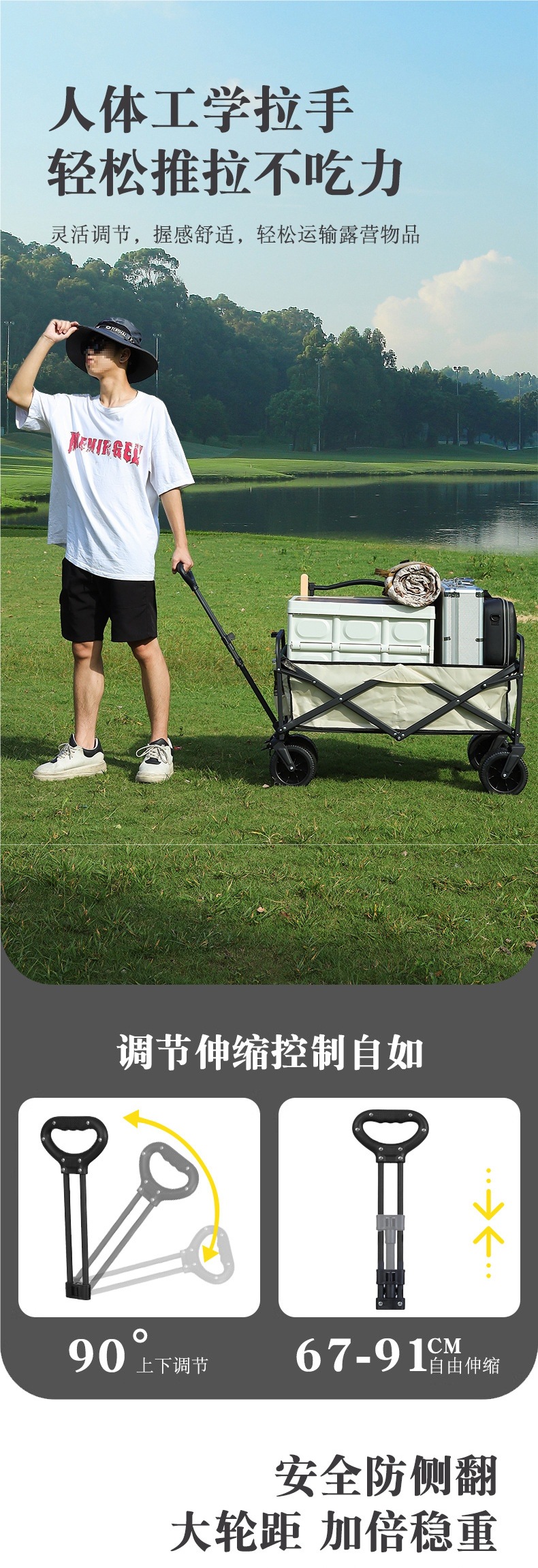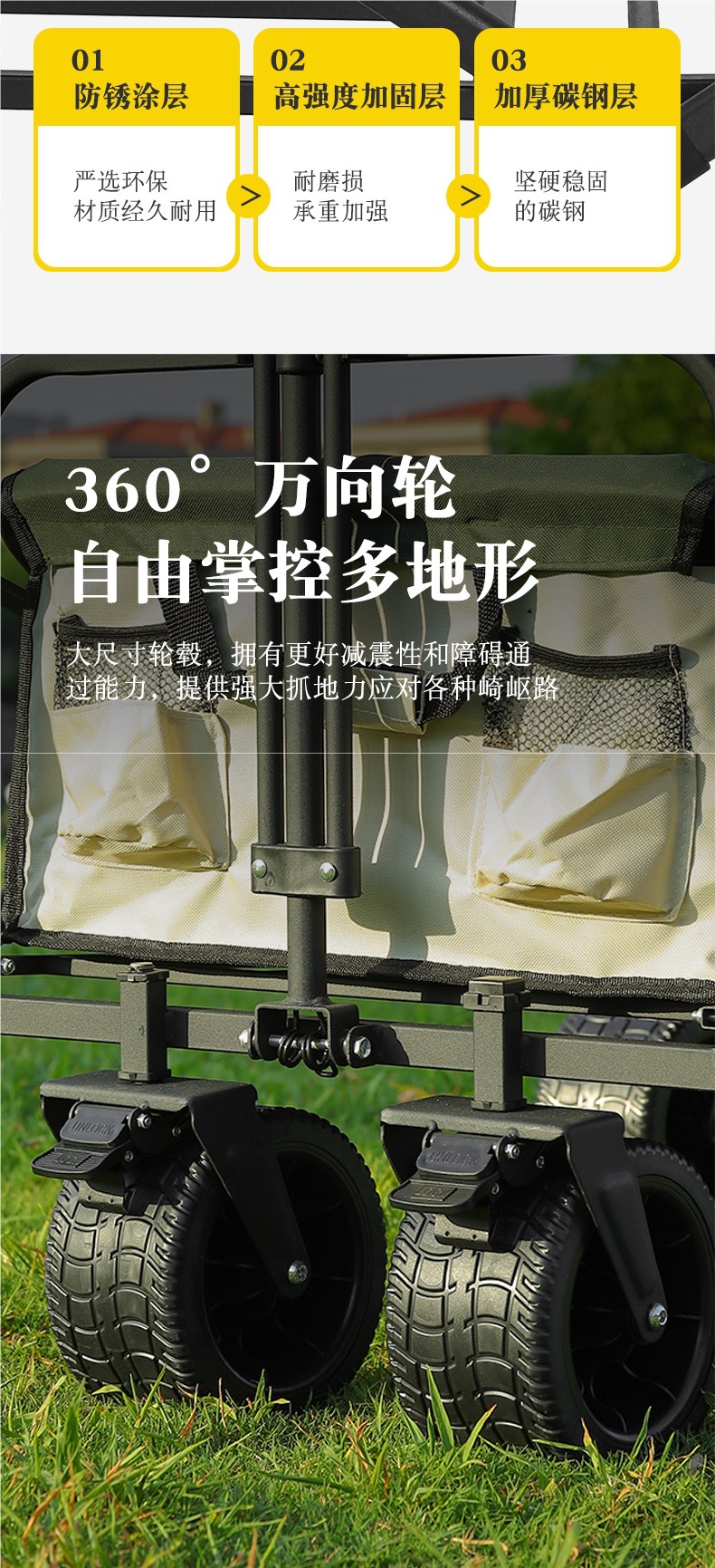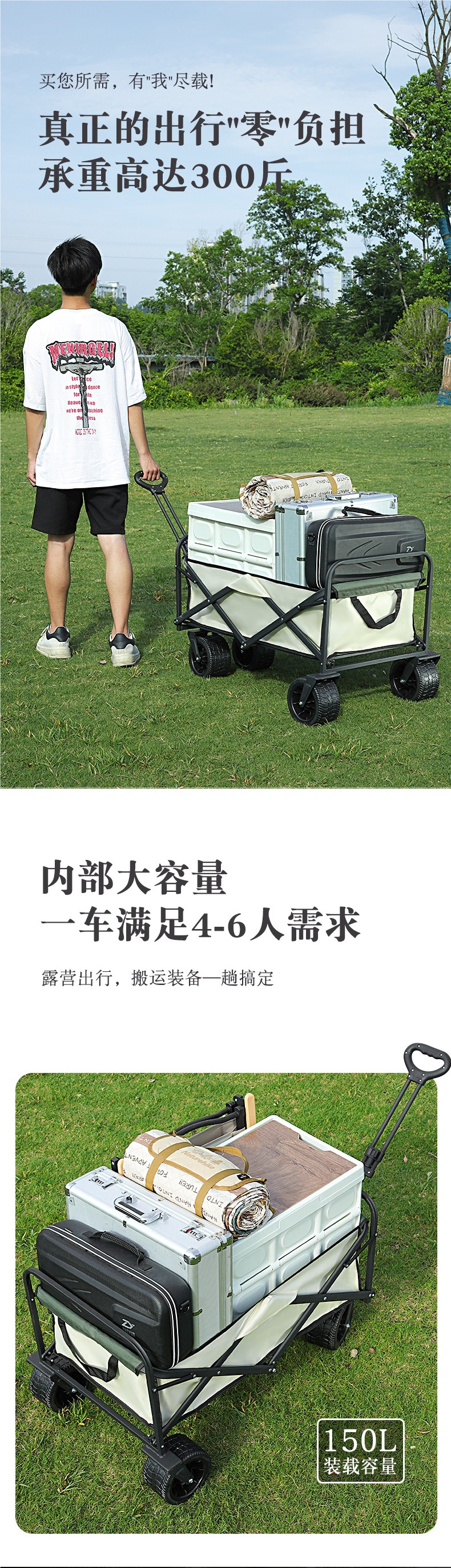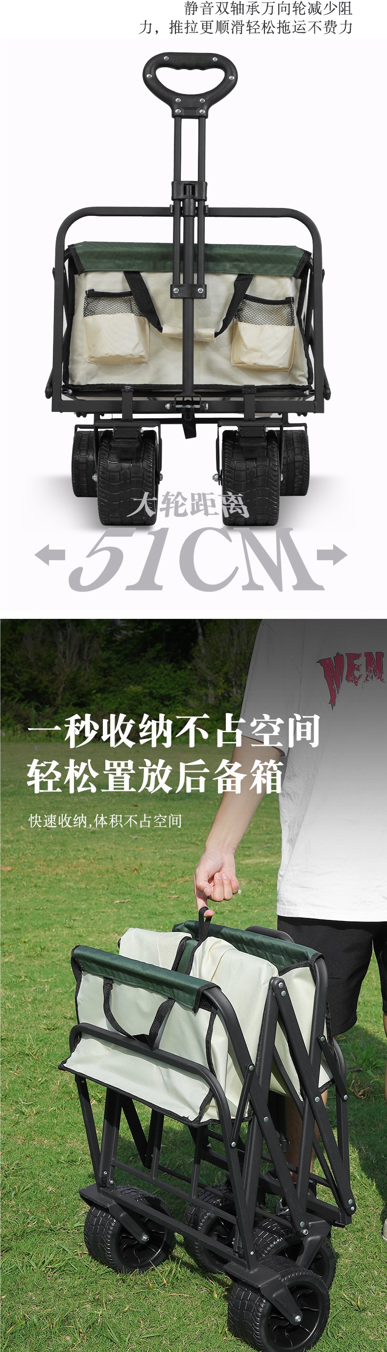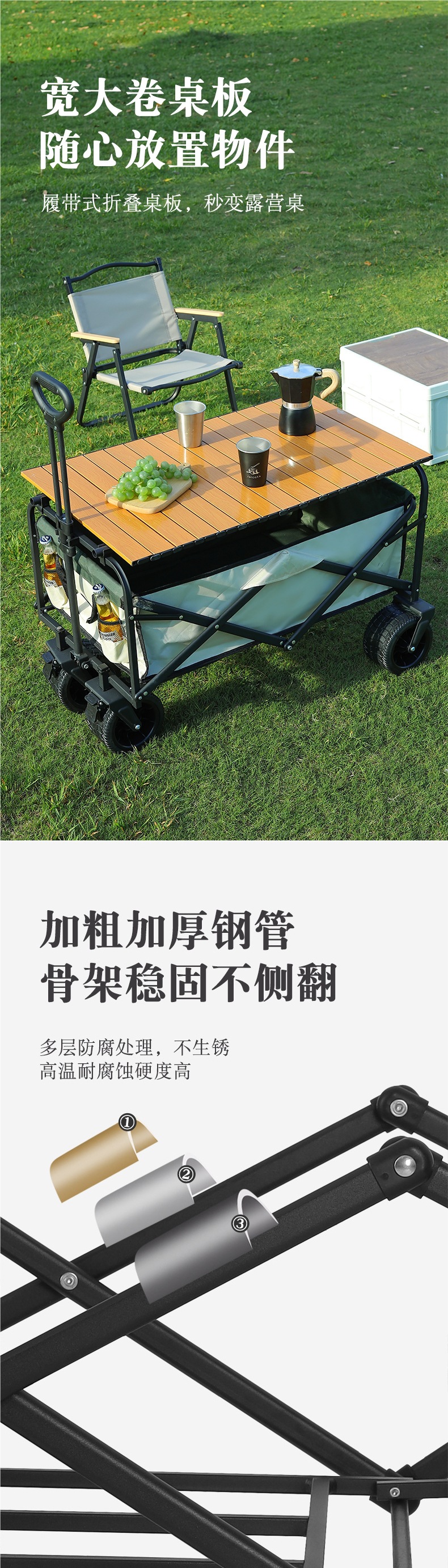• 대형 8inch 와이드 휠(카키) + 높이와 길이를 늘린 다용도 접이식 테이블
