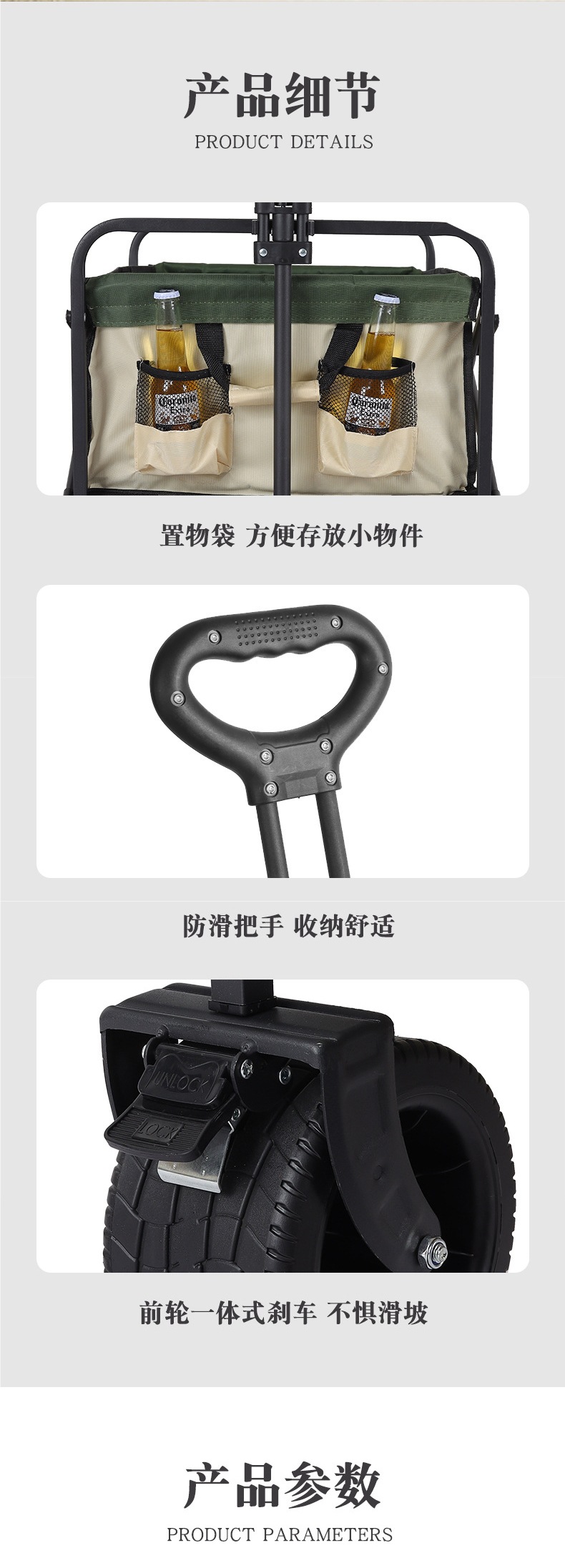 • 대형 드래그 버킷 10inch 탱크 휠(카키색) + 높고 길어진 접이식 테이블