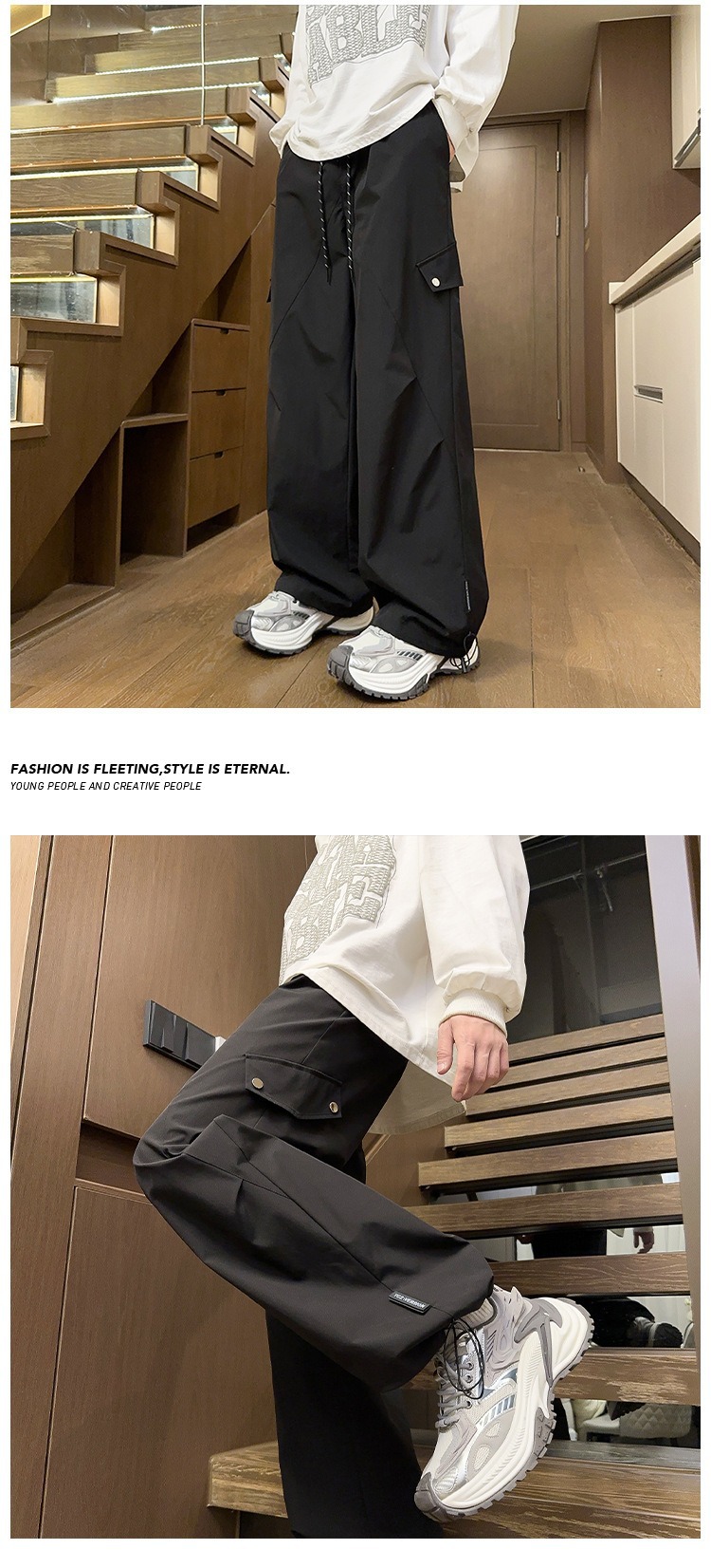 남성과 여성을 위한 여름 얇은 재킷 바지, 다재다능한 디자인, 고급 미국 트렌드, 멋진 스트레이트 바지스토어 가기
