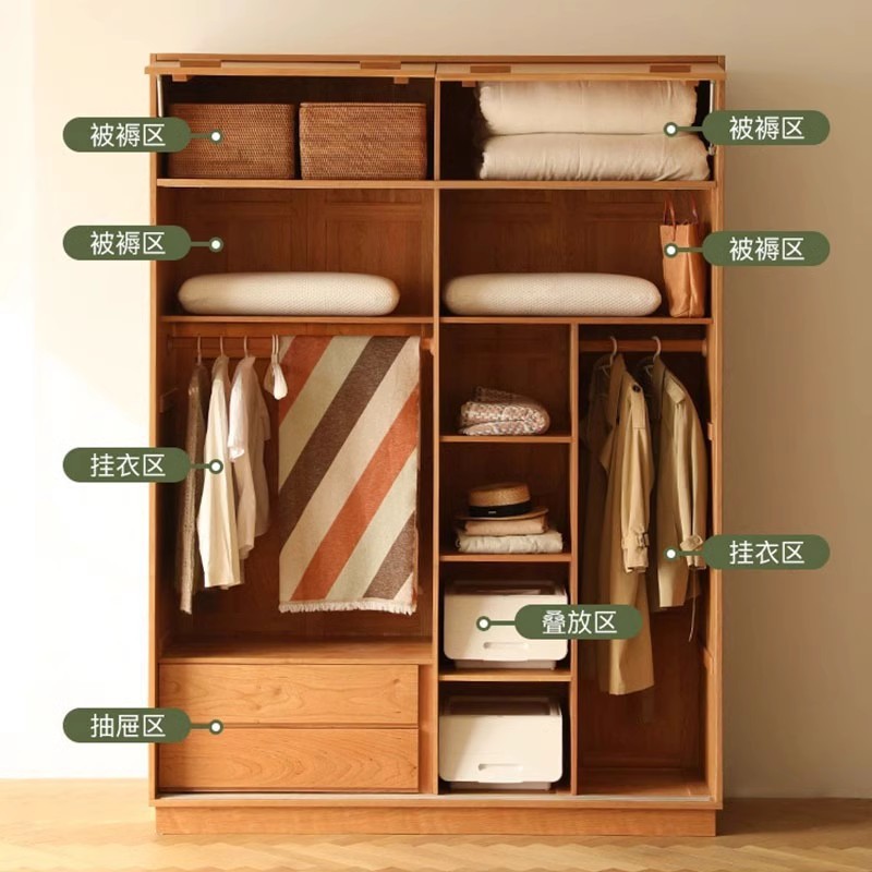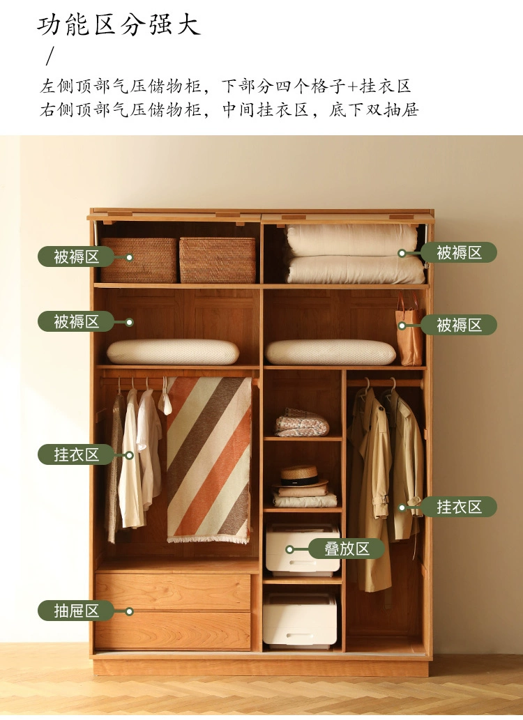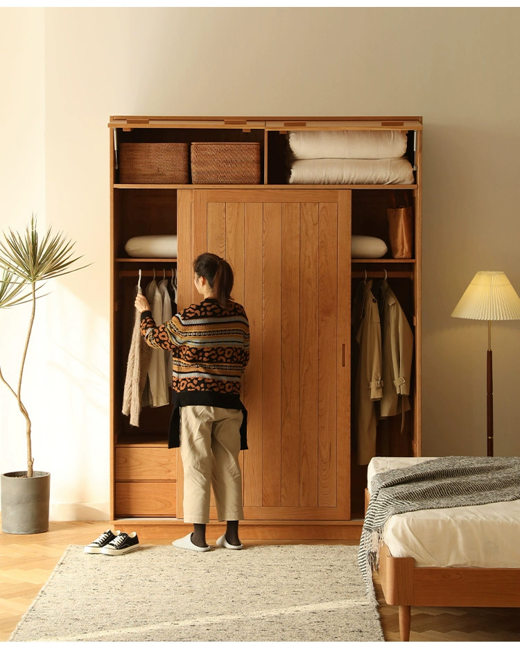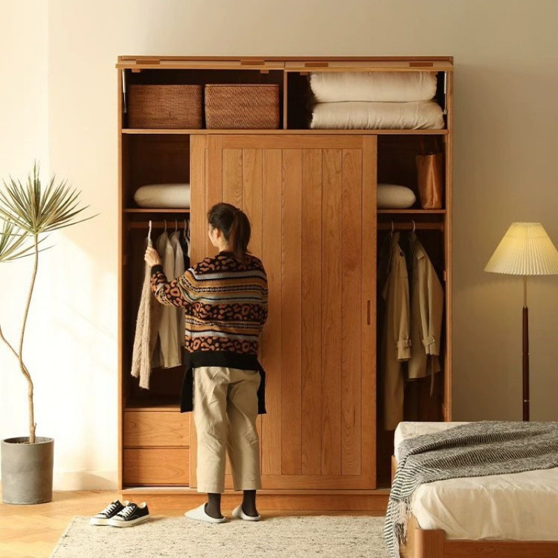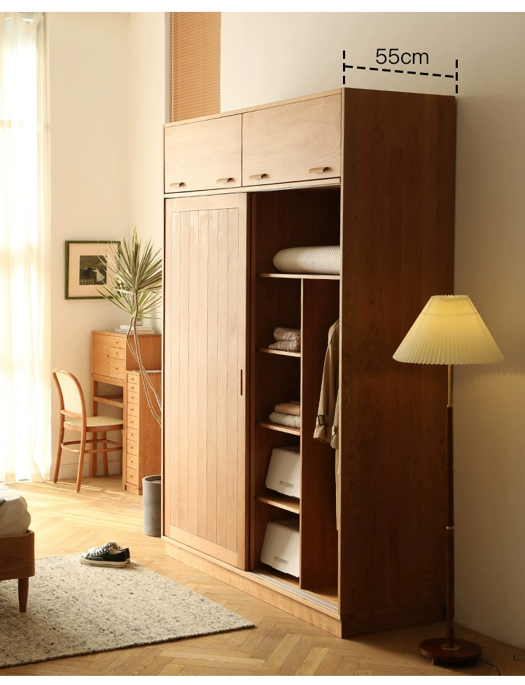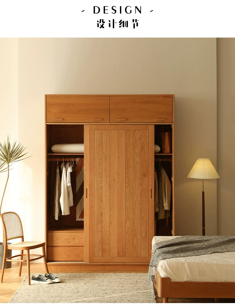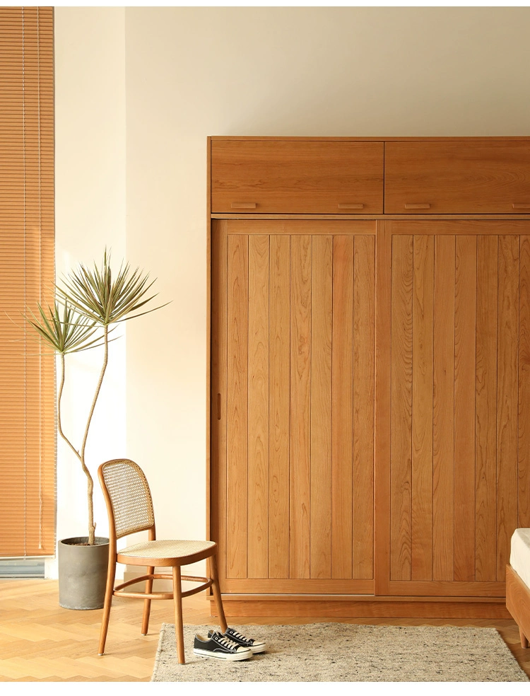 북유럽 단단한 나무 옷장 홈 체리 나무 슬라이딩 도어 스토리지 옷장 침실 간단한 바닥에서 천장까지 벽 스토리지 캐비닛