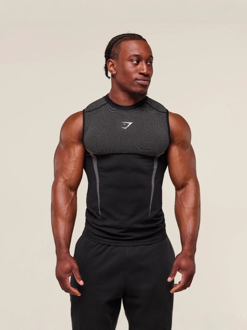 GYMSHARK 신작 남성용 스포츠 피트니스 스트레치 조끼 탑 캐주얼 통기성 타이트 민소매 캐주얼 러닝스토어 가기