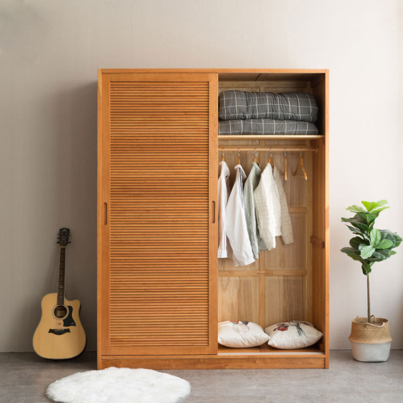 북유럽 단단한 나무 옷장 가정용 작은 루버 도어 스토리지 슬라이딩 옷장 침실 간단한 슬라이딩 도어 스토리지 캐비닛