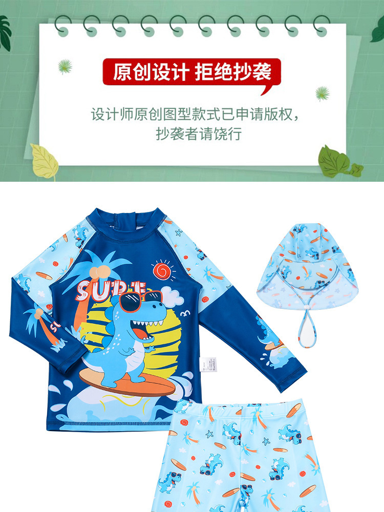만화 작은 공룡 속건성 자외선 차단 수영복 스플릿 소형 및 중형 소년 수영복 아기 온천 파라다이스 어린이 수영복스토어 가기