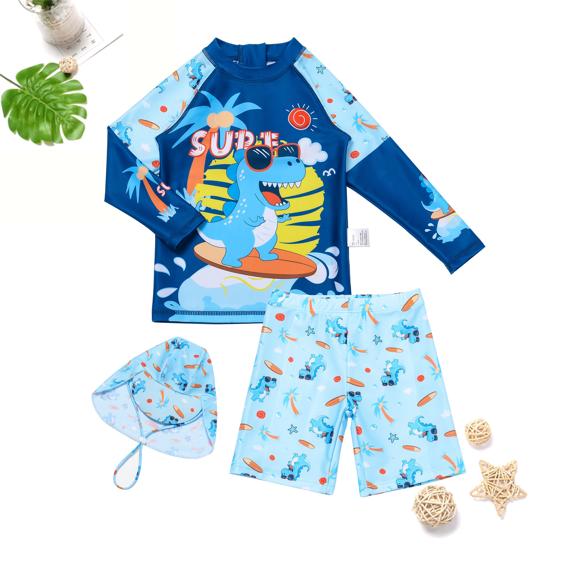 만화 작은 공룡 속건성 자외선 차단 수영복 스플릿 소형 및 중형 소년 수영복 아기 온천 파라다이스 어린이 수영복