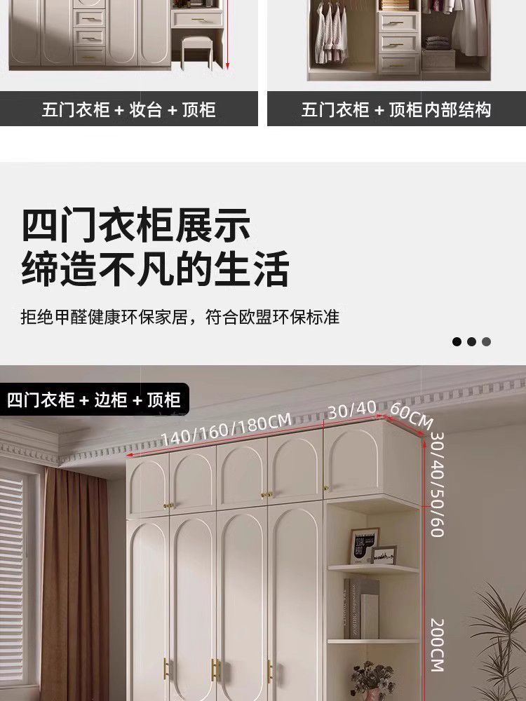 프렌치 크림 스타일 대형 옷장 단단한 나무 캐비닛 옷장 홈 침실 작은 아파트 현대 간단한 코트 신제품스토어 가기