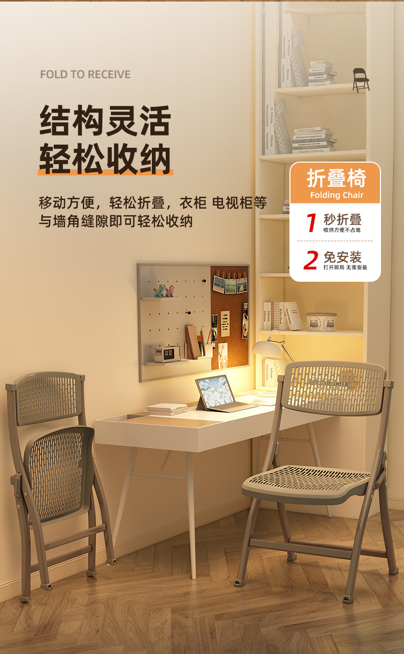 접이식 의자 간단한 두꺼운 플라스틱 의자 홈 컴퓨터 사무실 의자 휴대용 회의 의자 식사 의자 등받이 안락 의자