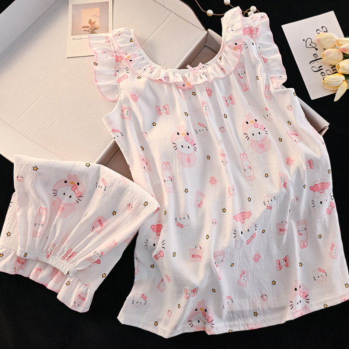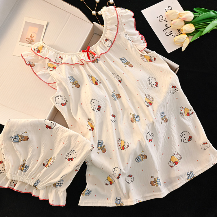귀여운 크레용 신짱 클라우드 코튼 슬링 소녀 잠옷 여름 한국 스타일 부모-자식 착용 엄마와 딸 가정 의류 세트