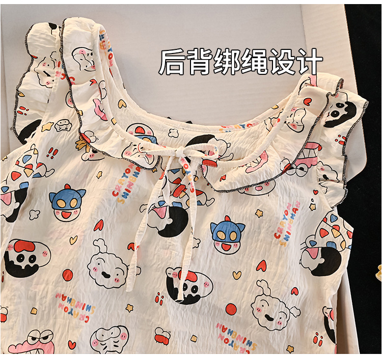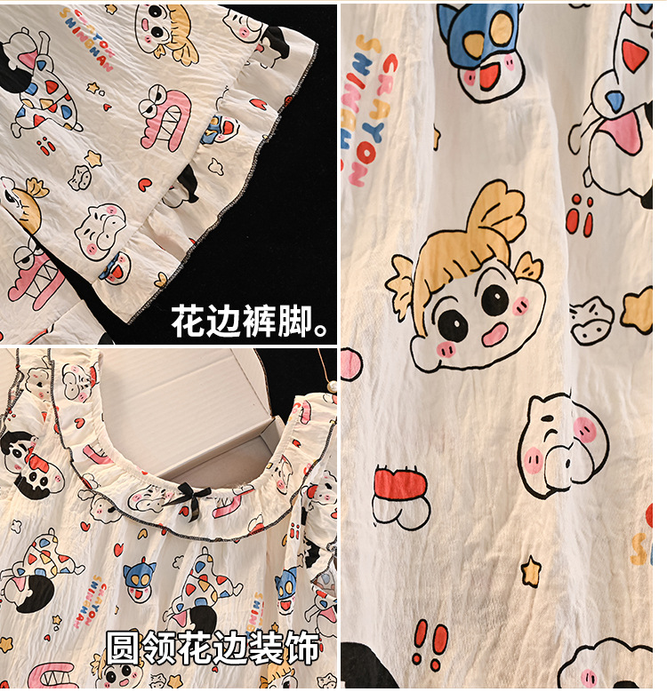 귀여운 크레용 신짱 클라우드 코튼 슬링 소녀 잠옷 여름 한국 스타일 부모-자식 착용 엄마와 딸 가정 의류 세트스토어 가기
