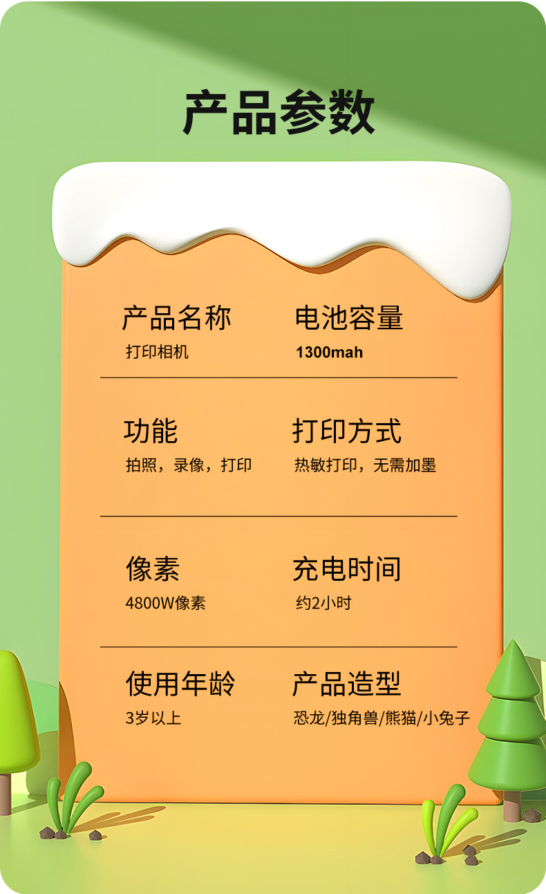 • S1 프린팅 카메라 - 녹색 공룡(TF 카드 제외)