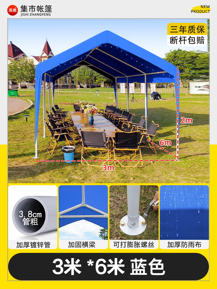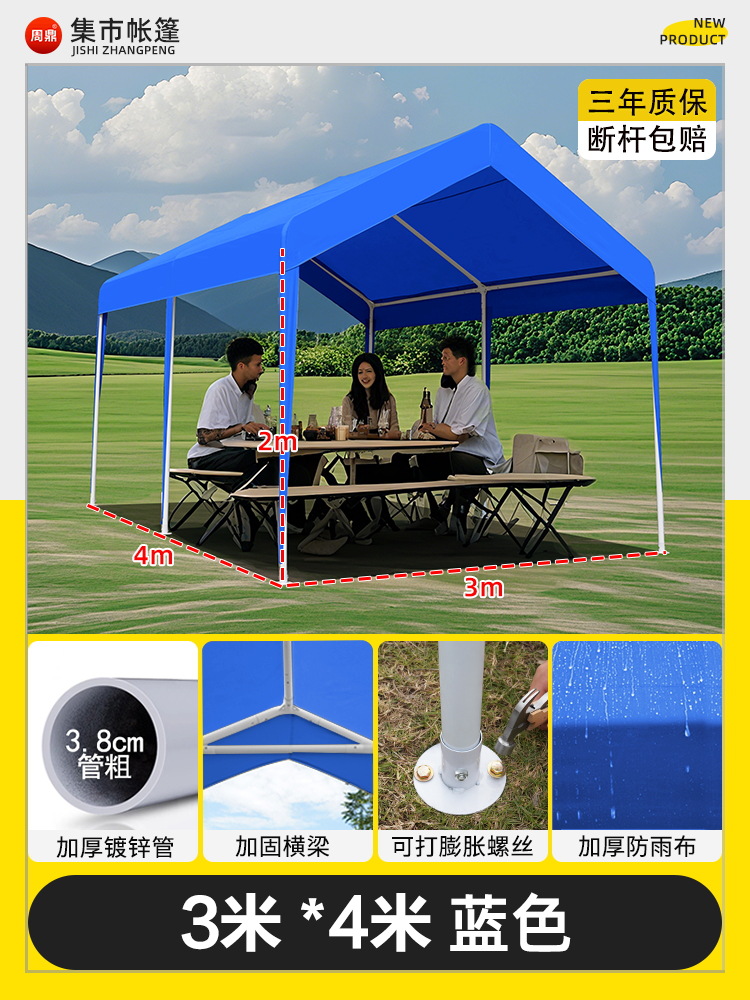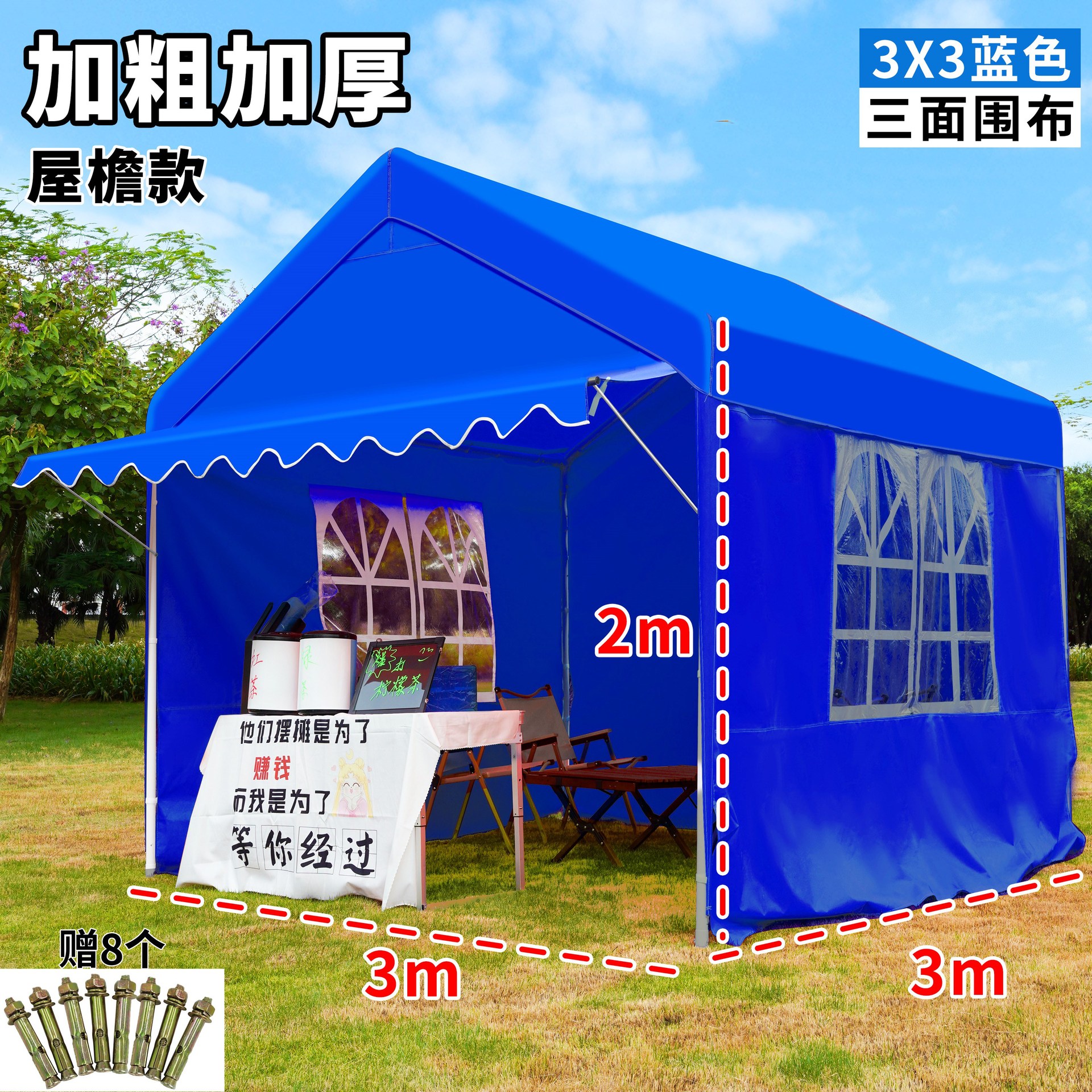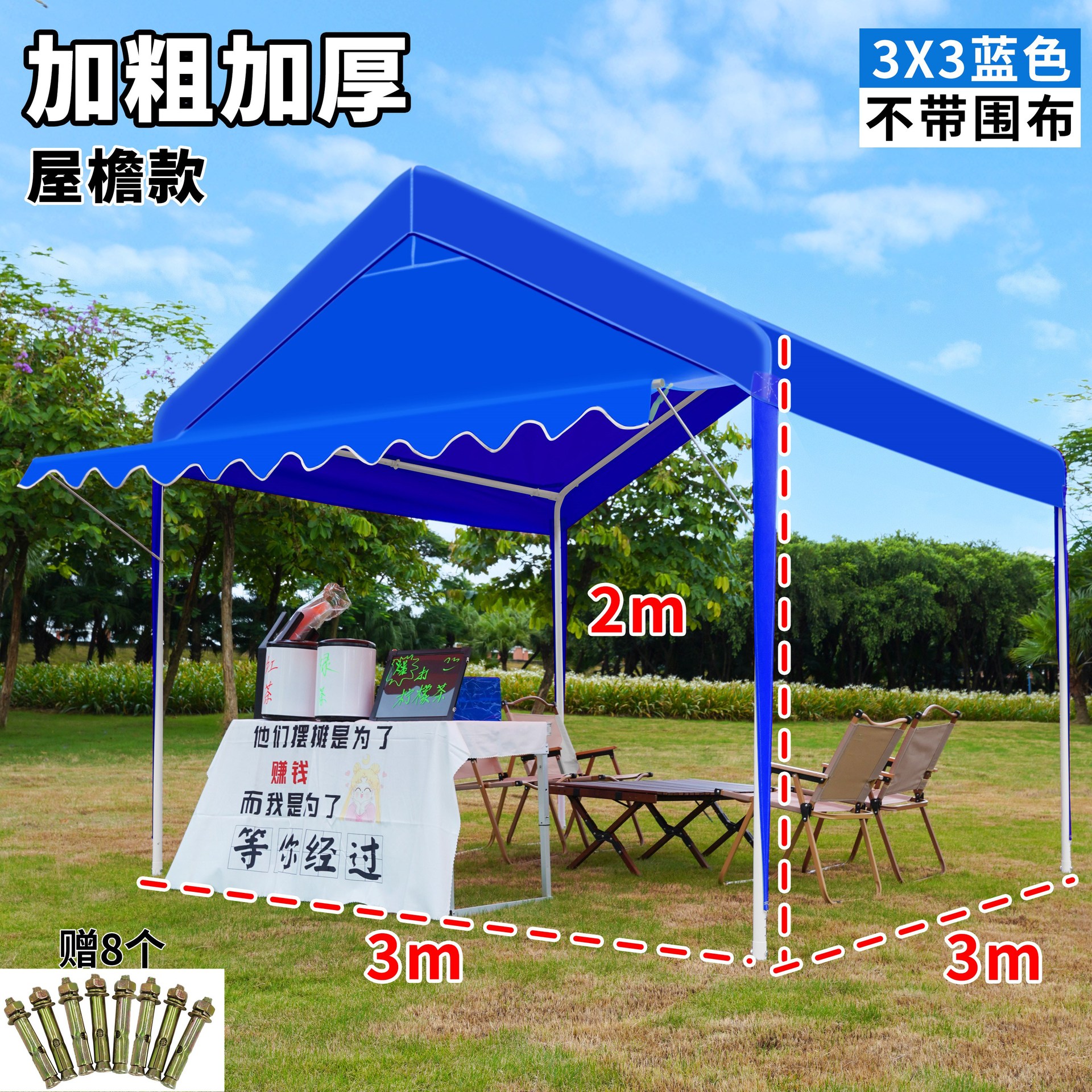 • 진한 파란색 2* 2m +2 측면 둘레, 황백색 매점丨처마 스타일