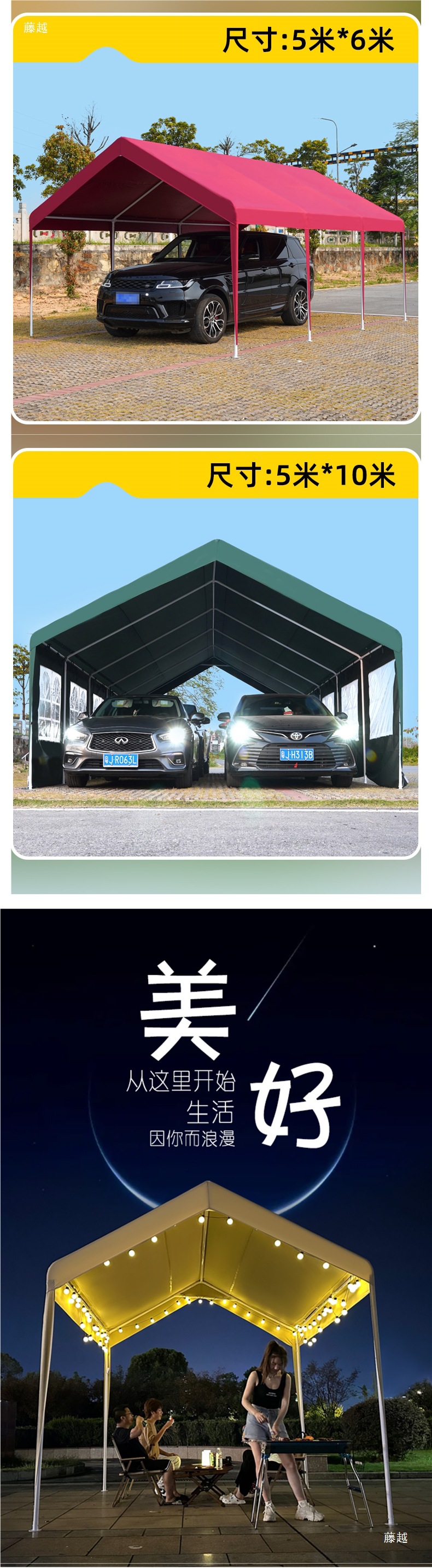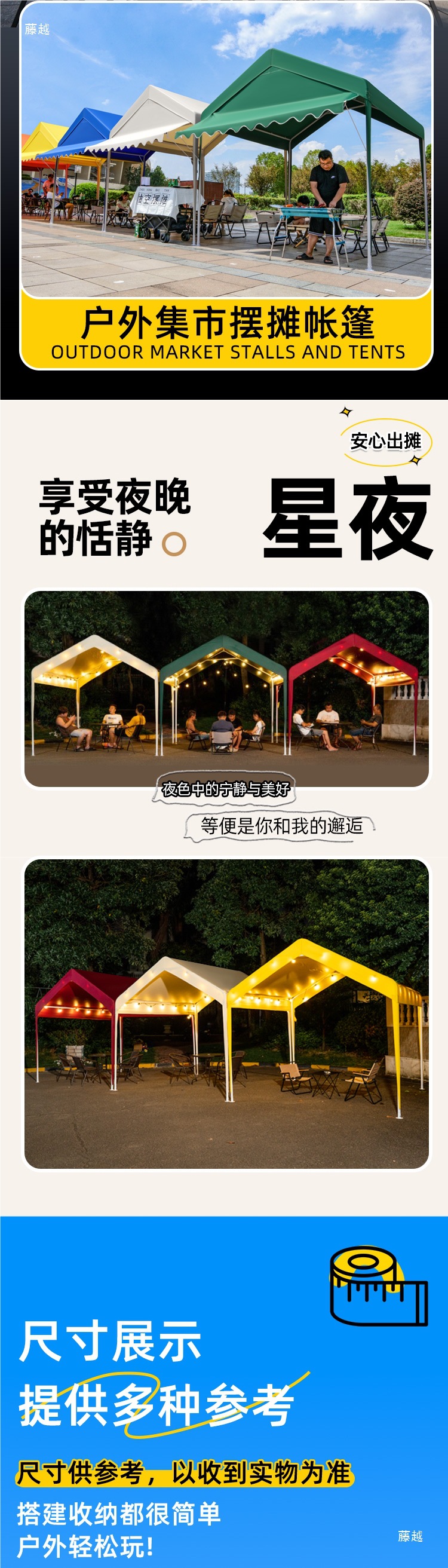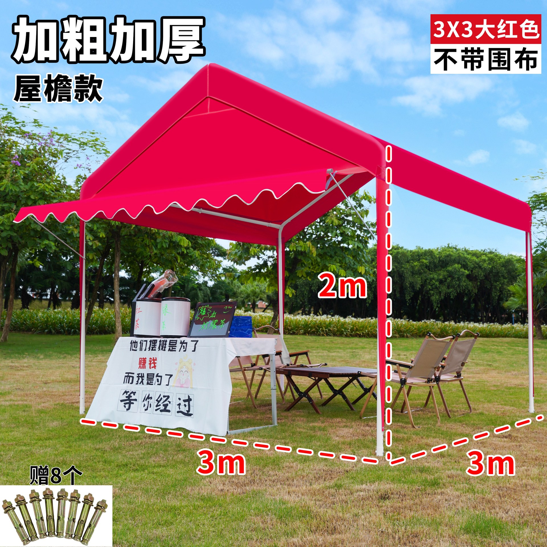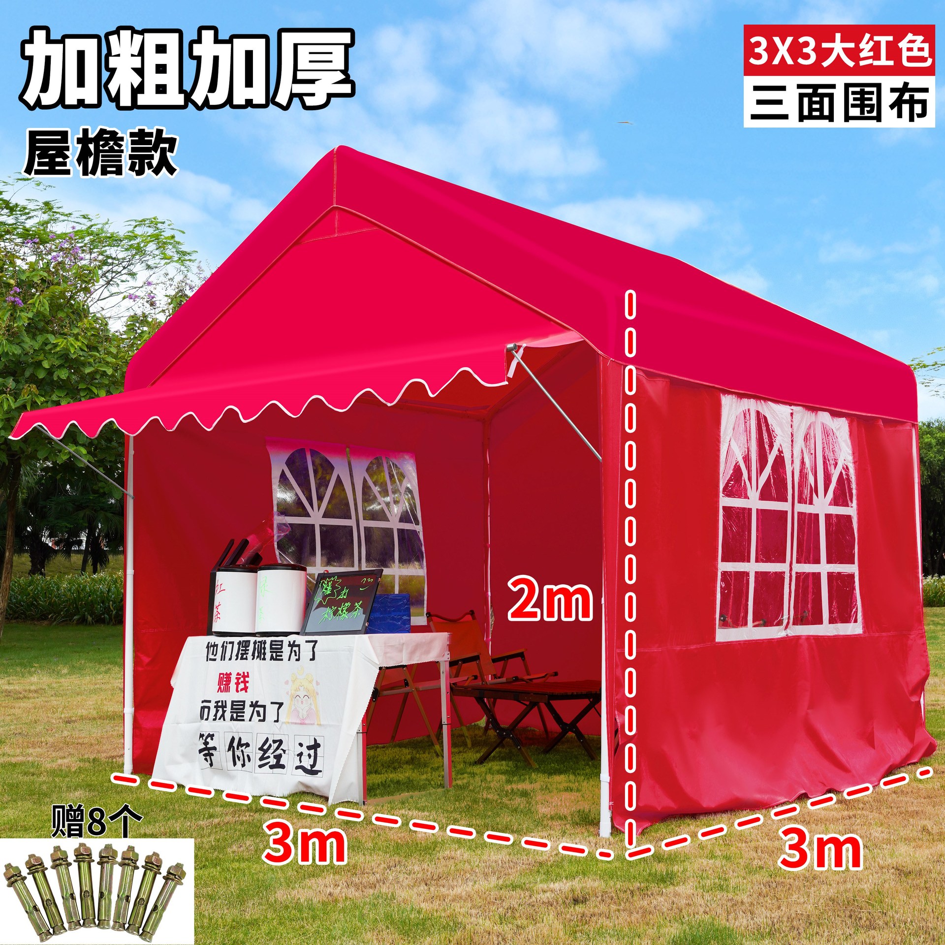 • 진한 파란색 2* 2m +2 측면 둘레, 황백색 매점丨처마 스타일