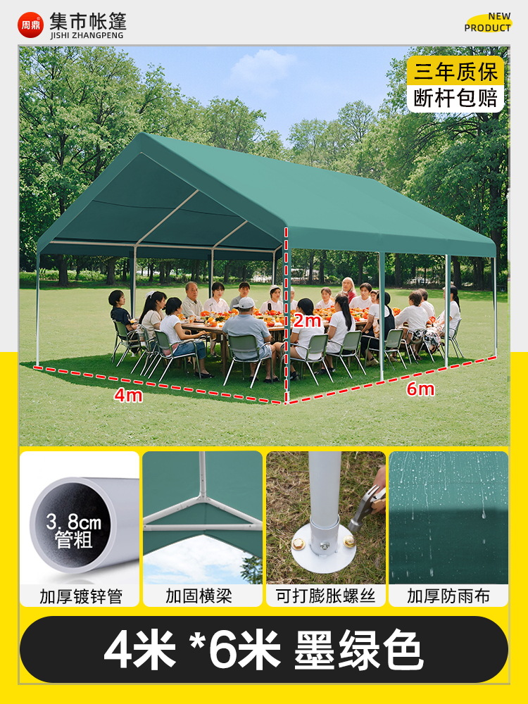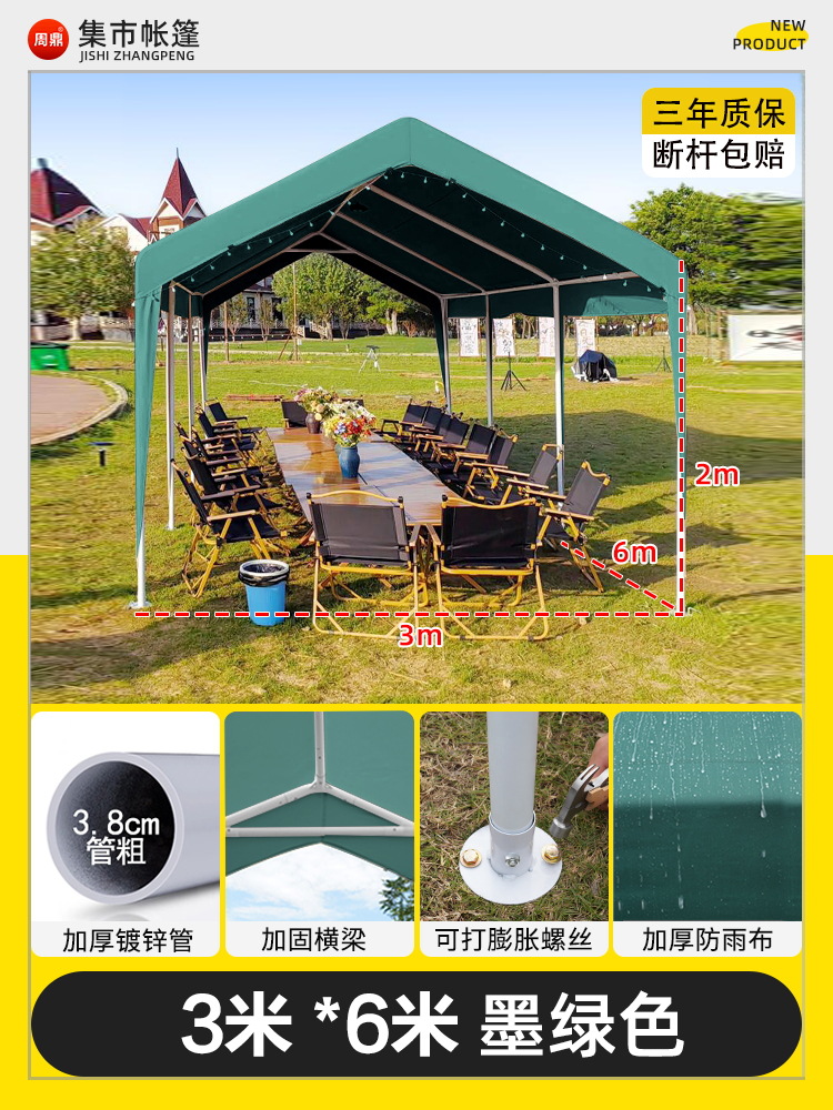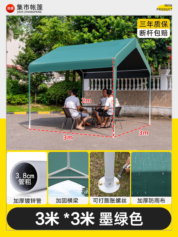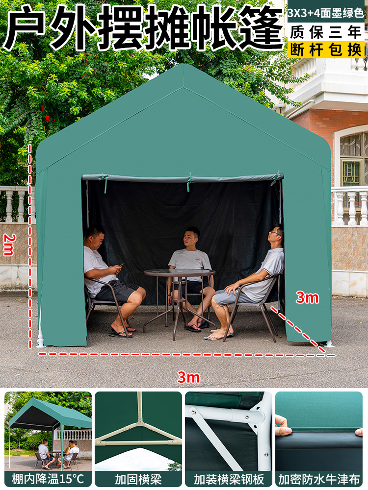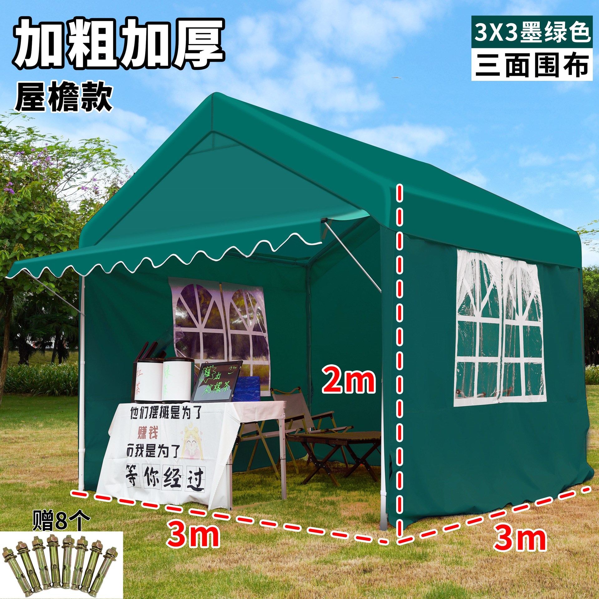 • 3* 3m +3면창 짙은 녹색 매점 창고 [처마 스타일] (업그레이드 스타일, 7년 보증)