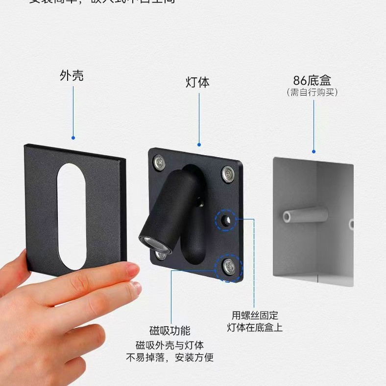 86박스 특수 독서등 내장형 86형 벽등 호텔 침실 침대 옆 램프 사각 벽 스포트라이트스토어 가기