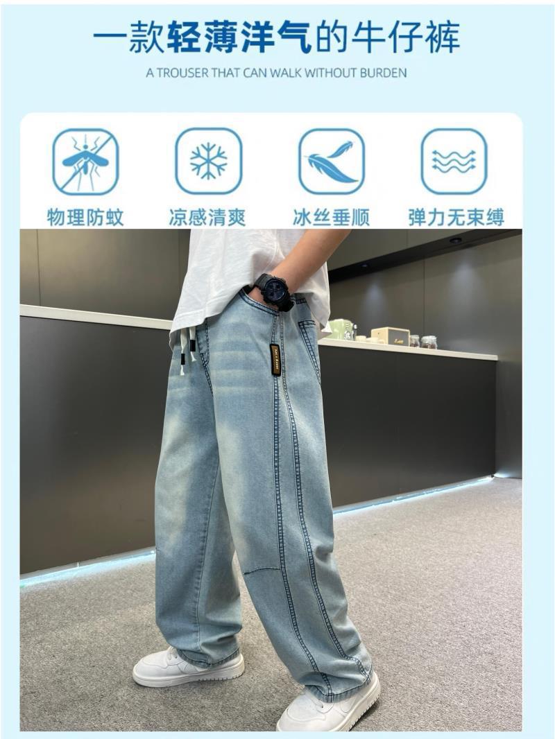 [여름 얇은 소프트 데님] 아동용 스트레치 데님 모기 방지 새 소년 바지 중대형 아동 캐주얼 바지스토어 가기