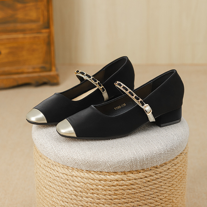 Y890-1 블랙 메리 제인 여성 신발 2025 봄, 가을 새로운 스타일 펌프스 틈새 스타일 스커트 스타일 신발스토어 가기