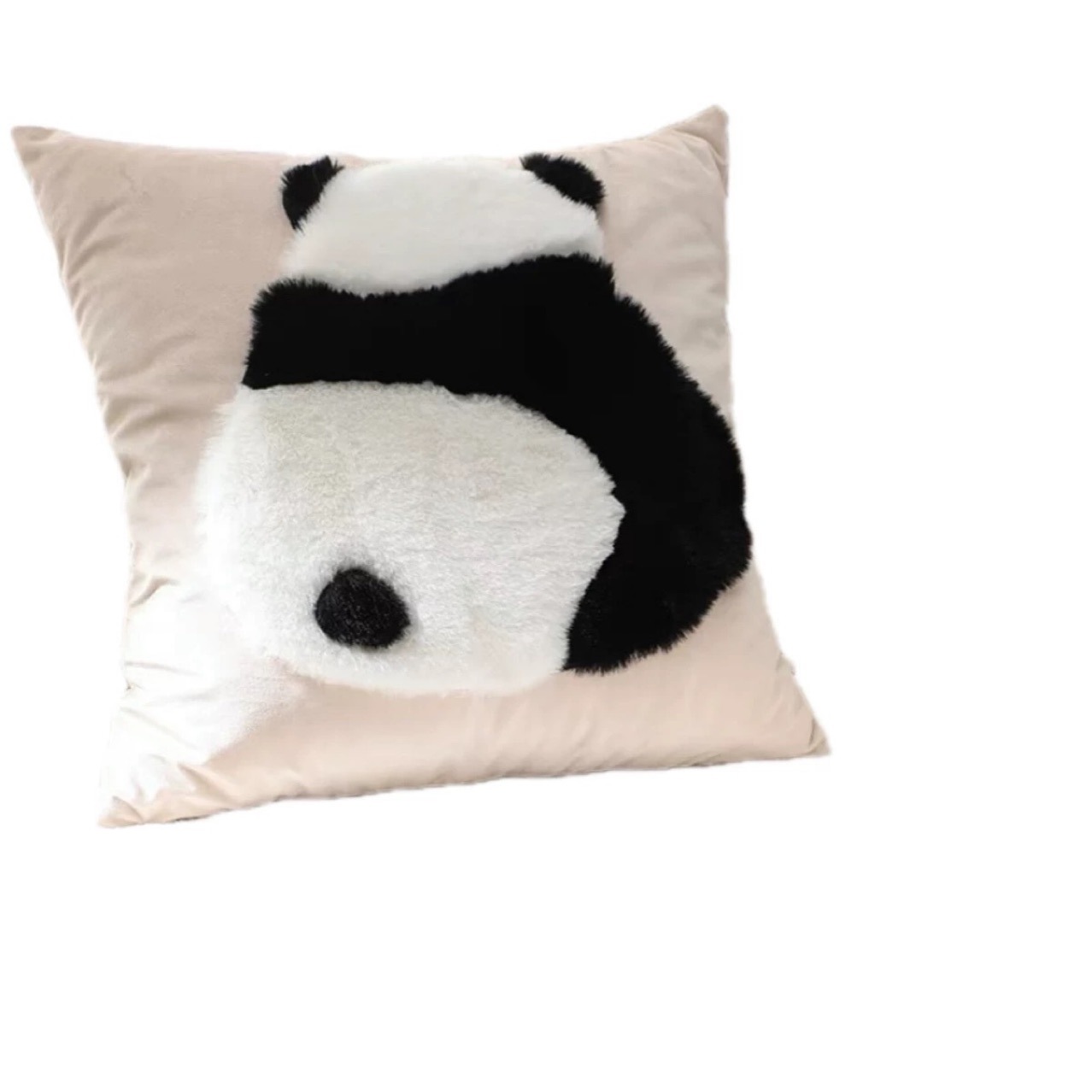 • 깃털 벨벳 베개를 들고 누워있는 팬더