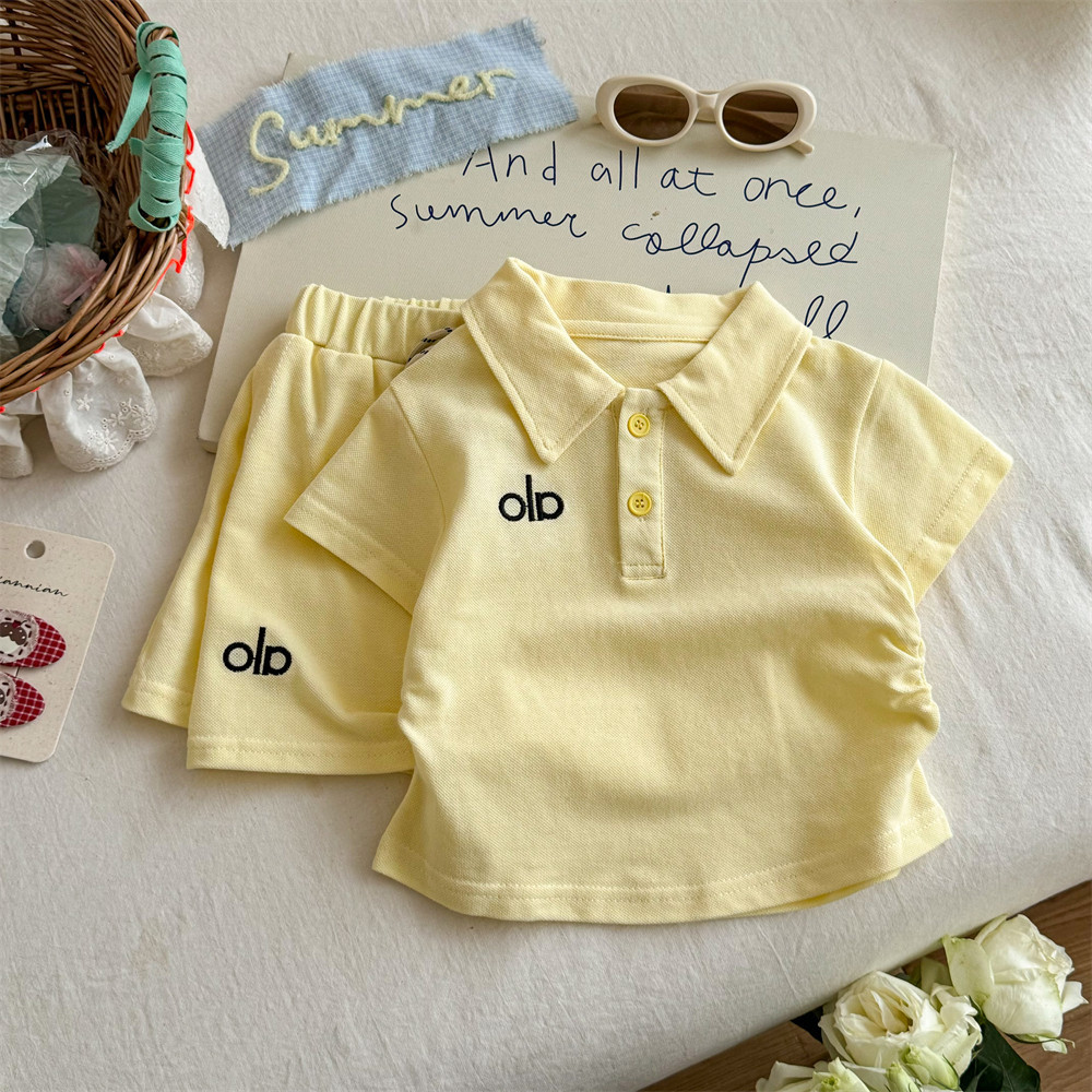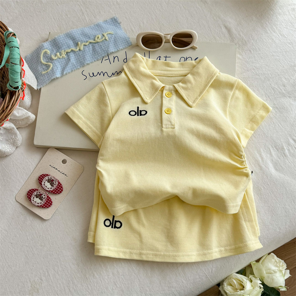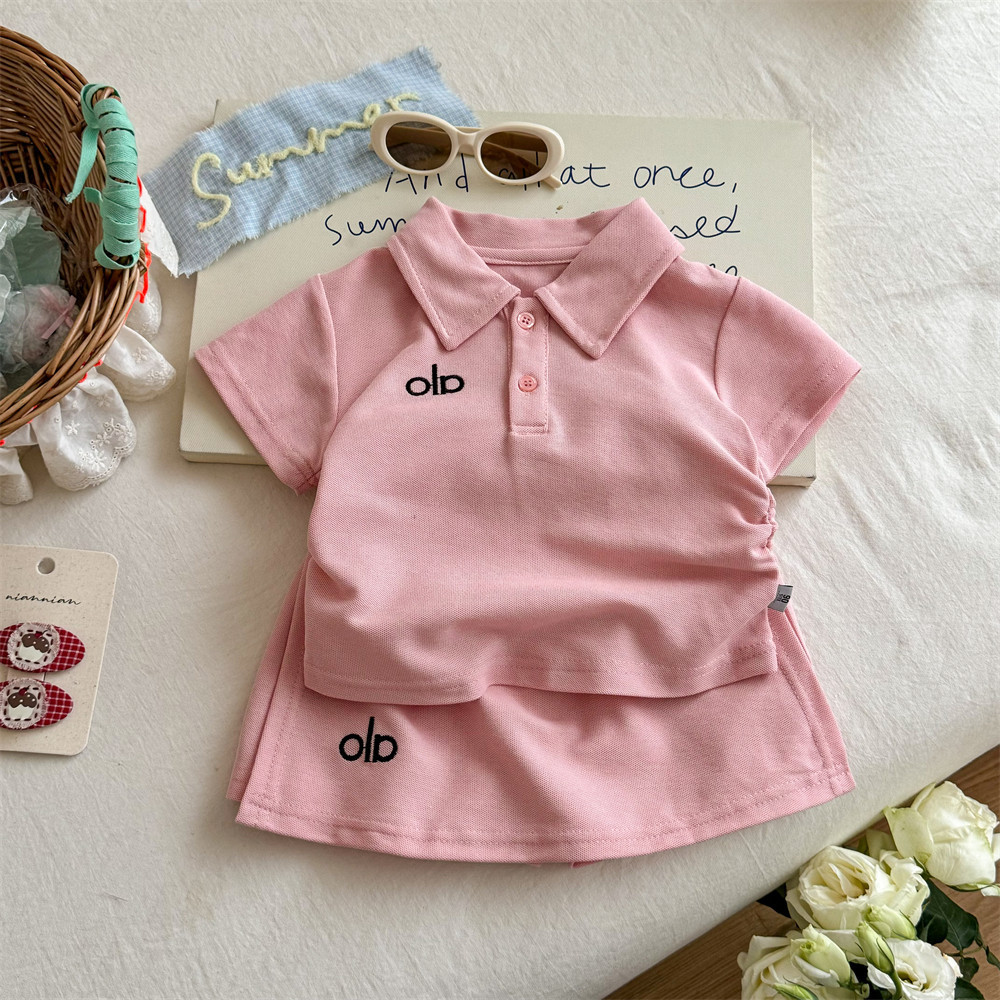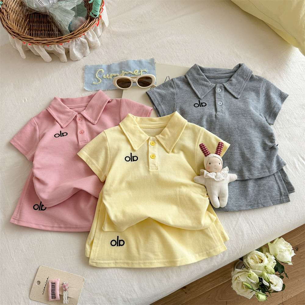 Linlinma 소녀의 달콤한 정장 2025 여름 대학 스타일 여름 드레스 소녀 반팔 폴로 셔츠와 치마 바지 투피스 세트